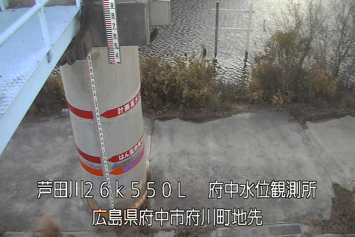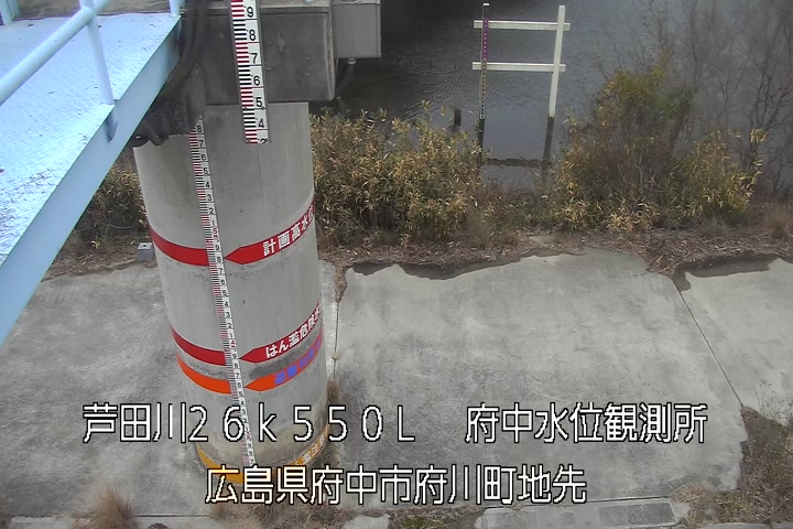 府中水位観測所(量水板拡大表示)の過去6日分(6時間毎)の河川映像を提供しています。