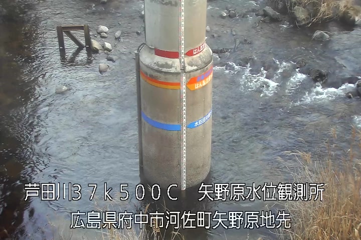 矢野原水位観測所(量水板拡大表示)の過去6日分(6時間毎)の河川映像を提供しています。