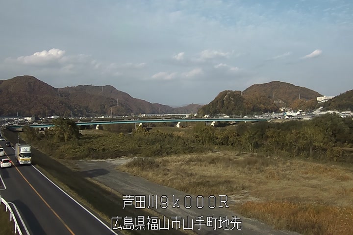 福山市山手町の過去24時間(1時間毎)の河川映像を提供しています。