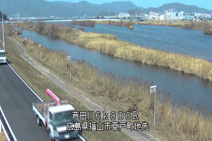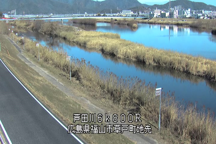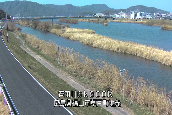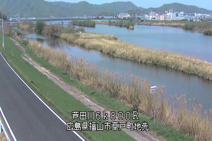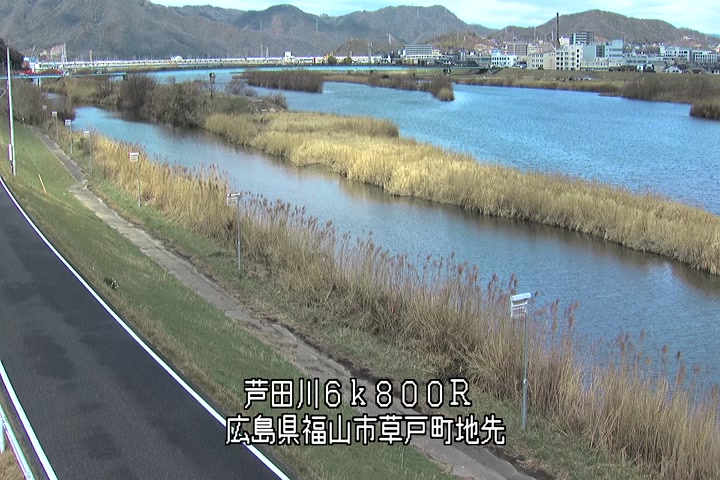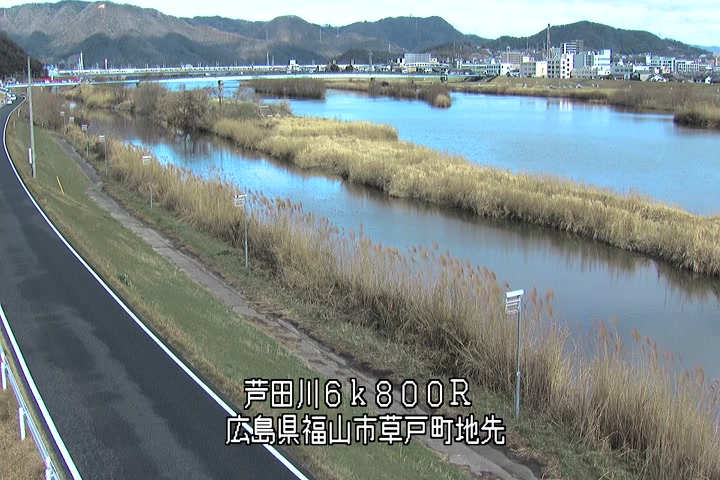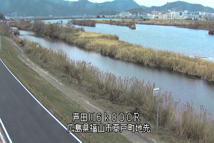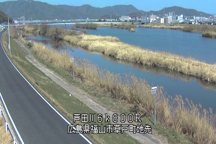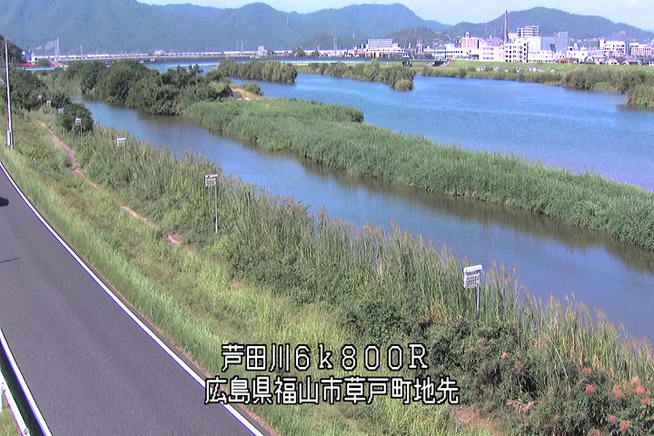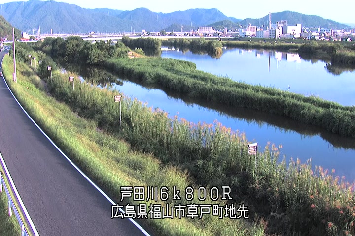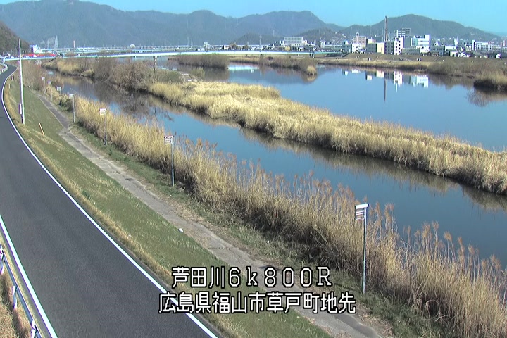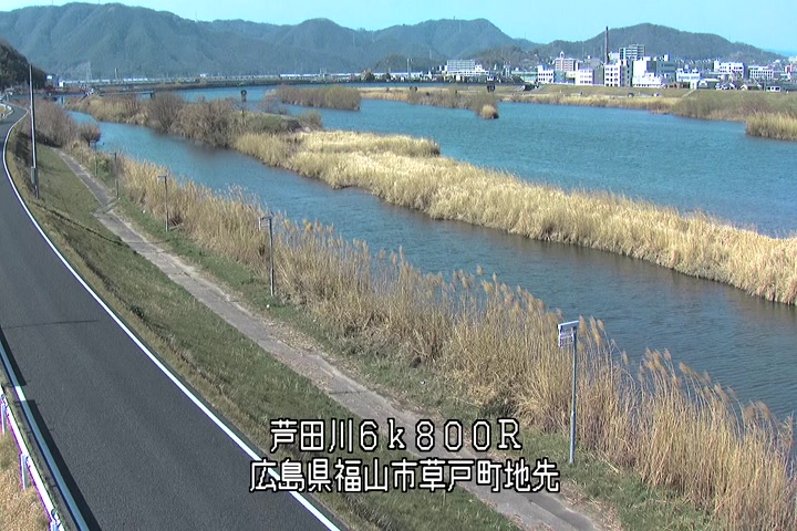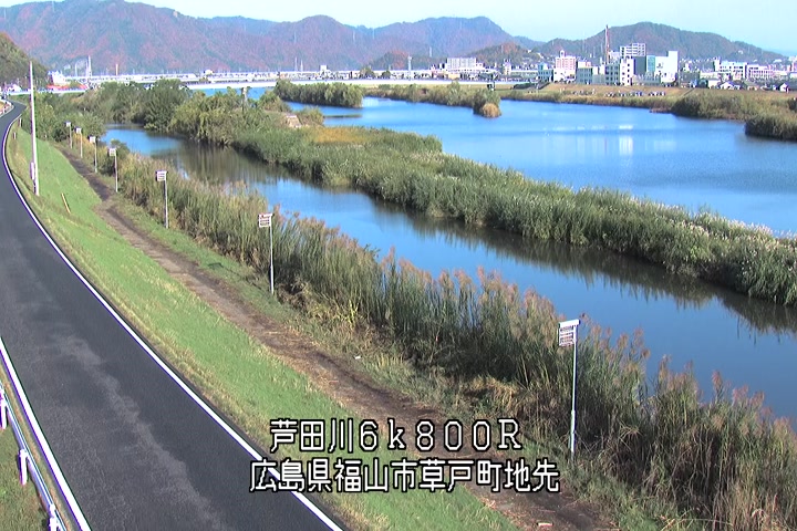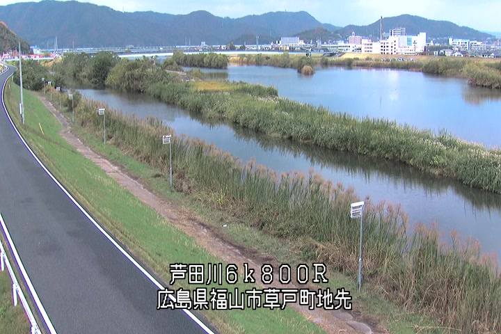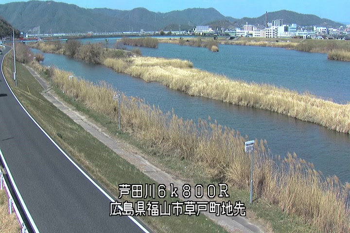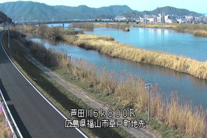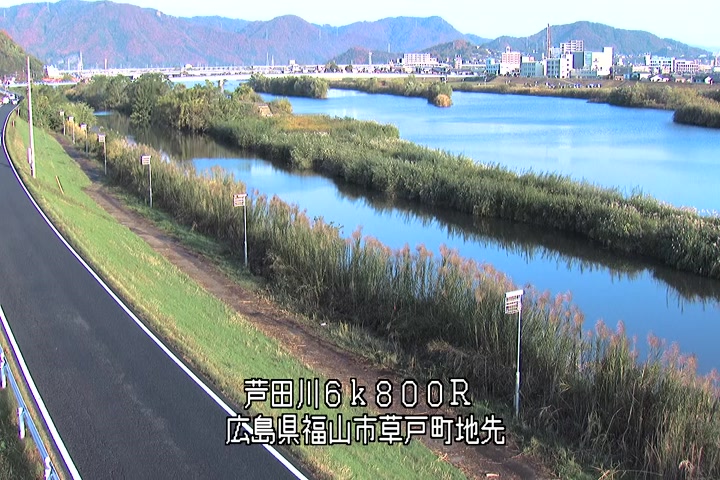 福山市草戸(上流部)の過去24時間(1時間毎)の河川映像を提供しています。