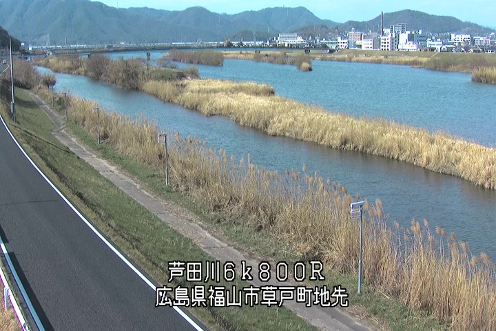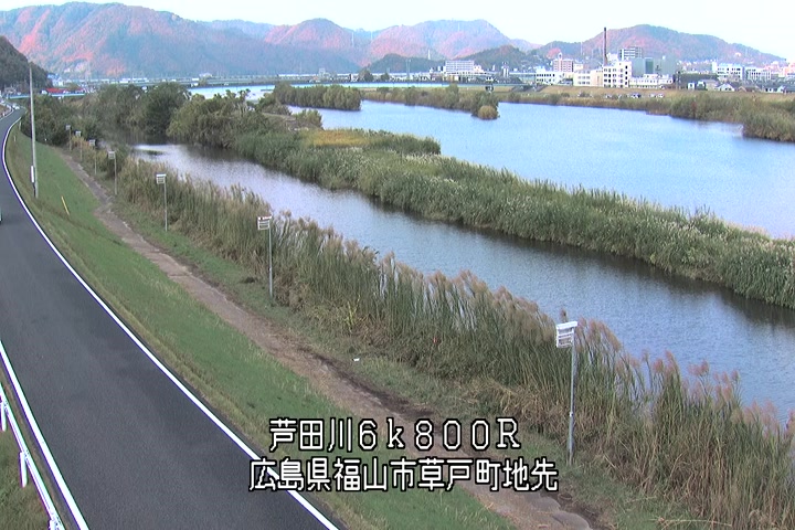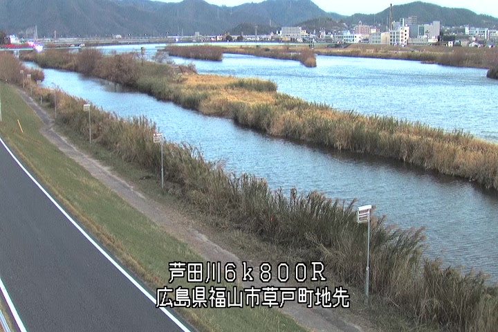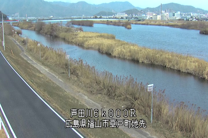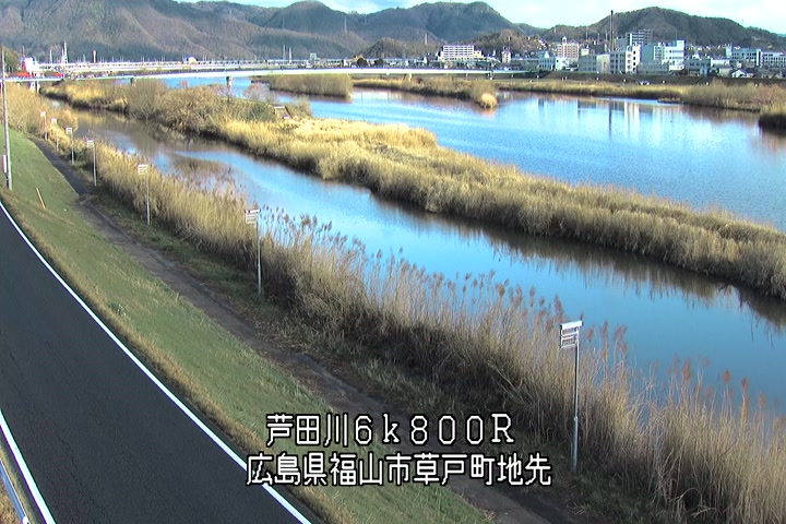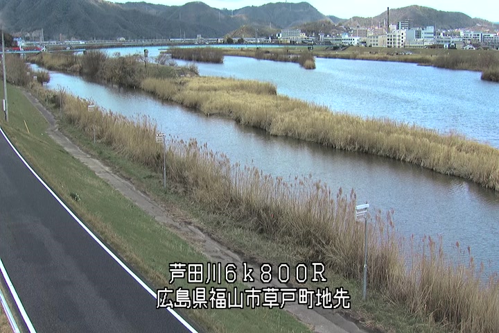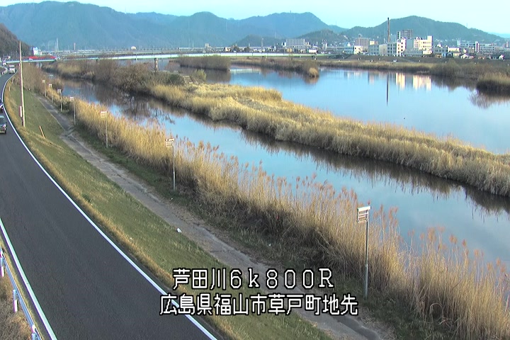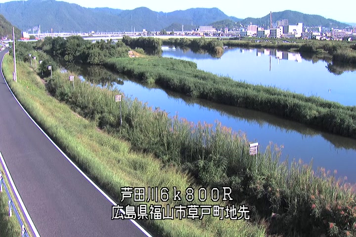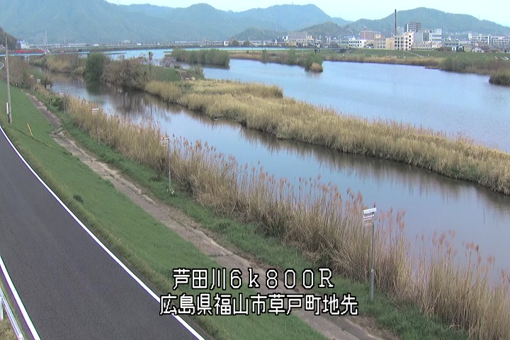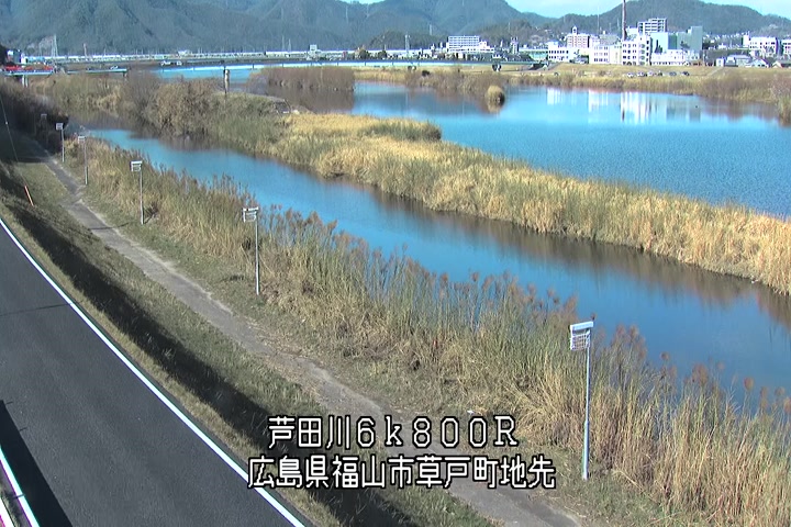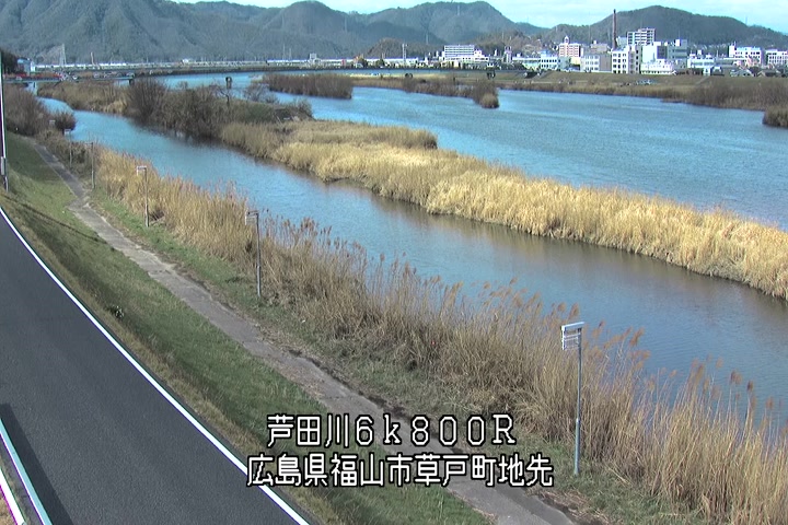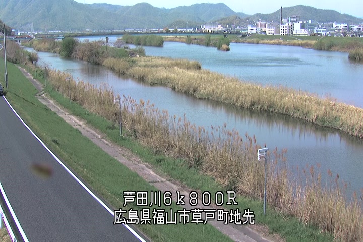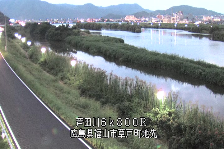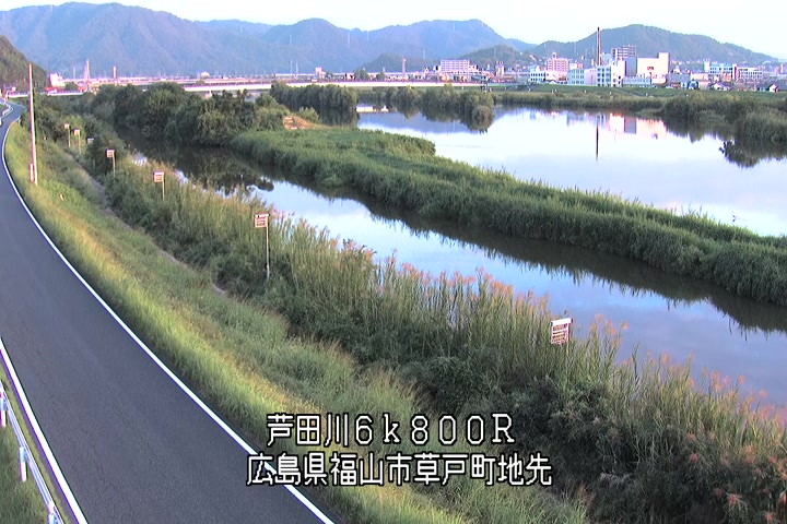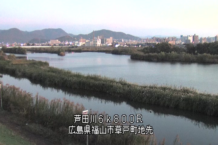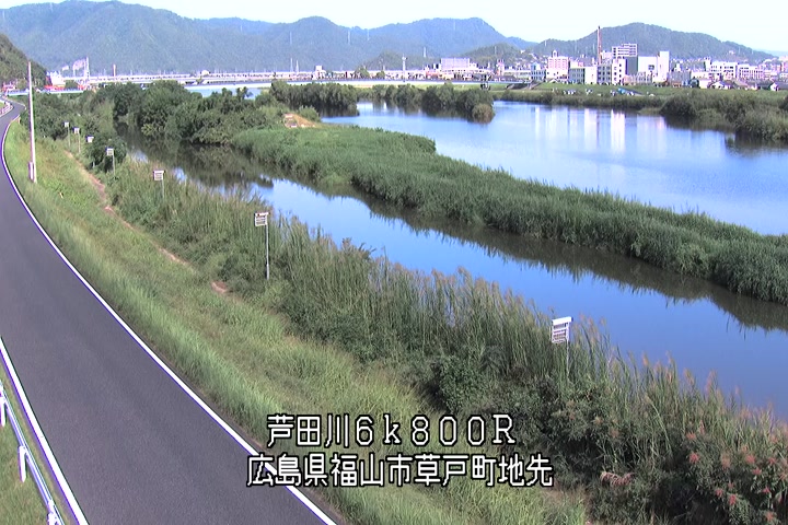 福山市草戸(上流部)の過去24時間(1時間毎)の河川映像を提供しています。