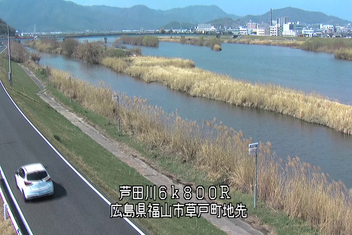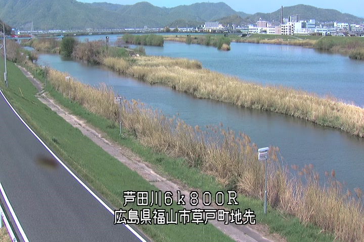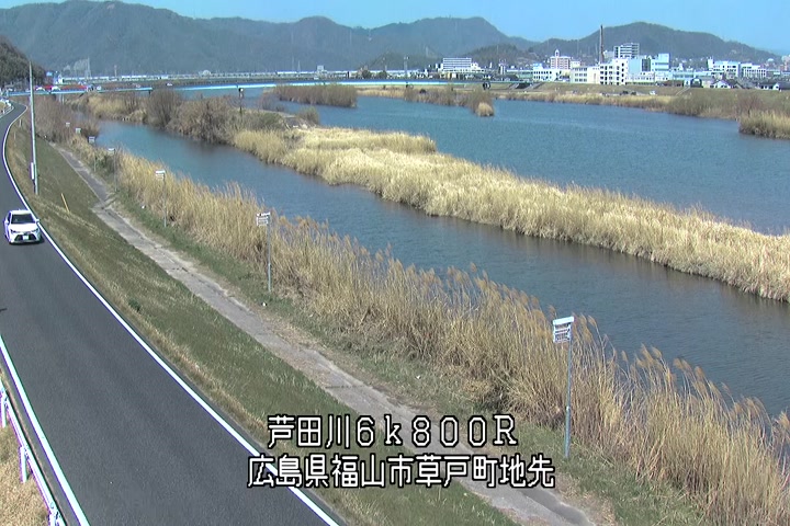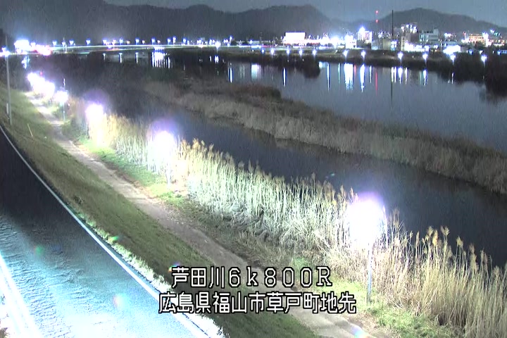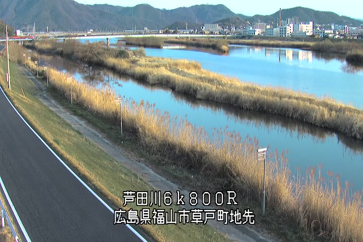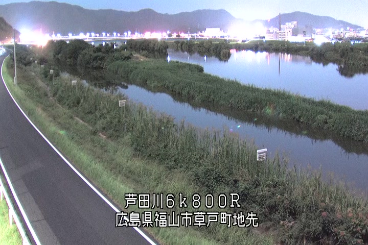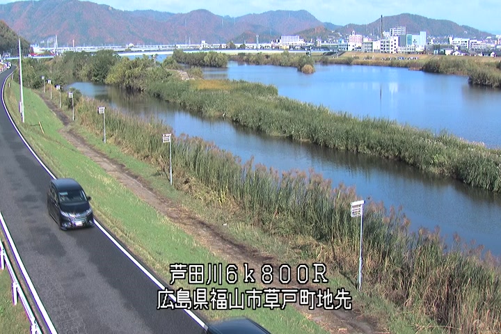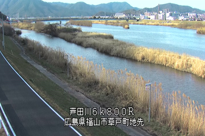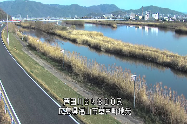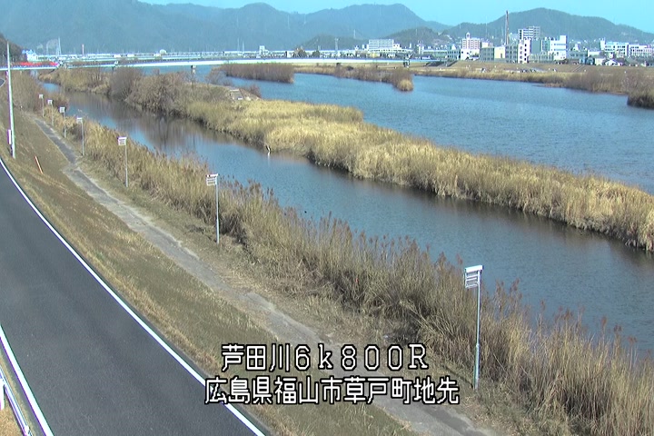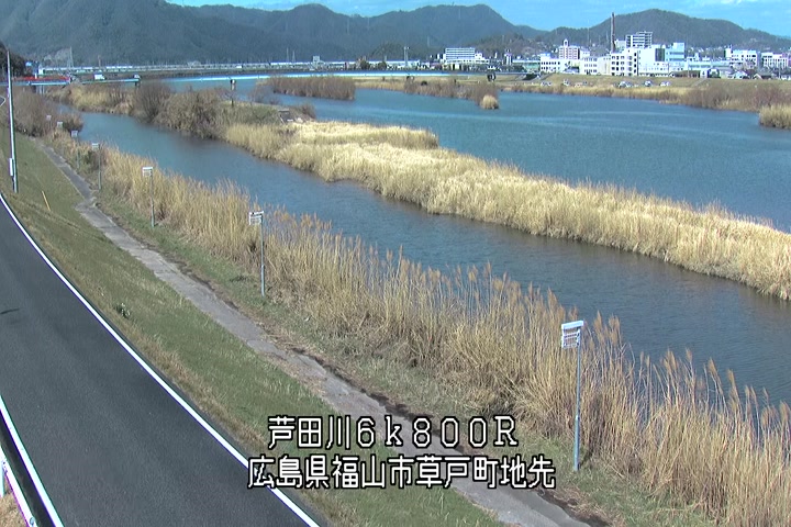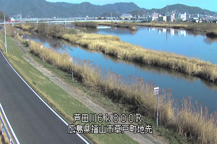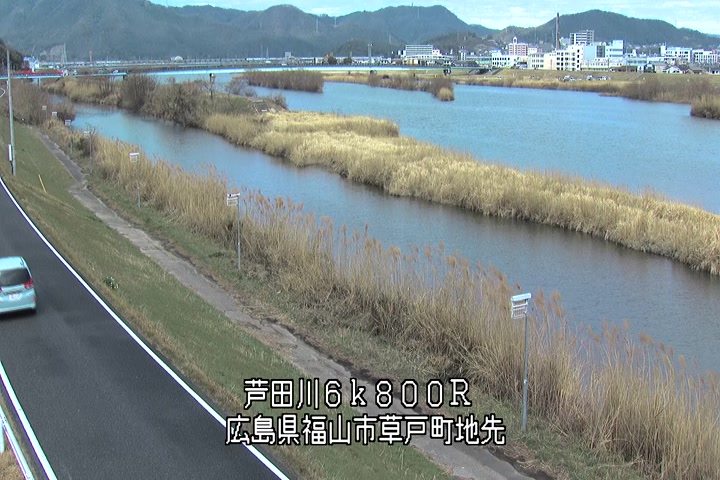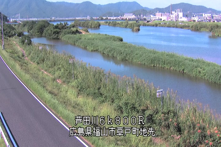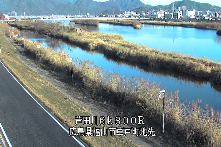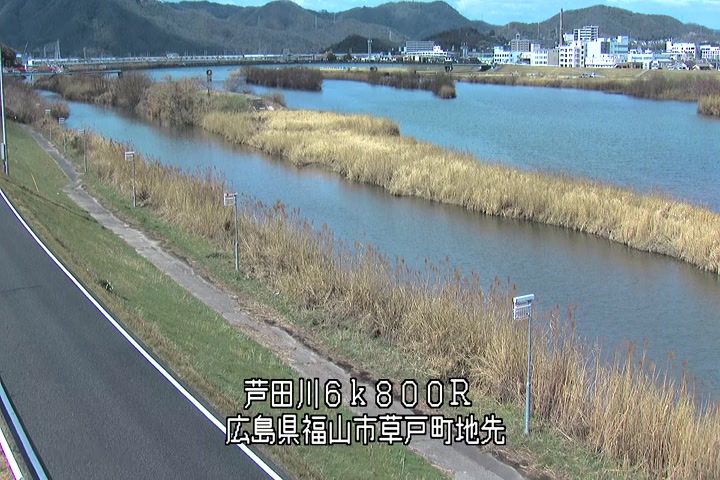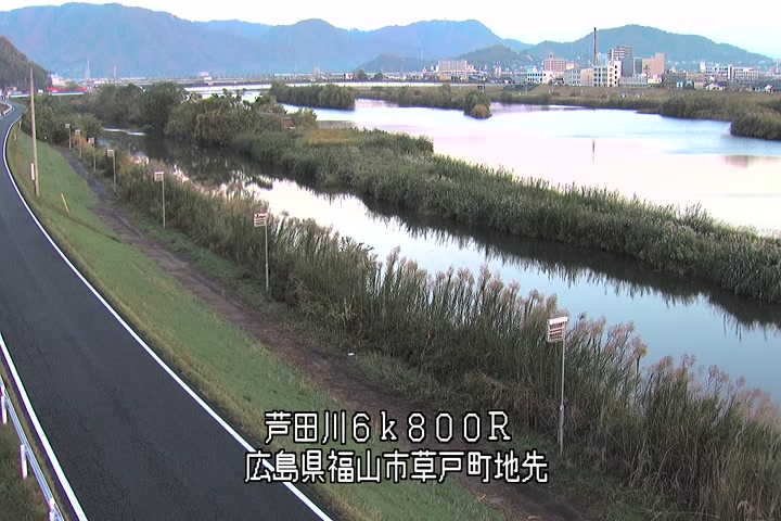 福山市草戸(上流部)の過去24時間(1時間毎)の河川映像を提供しています。