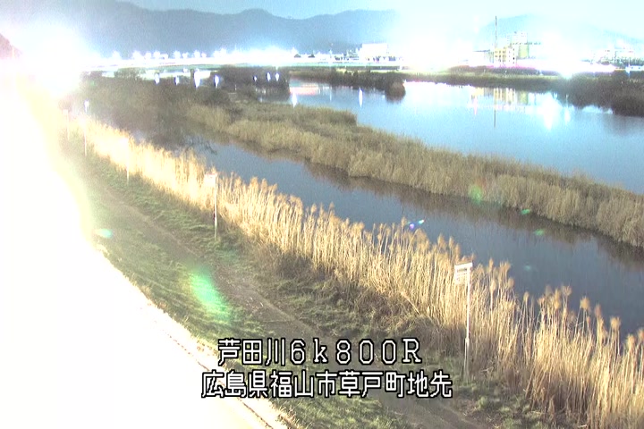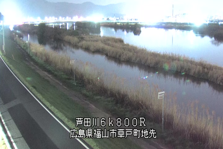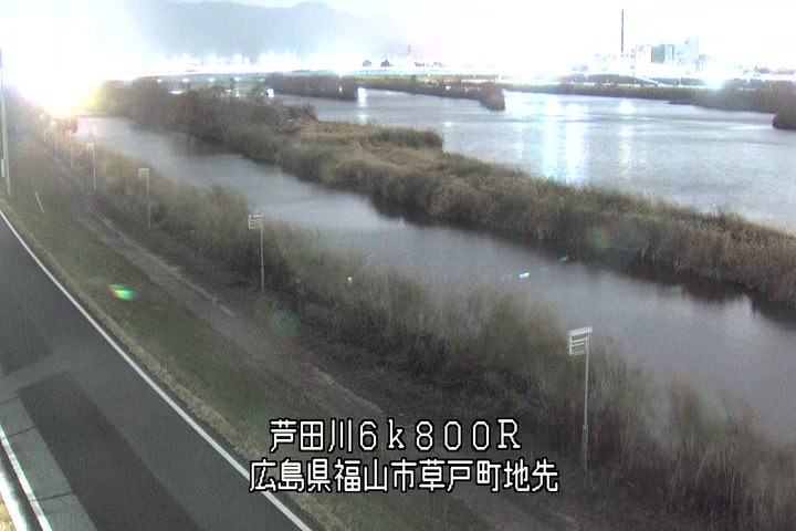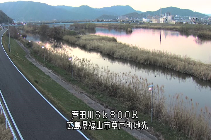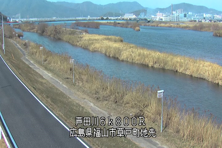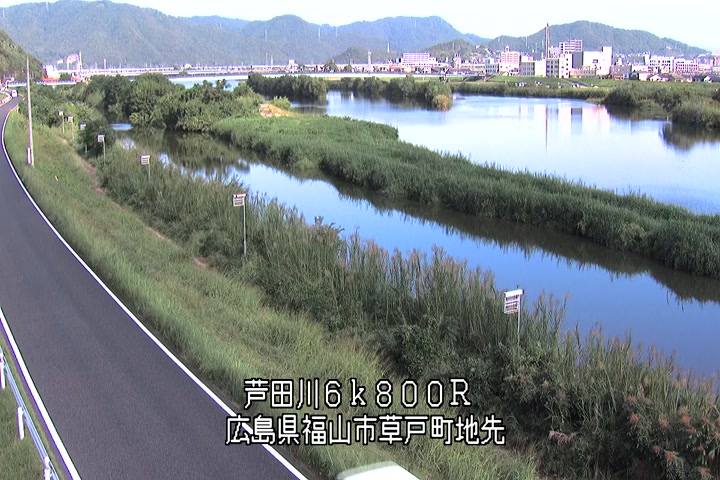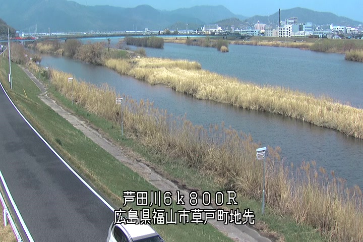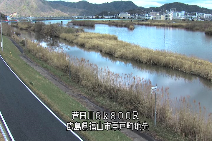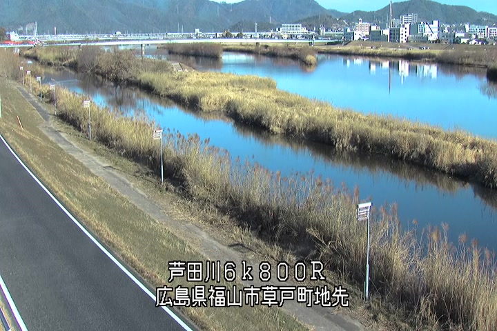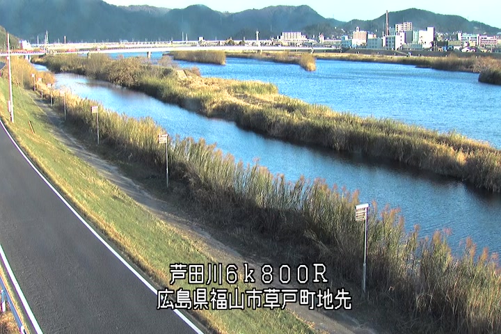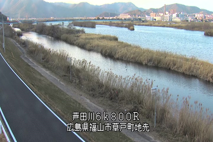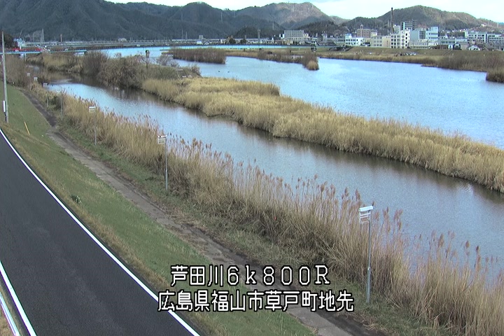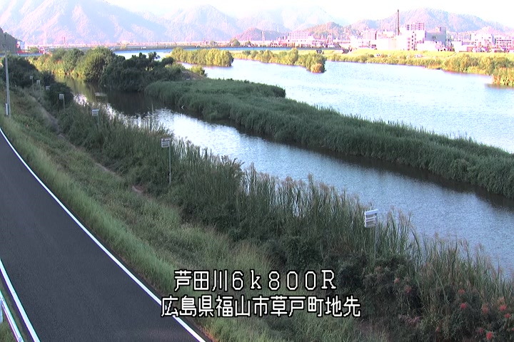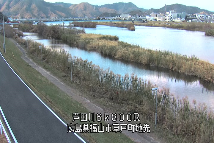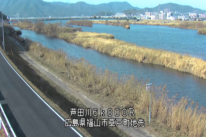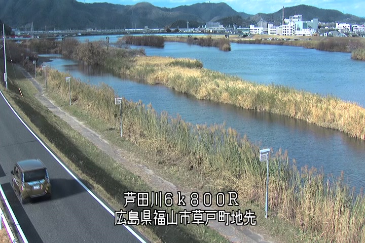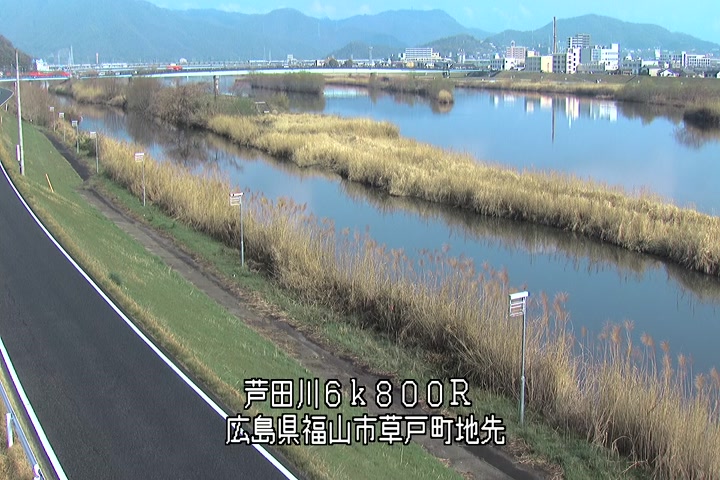 福山市草戸(上流部)の過去24時間(1時間毎)の河川映像を提供しています。