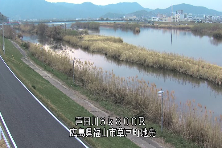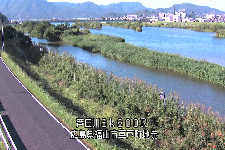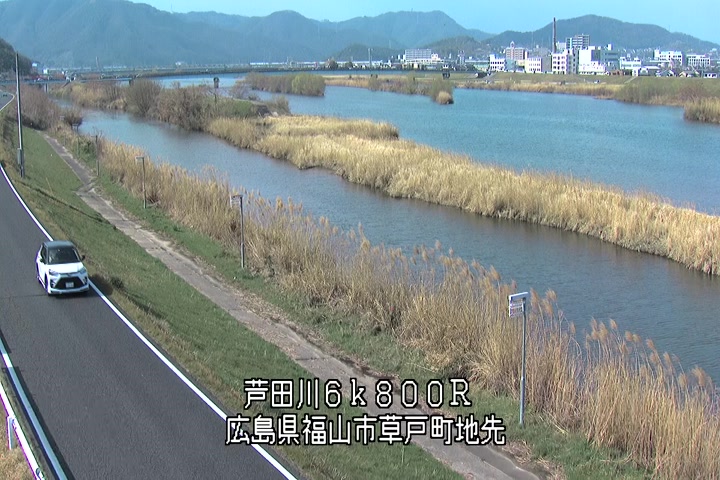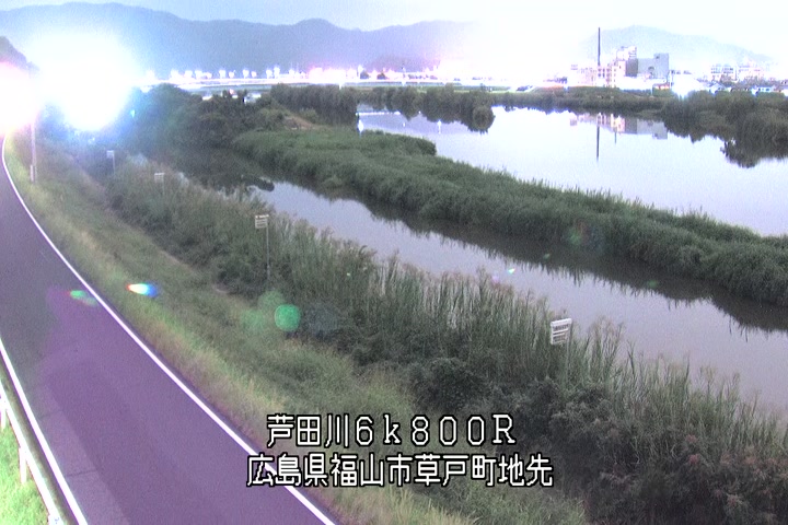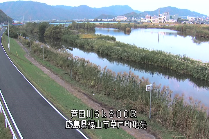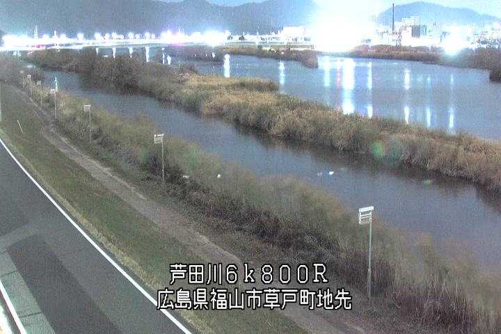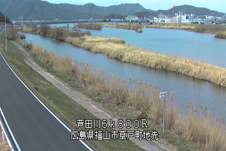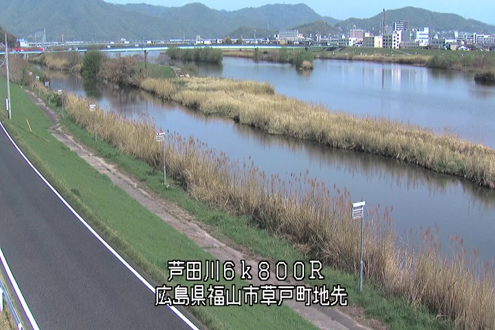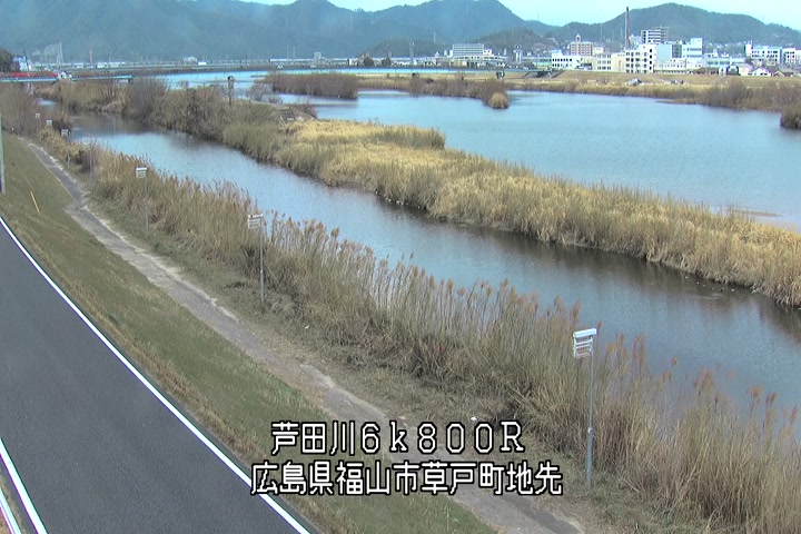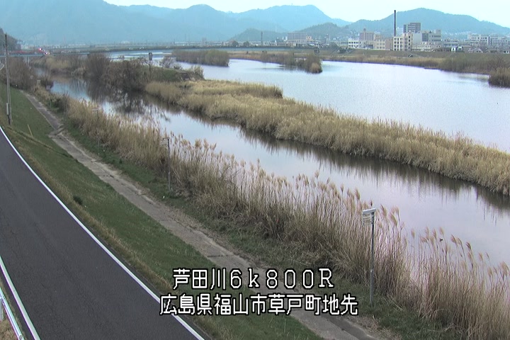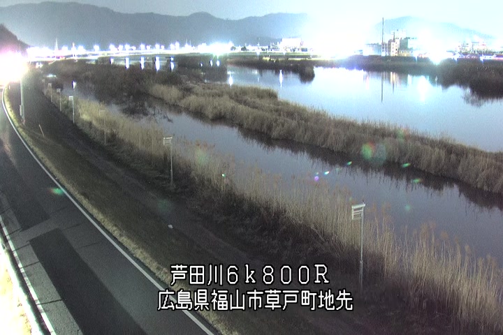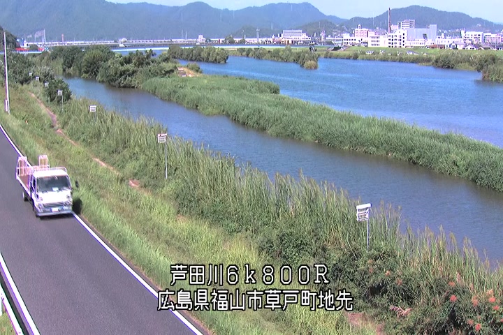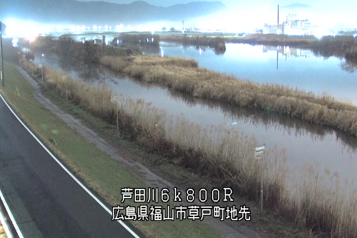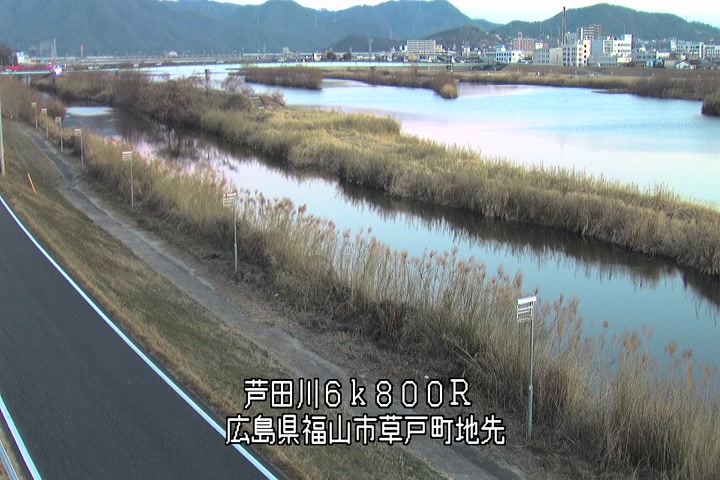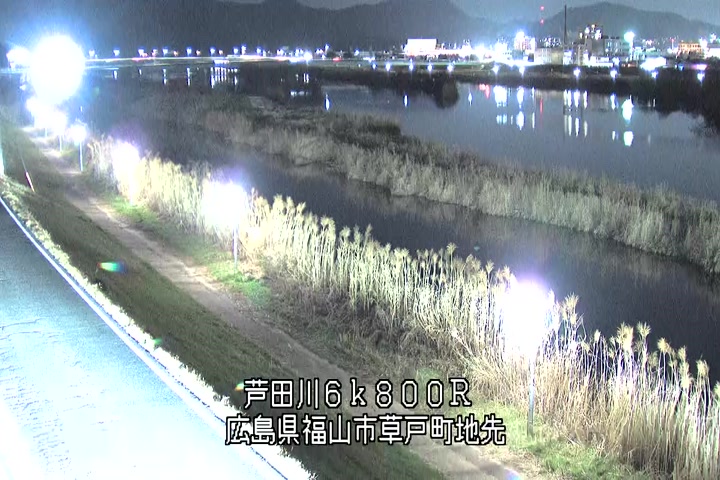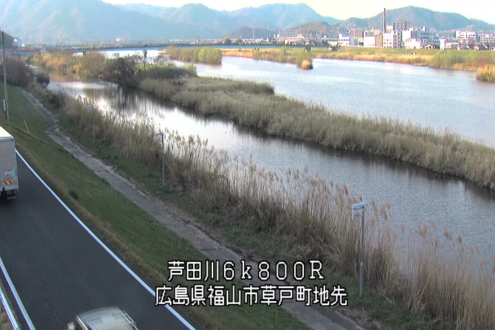 福山市草戸(上流部)の過去24時間(1時間毎)の河川映像を提供しています。