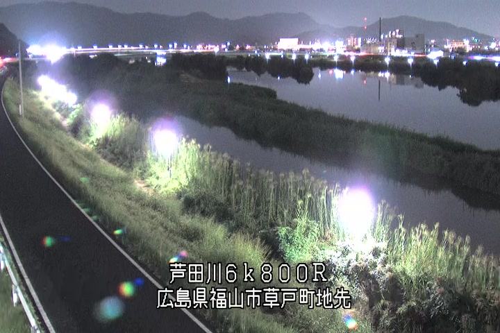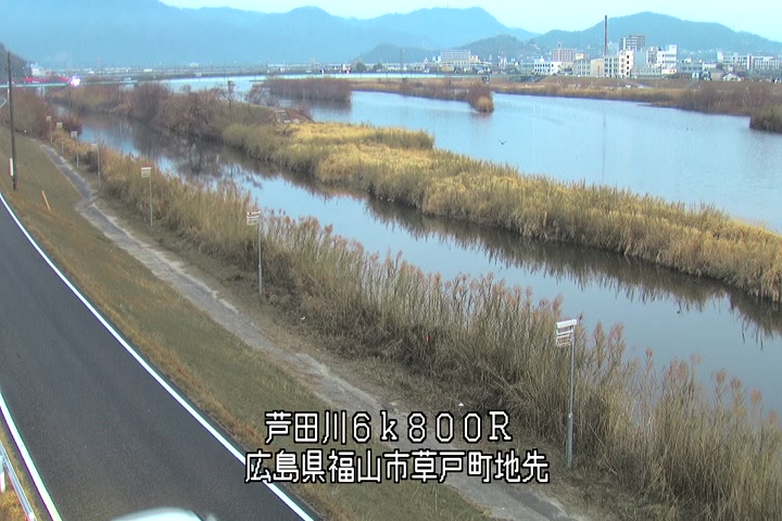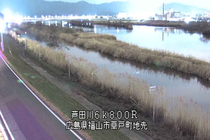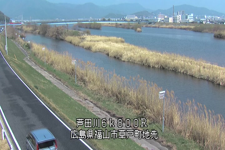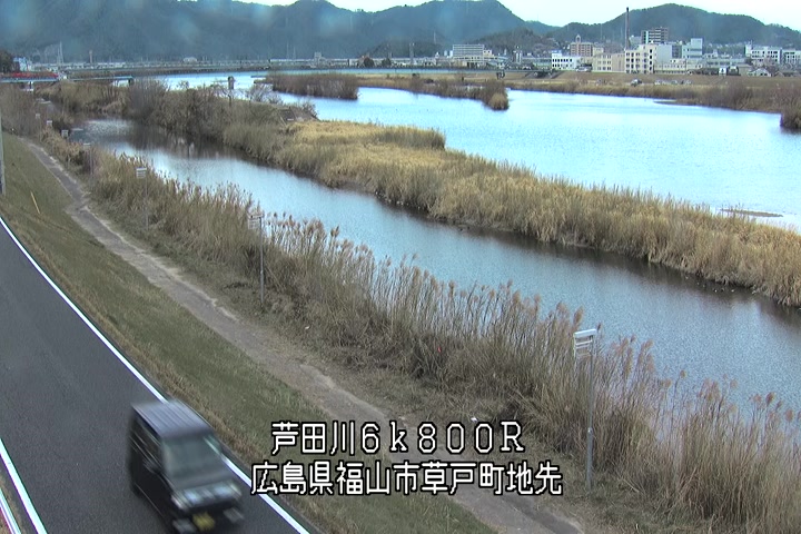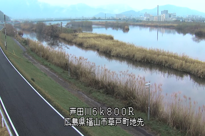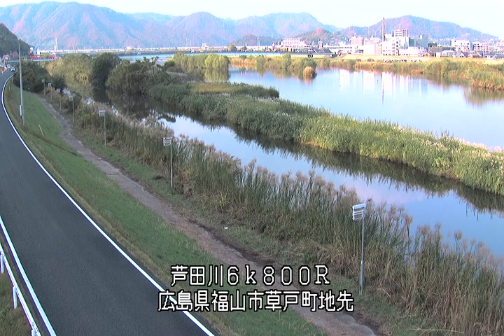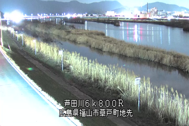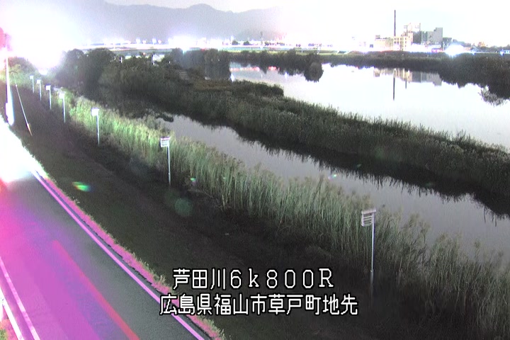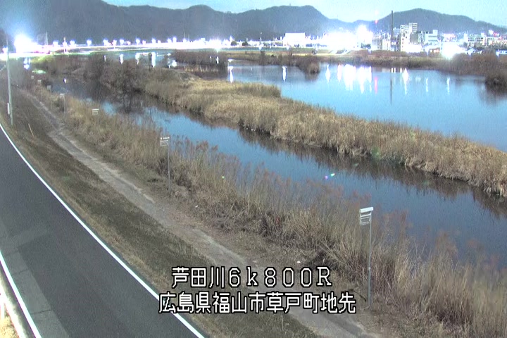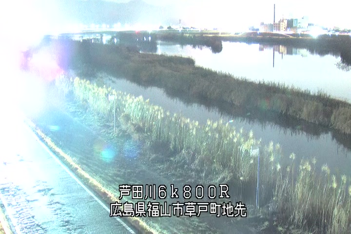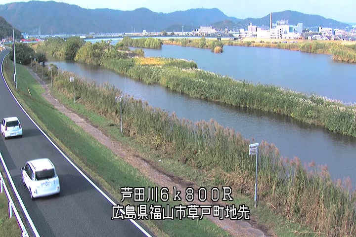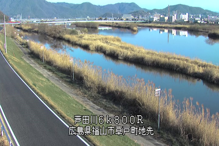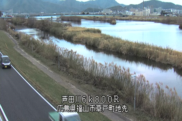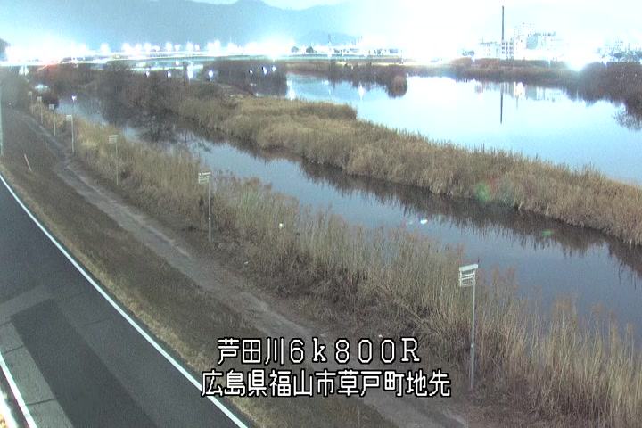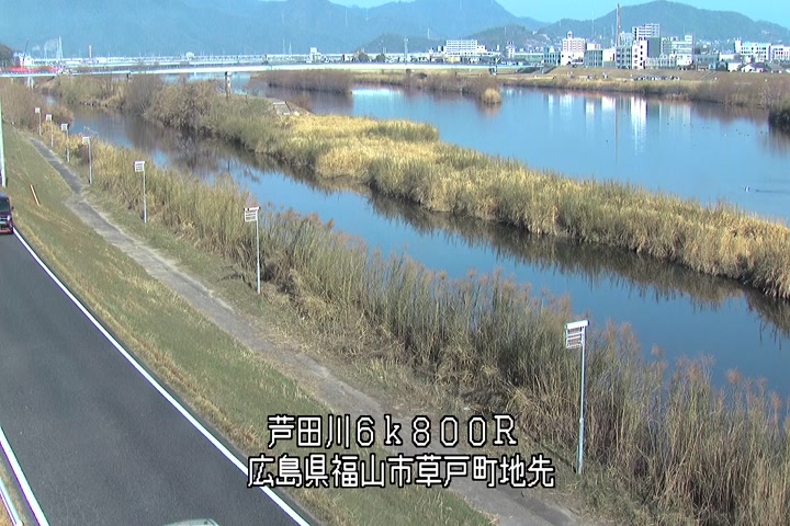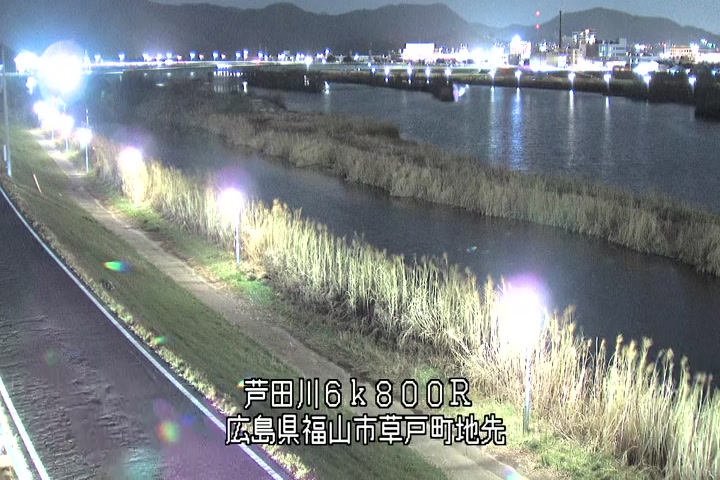 福山市草戸(上流部)の過去24時間(1時間毎)の河川映像を提供しています。