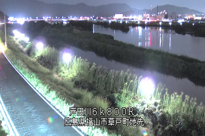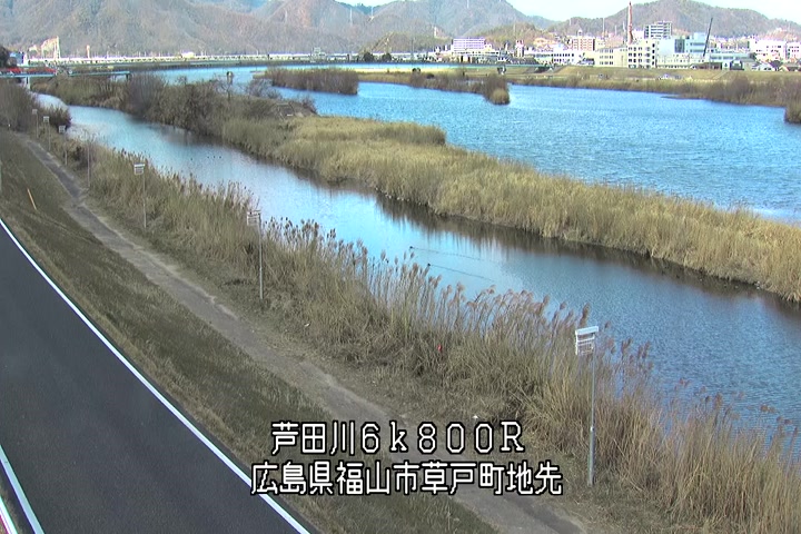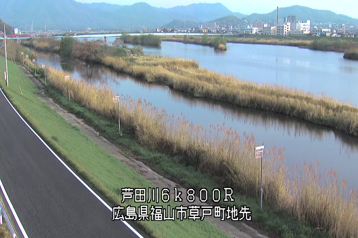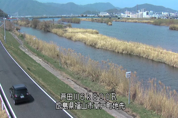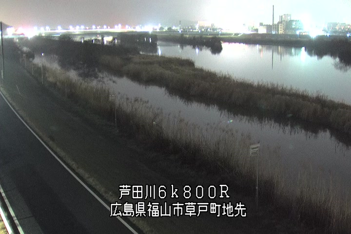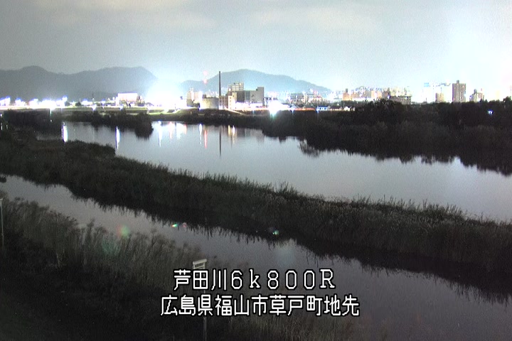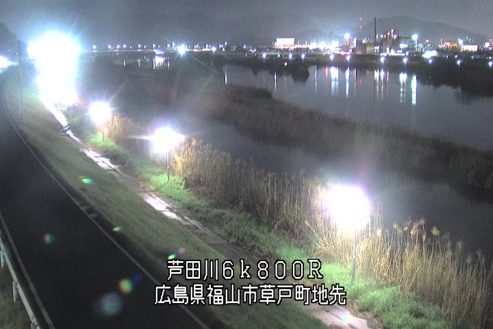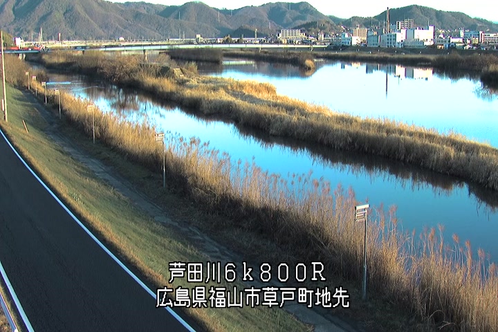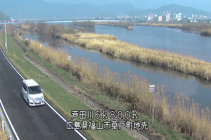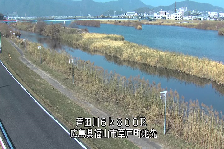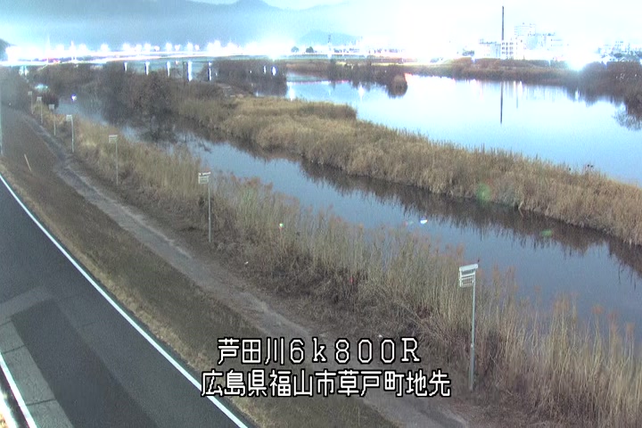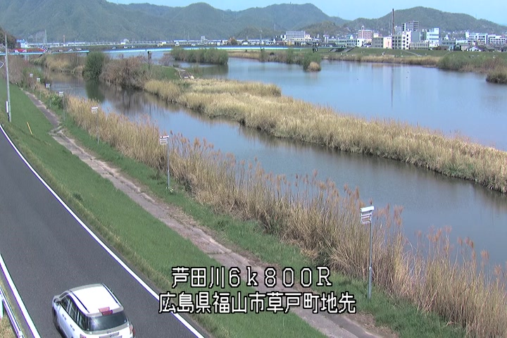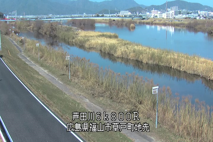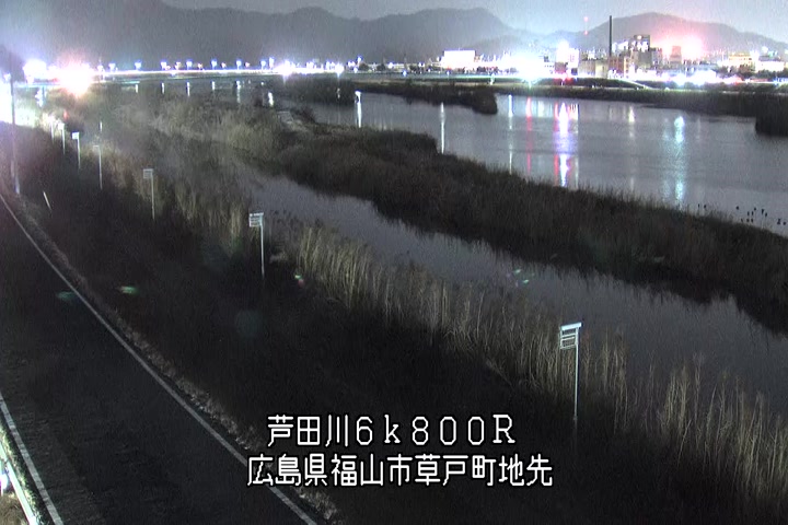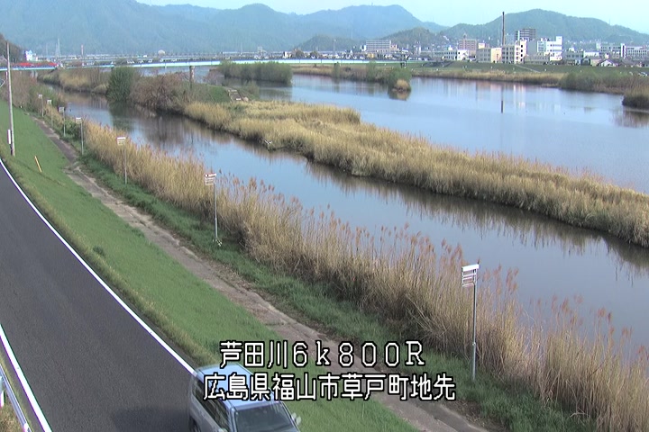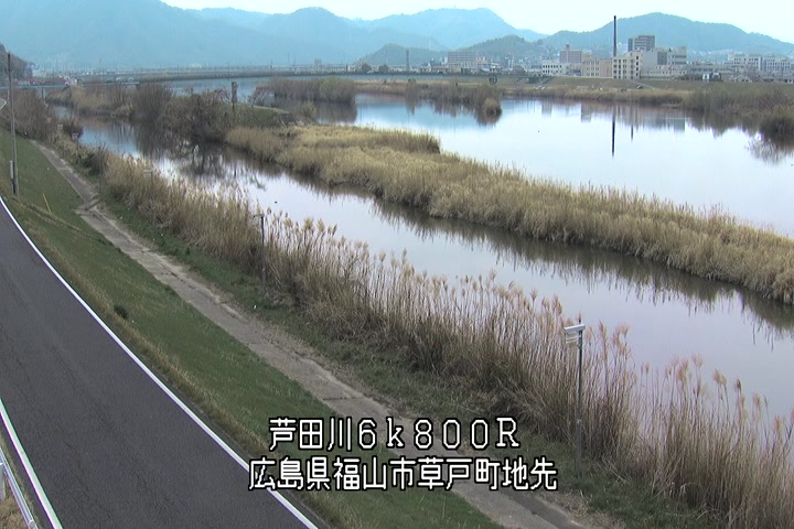 福山市草戸(上流部)の過去24時間(1時間毎)の河川映像を提供しています。