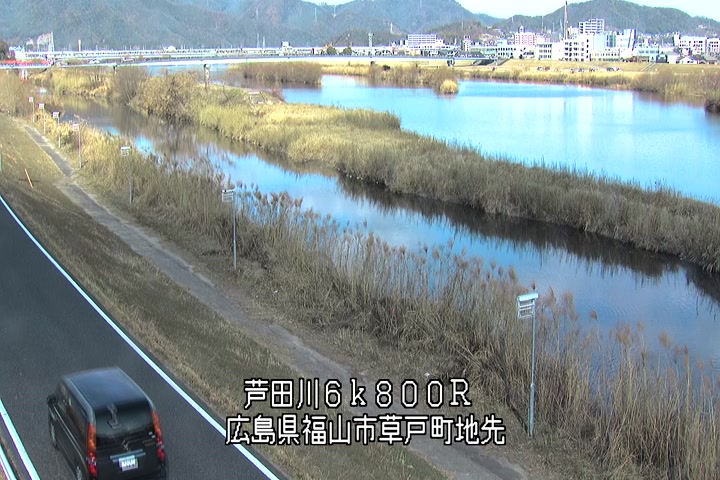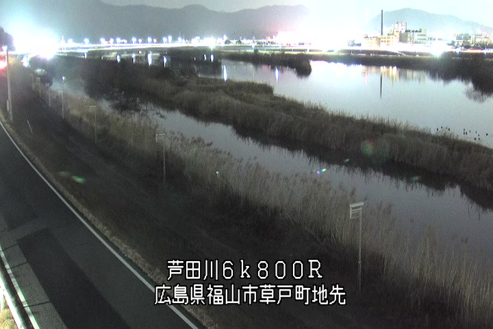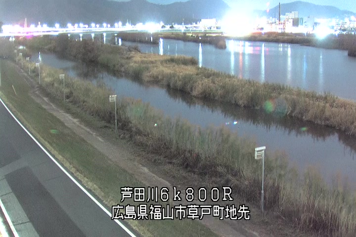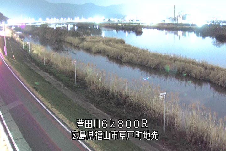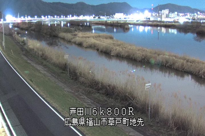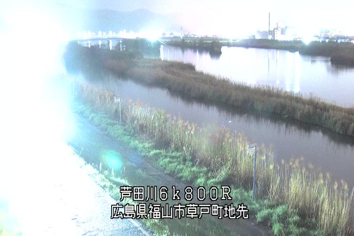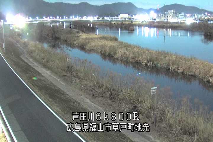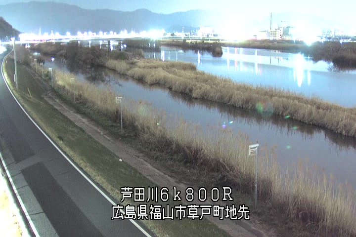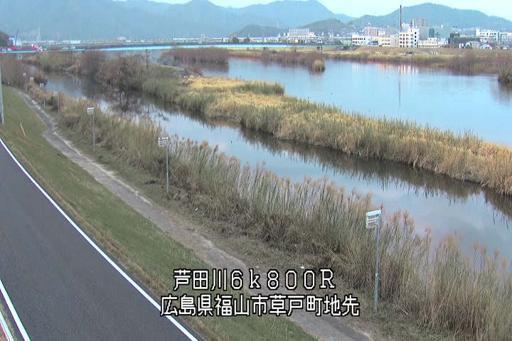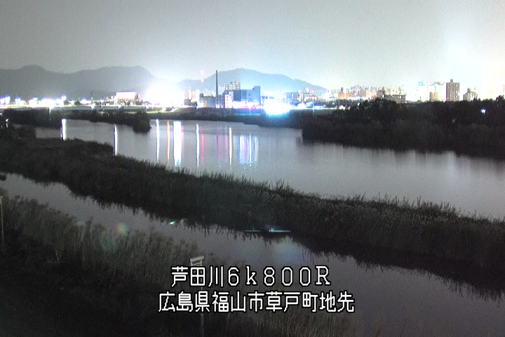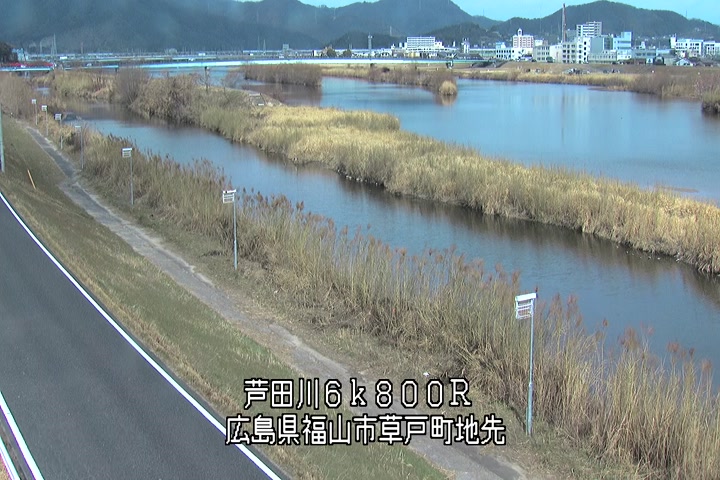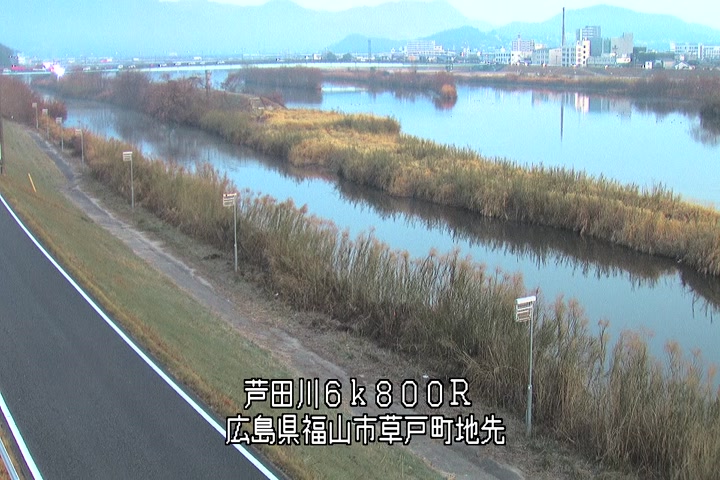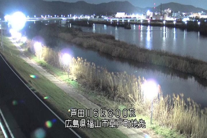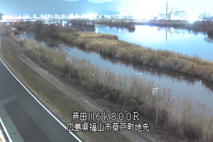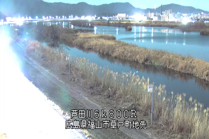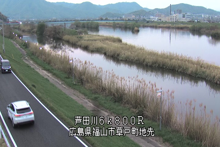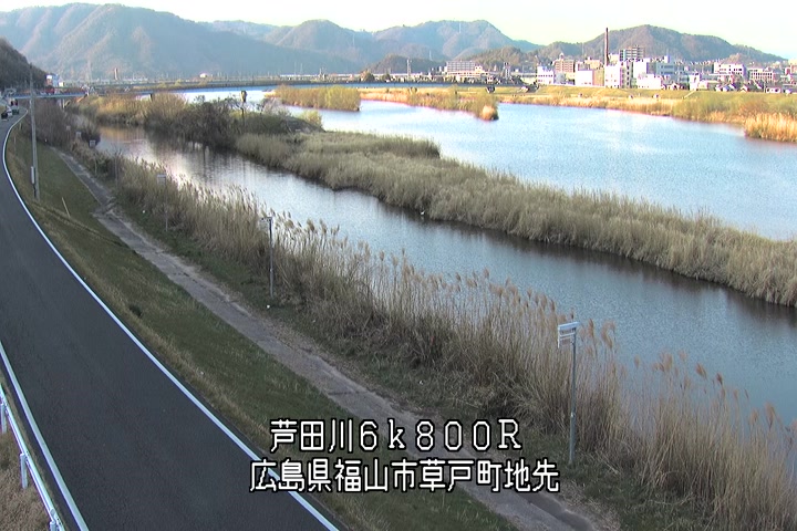 福山市草戸(上流部)の過去24時間(1時間毎)の河川映像を提供しています。