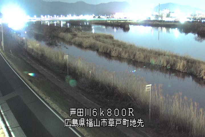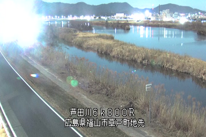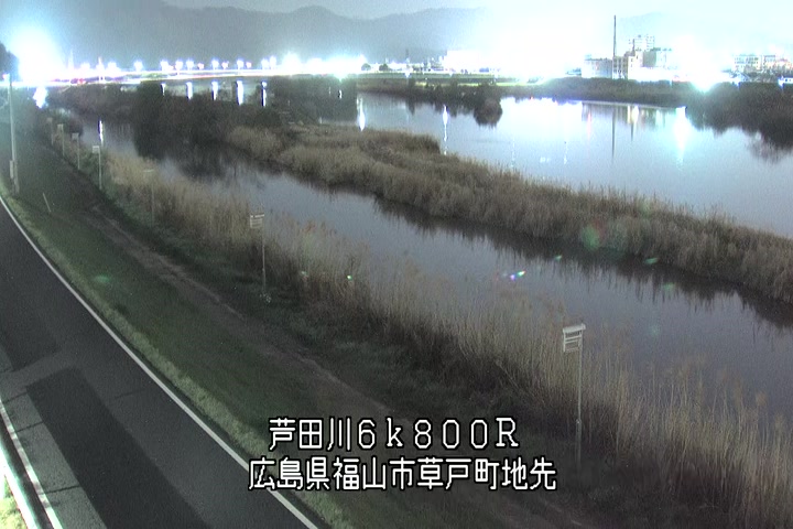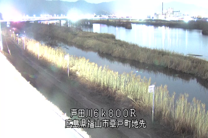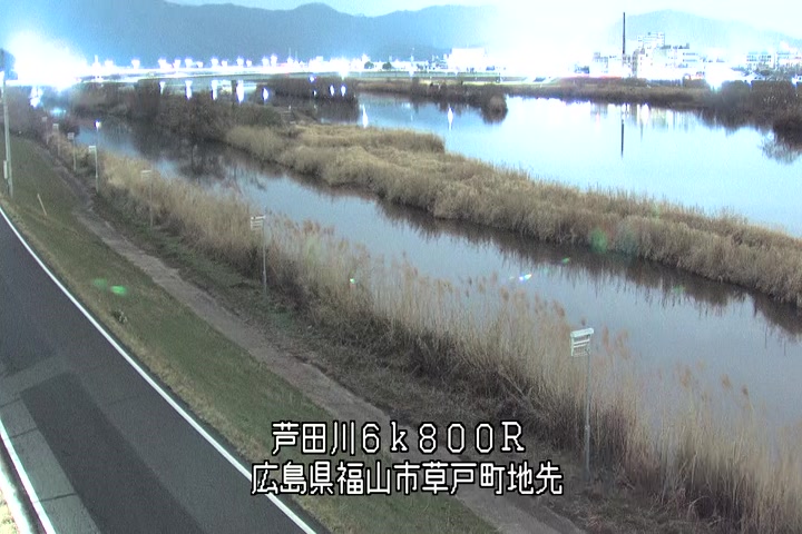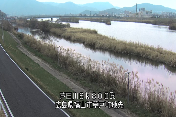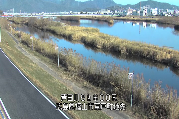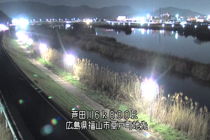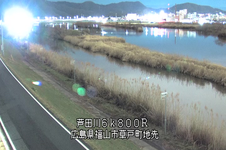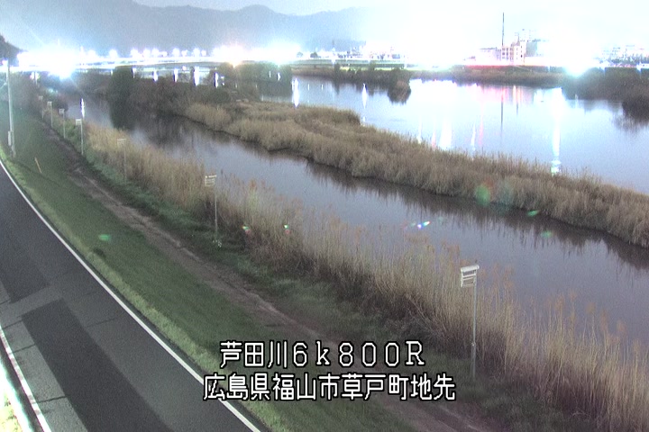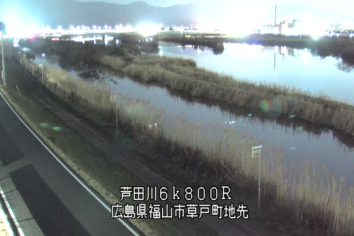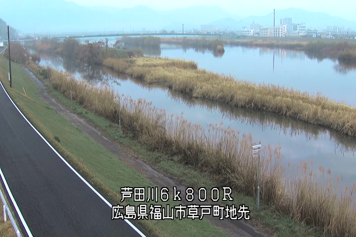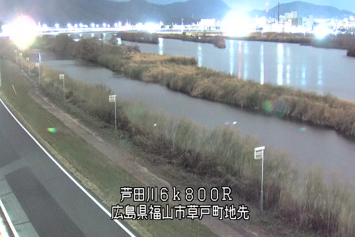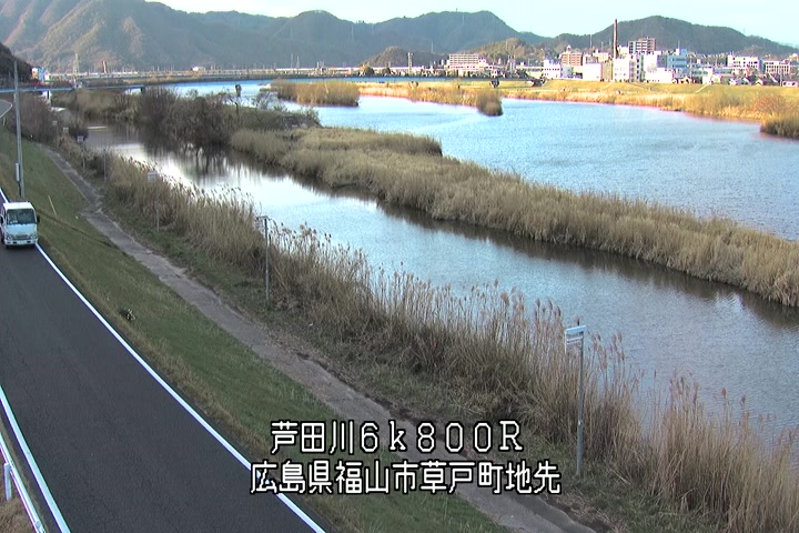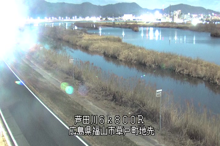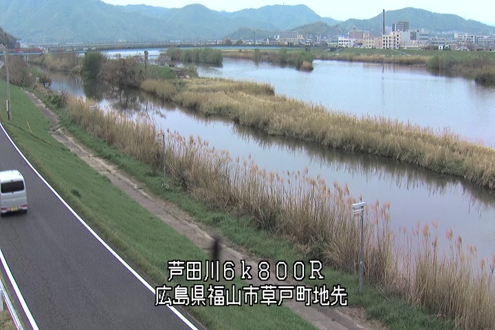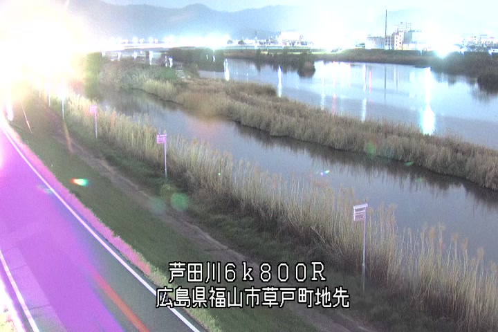 福山市草戸(上流部)の過去24時間(1時間毎)の河川映像を提供しています。