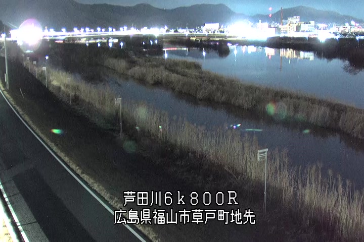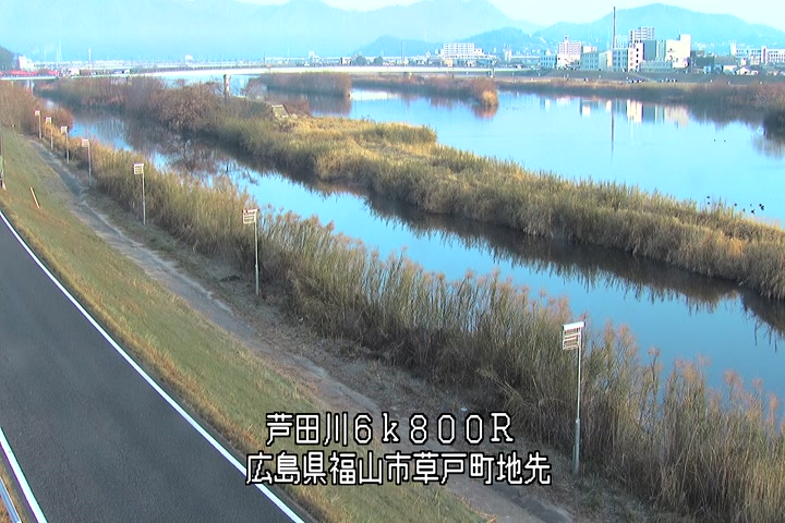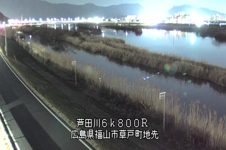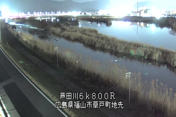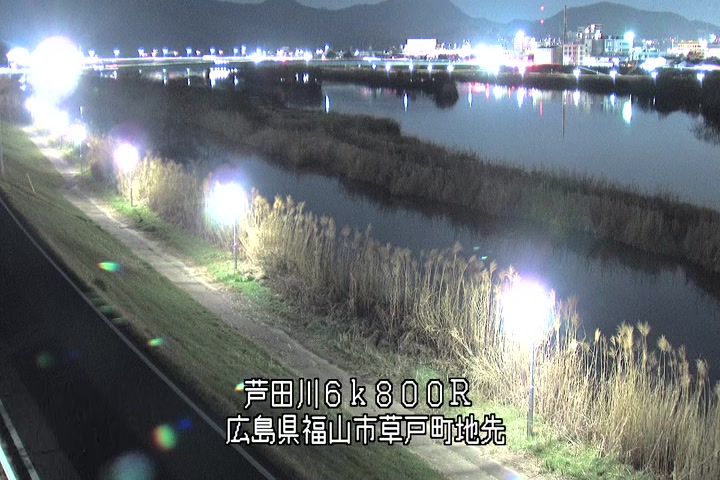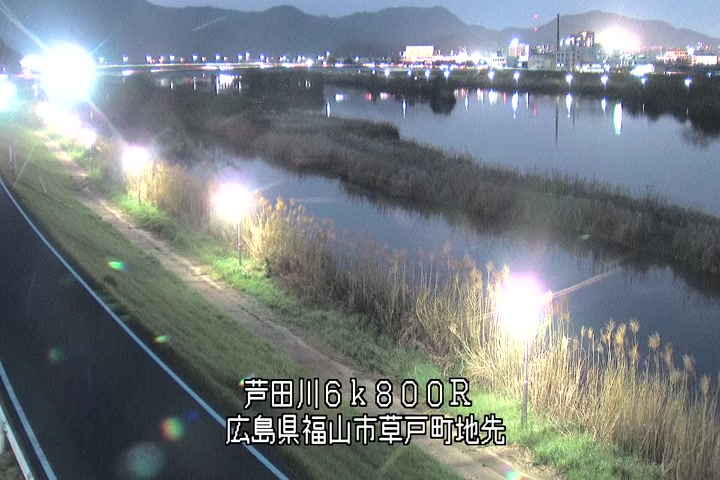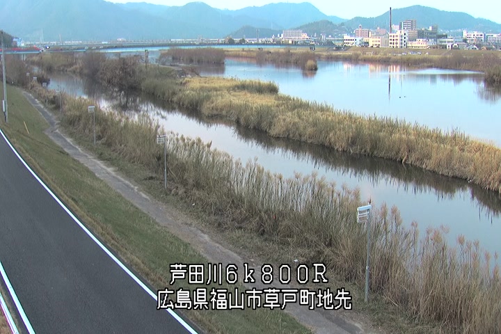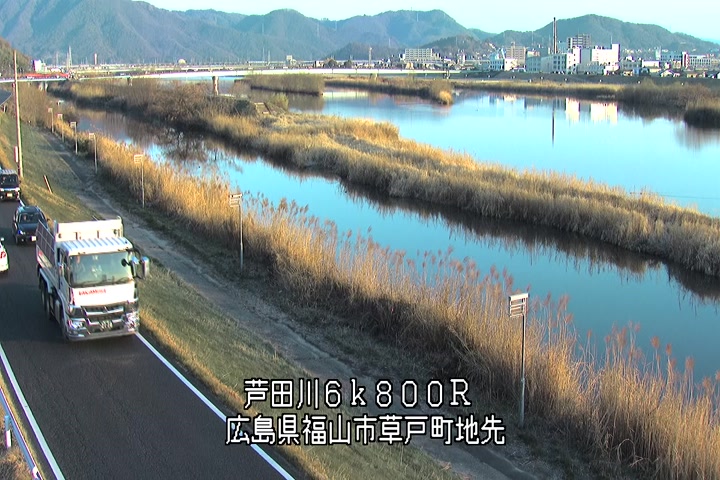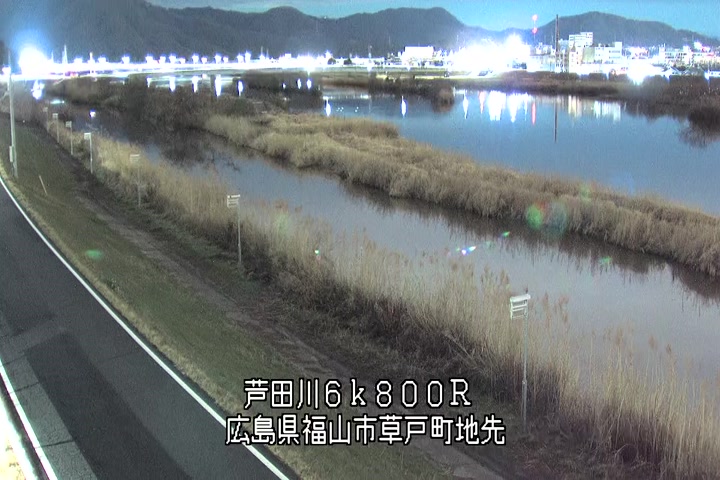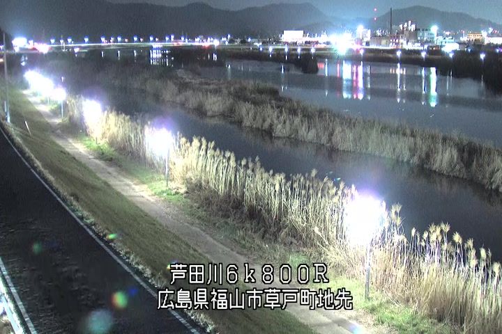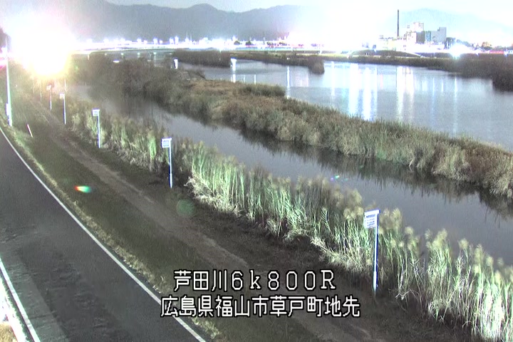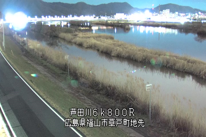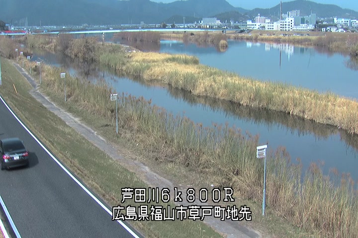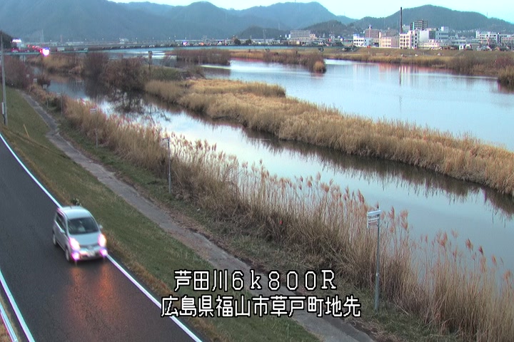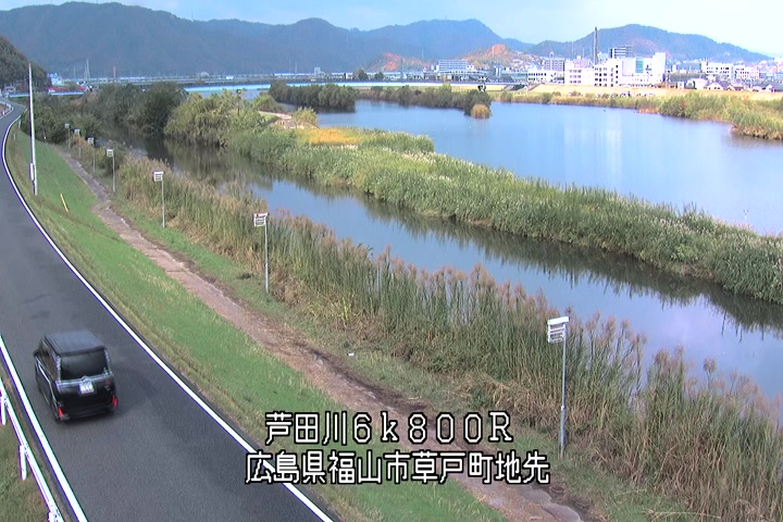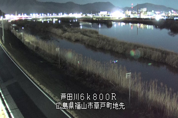 福山市草戸(上流部)の過去24時間(1時間毎)の河川映像を提供しています。
