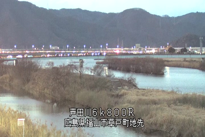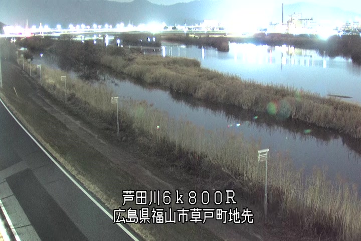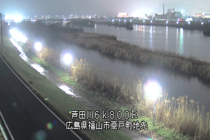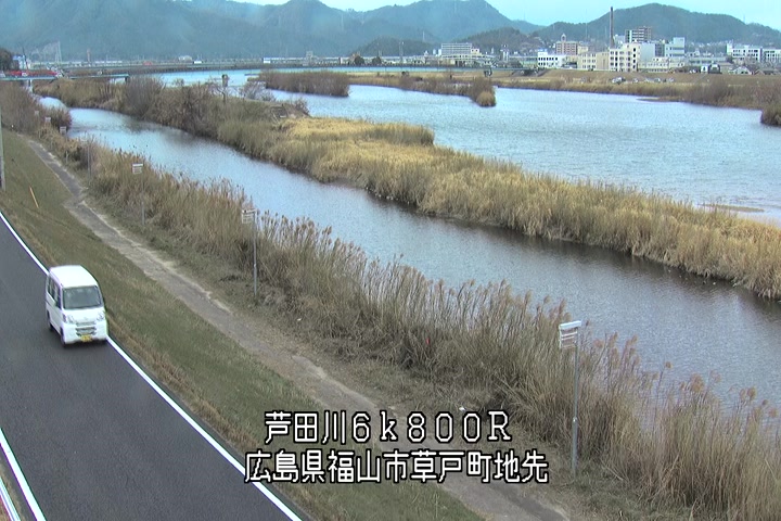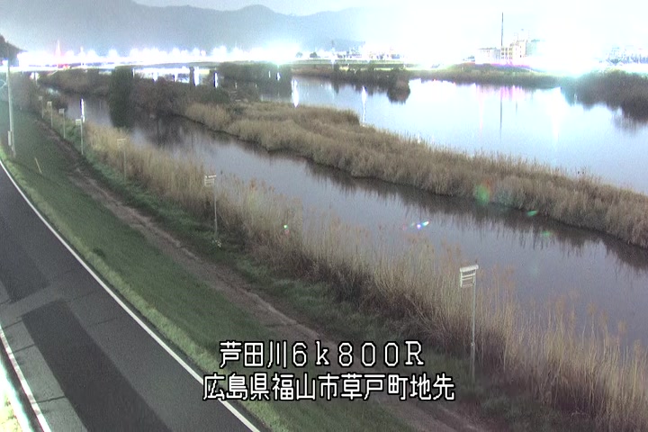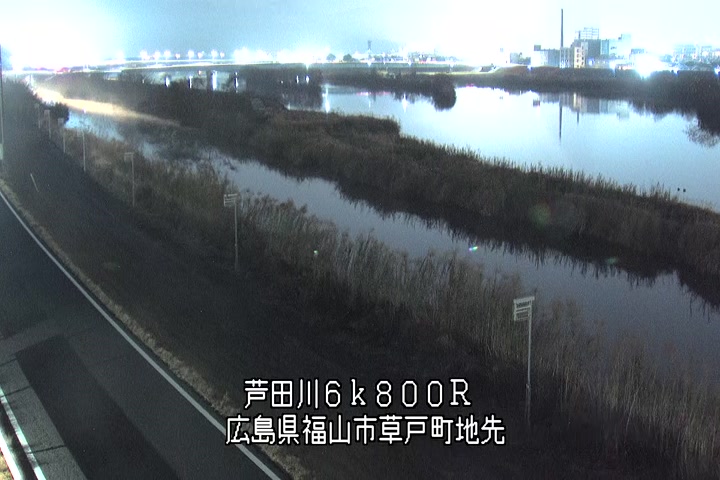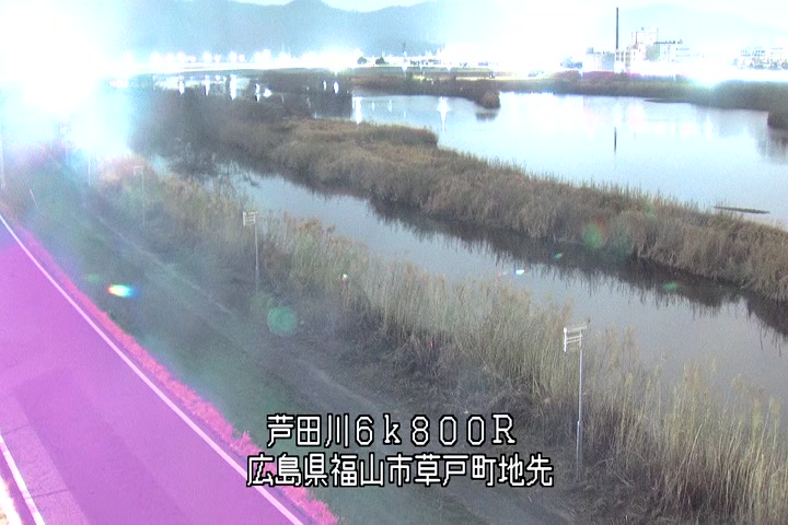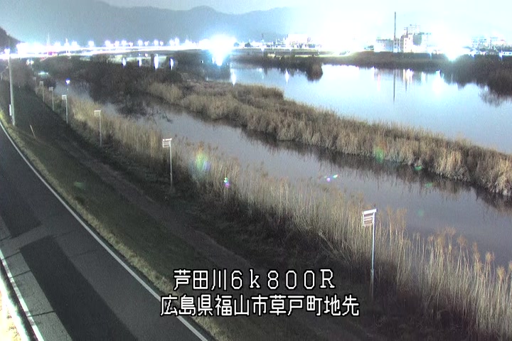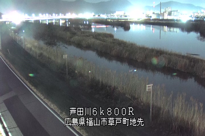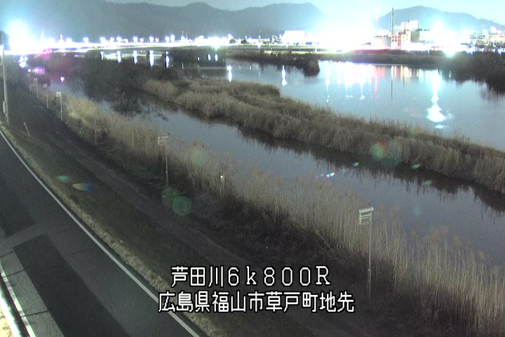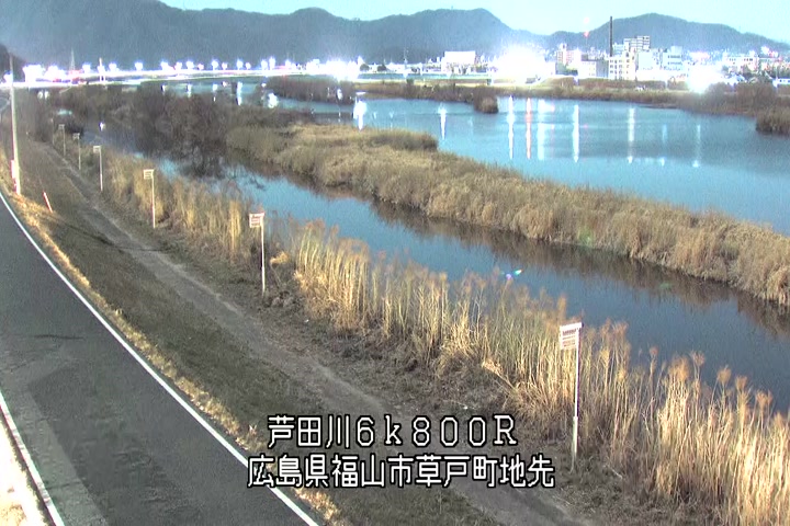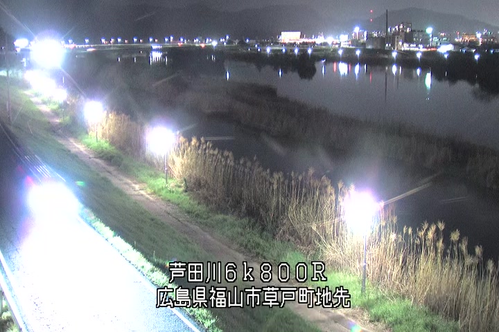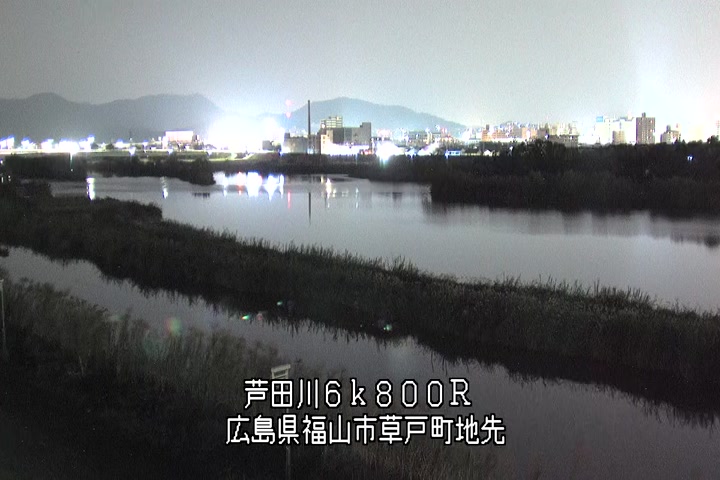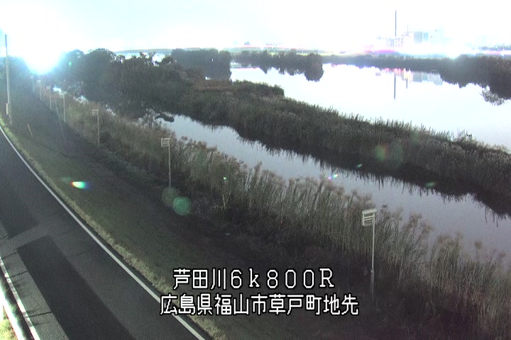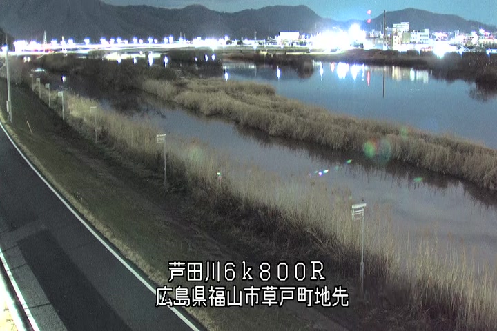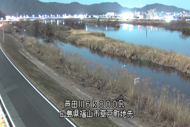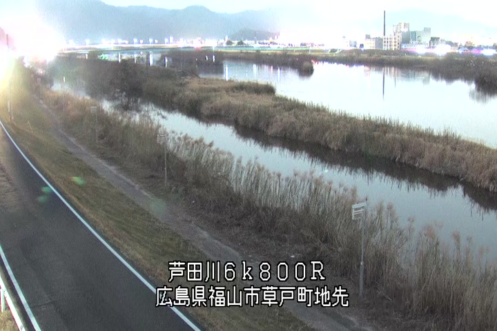 福山市草戸(上流部)の過去24時間(1時間毎)の河川映像を提供しています。