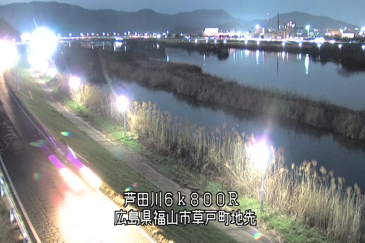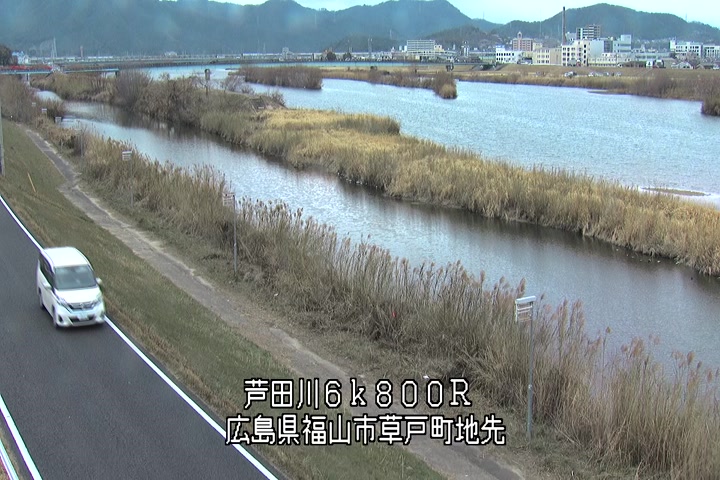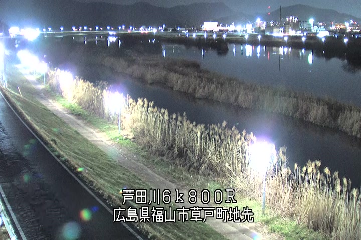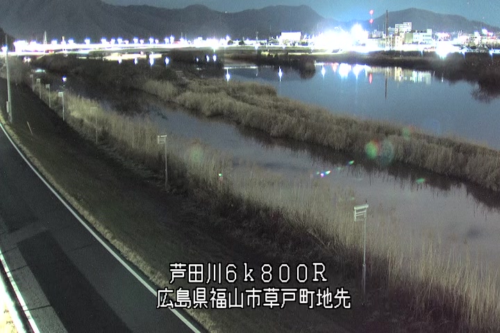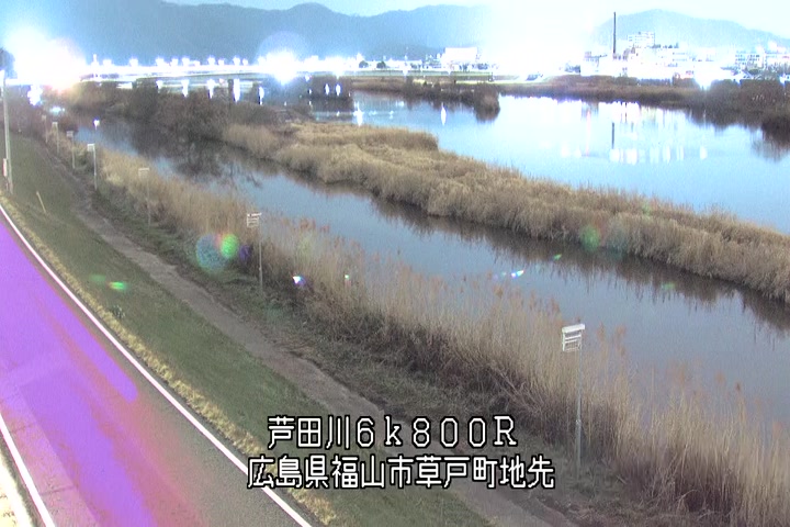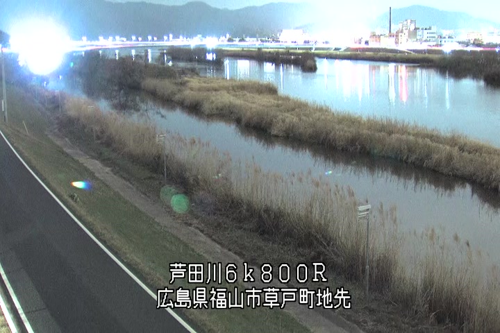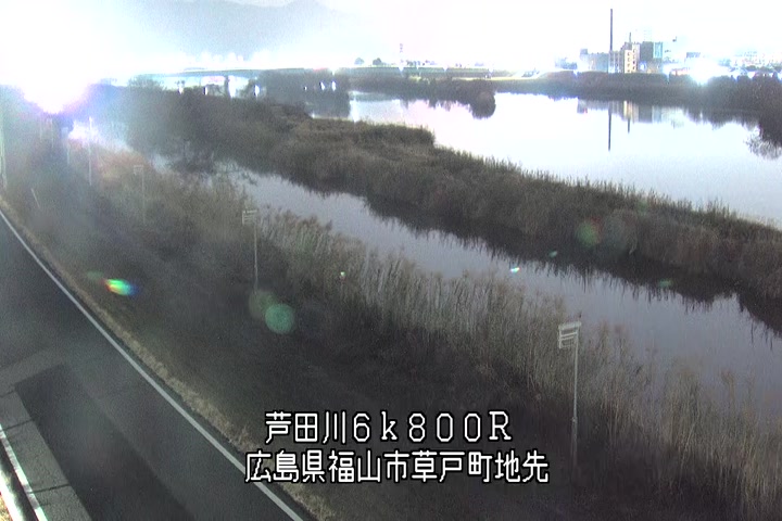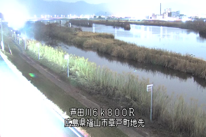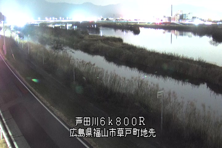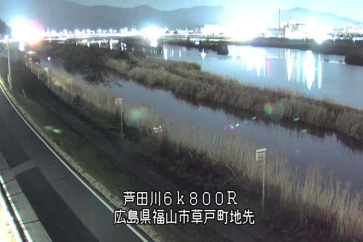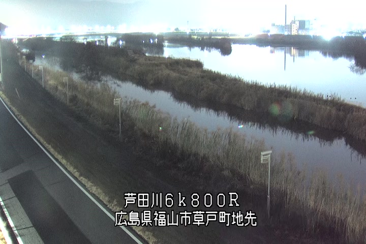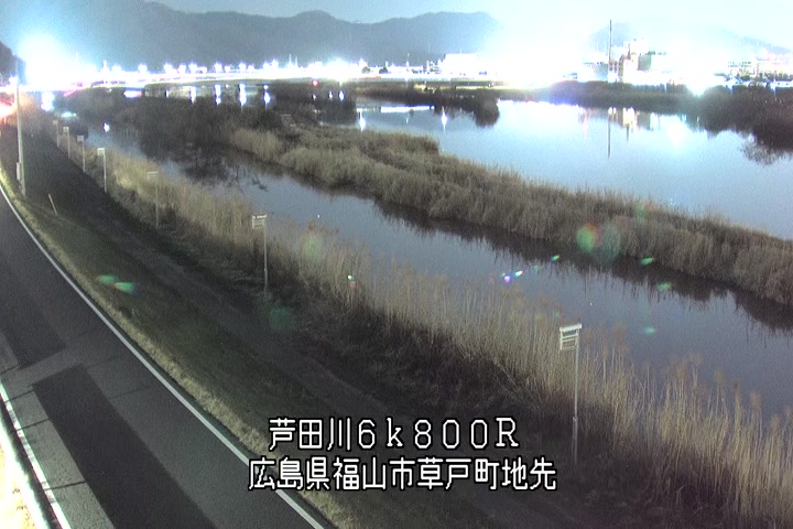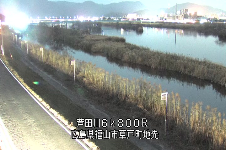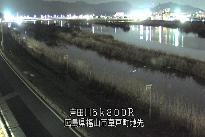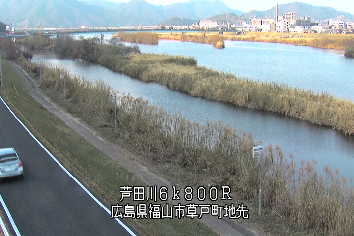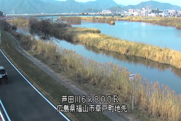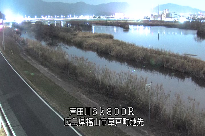 福山市草戸(上流部)の過去24時間(1時間毎)の河川映像を提供しています。