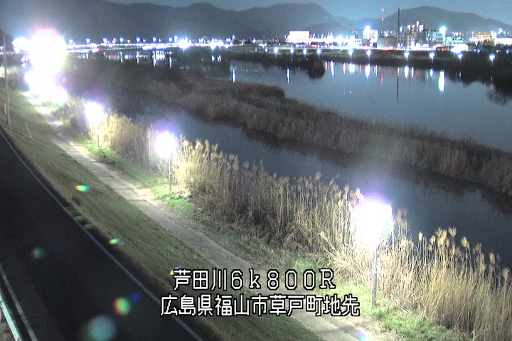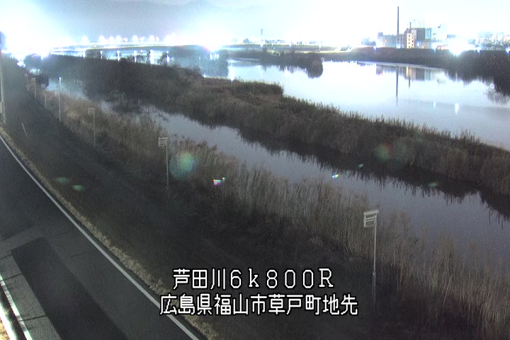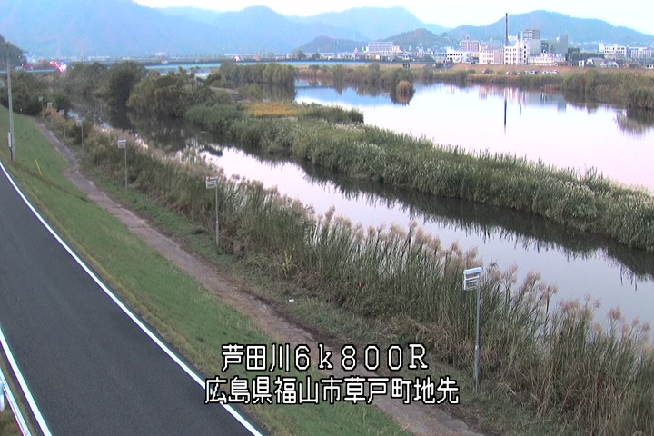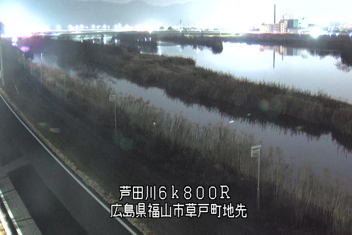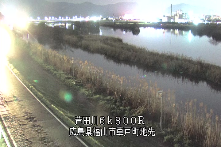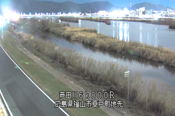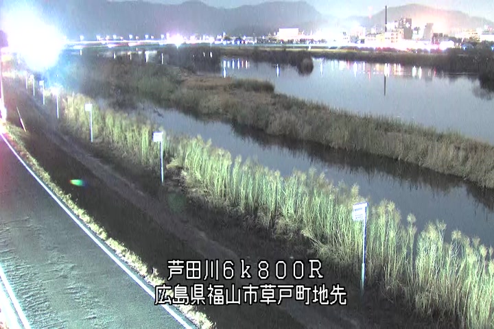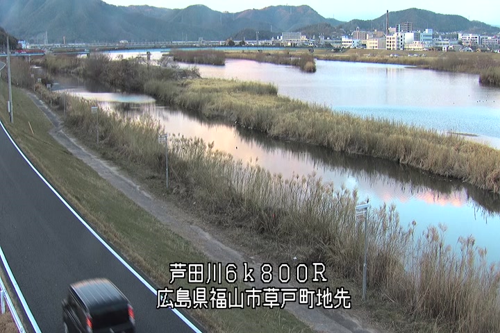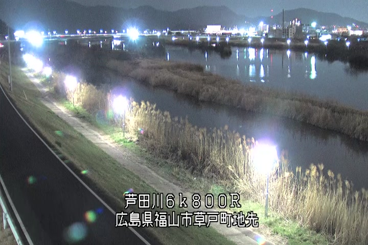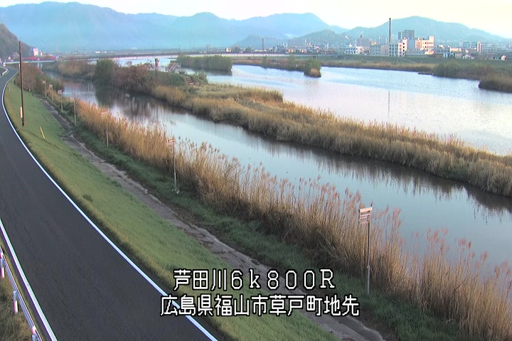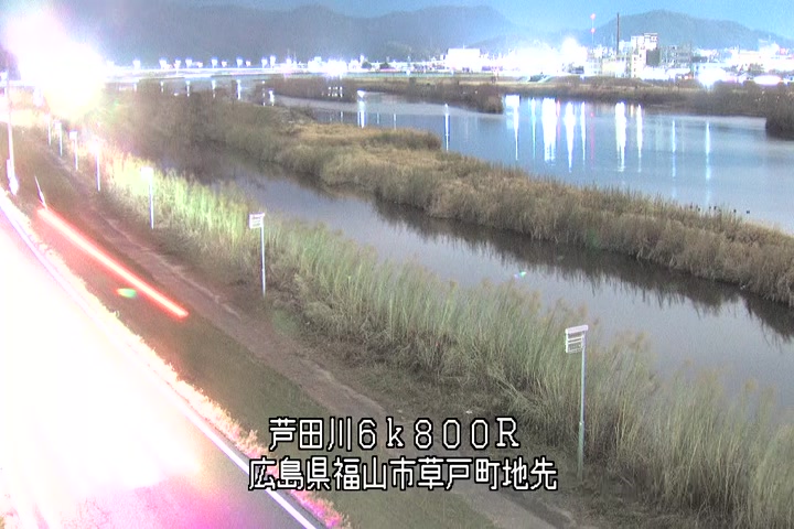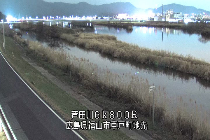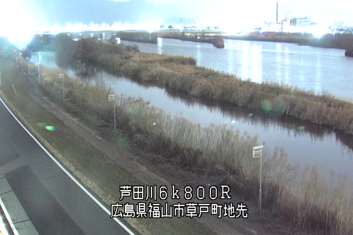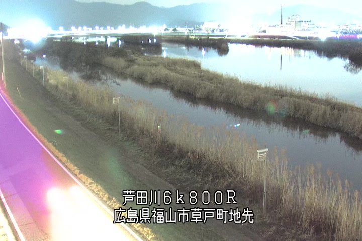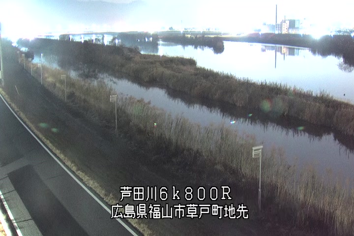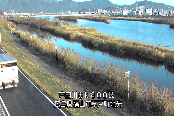 福山市草戸(上流部)の過去24時間(1時間毎)の河川映像を提供しています。