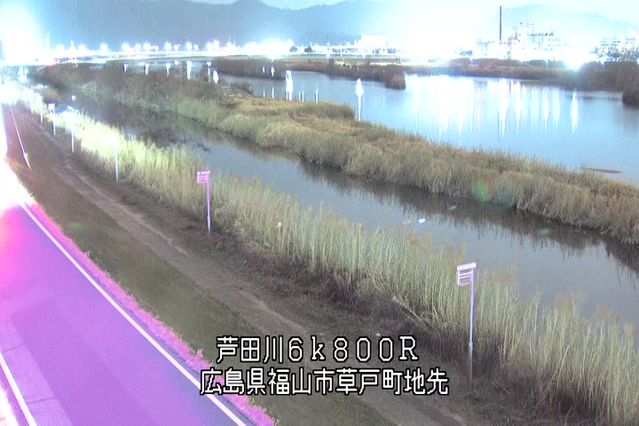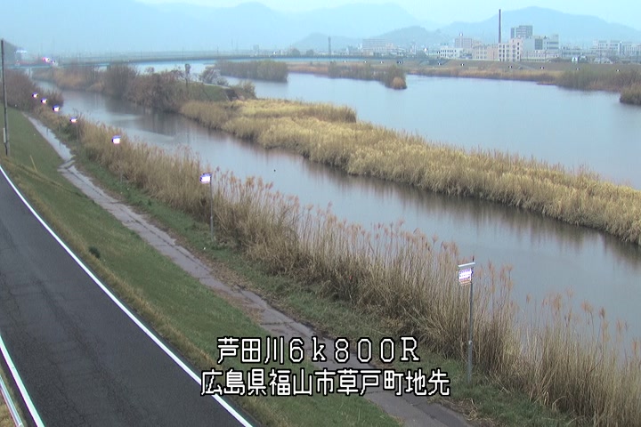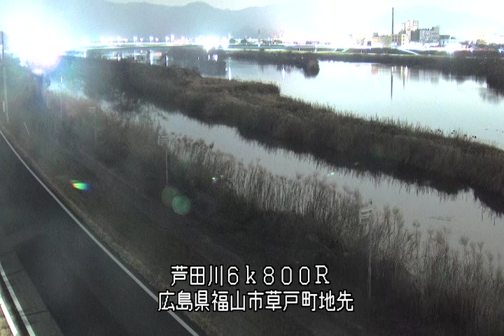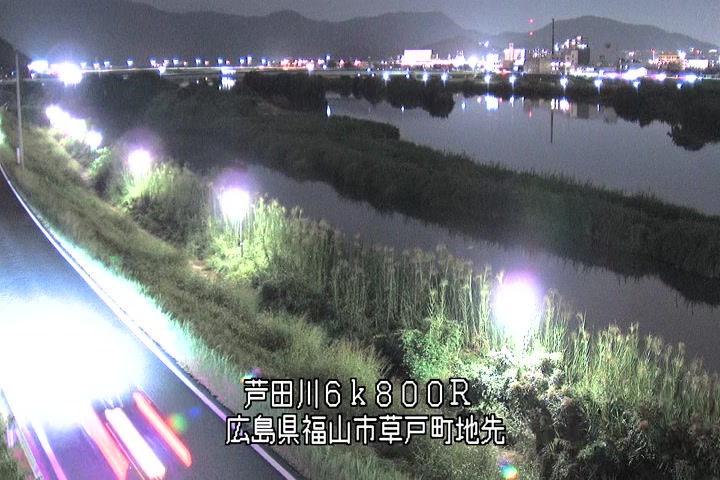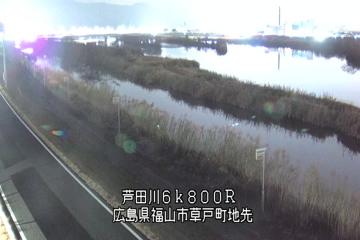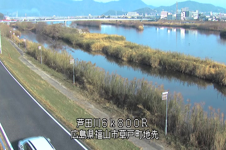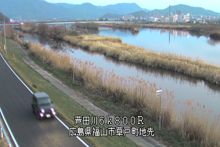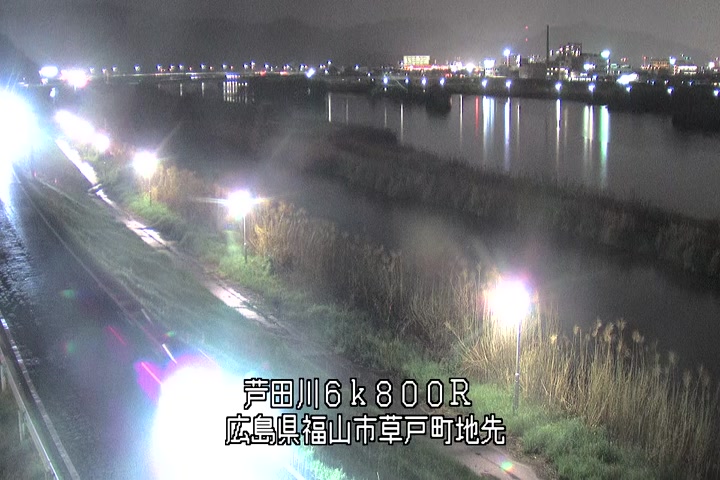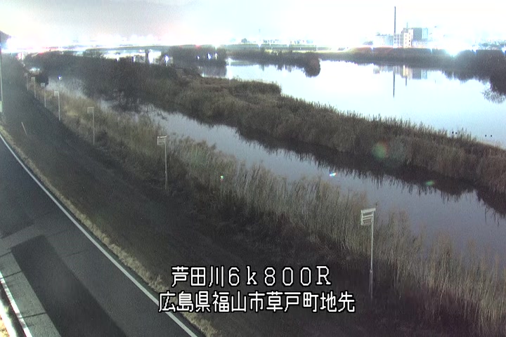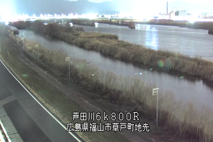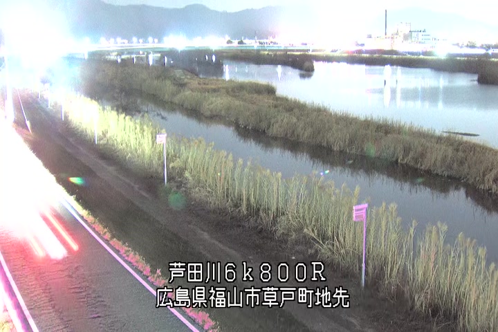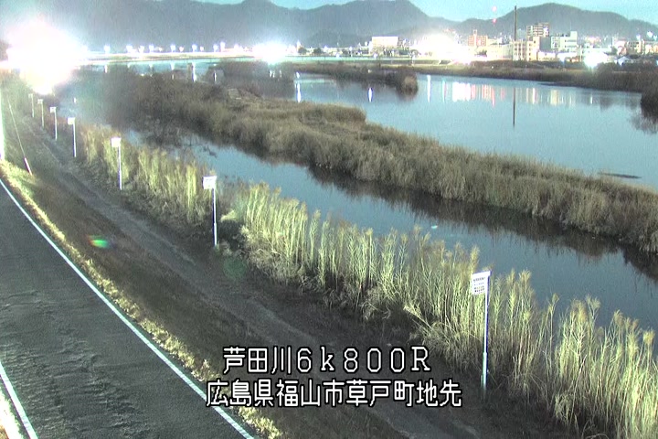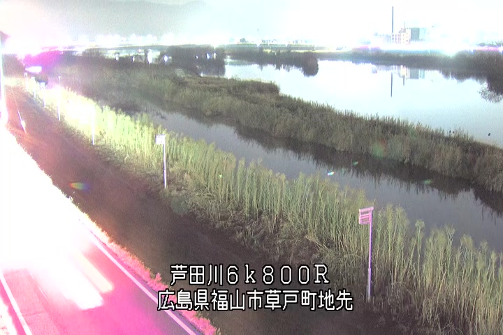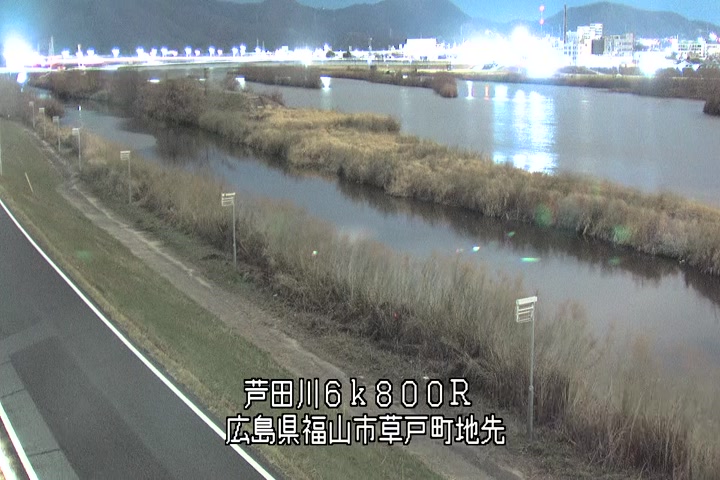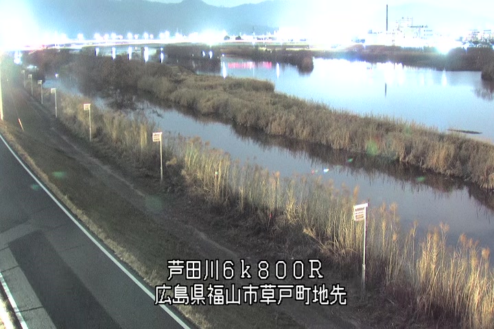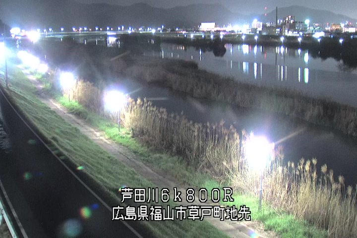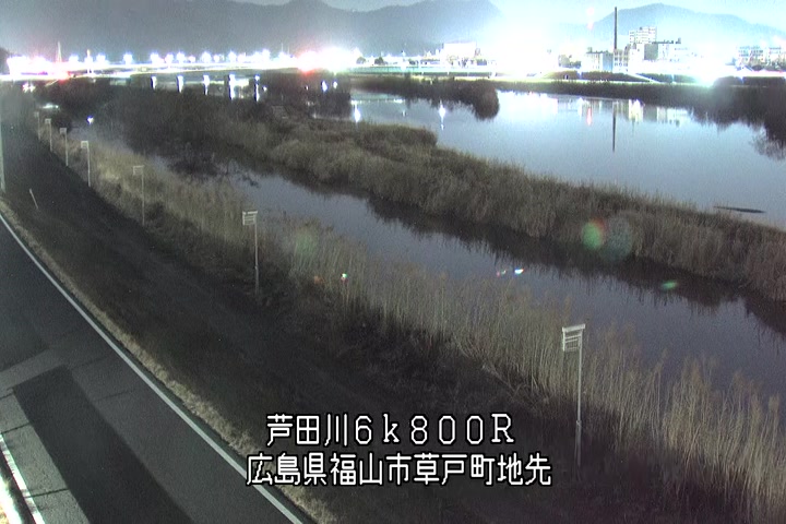 福山市草戸(上流部)の過去24時間(1時間毎)の河川映像を提供しています。