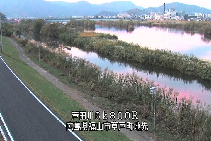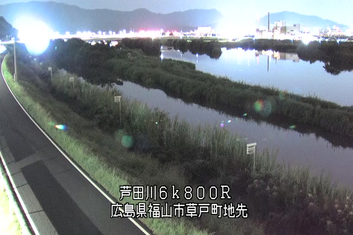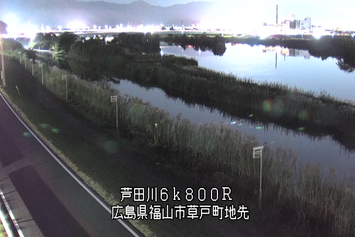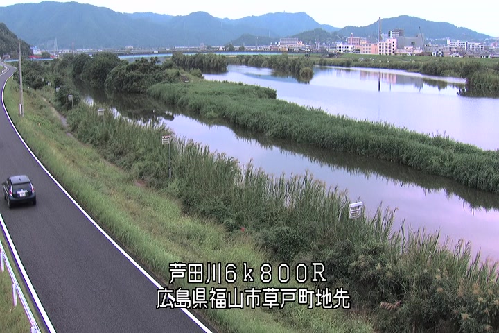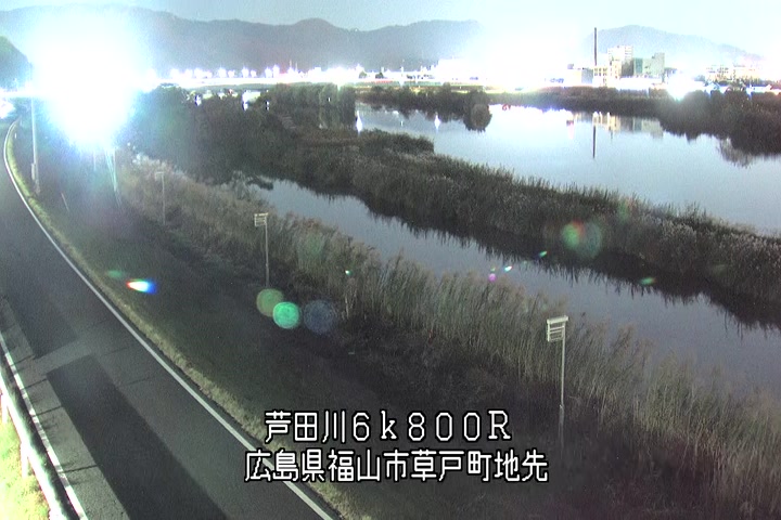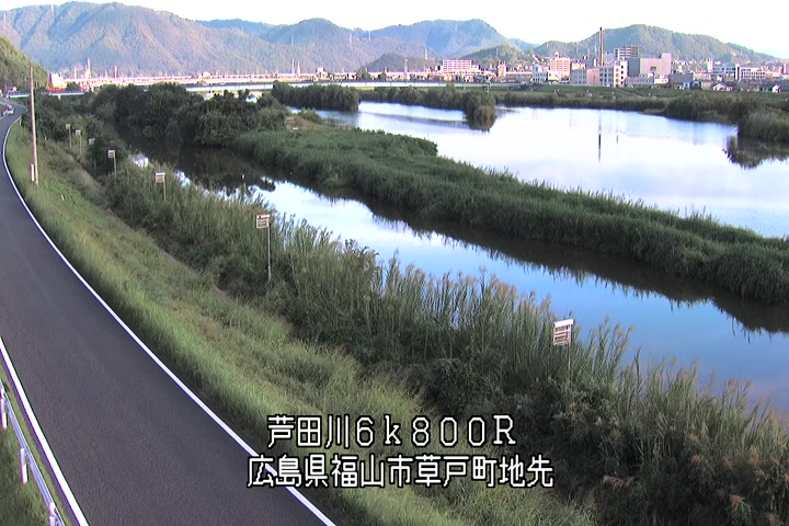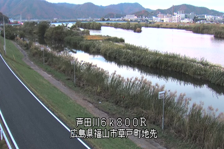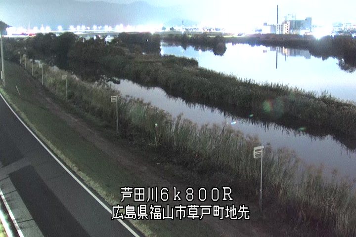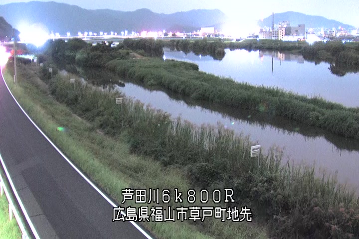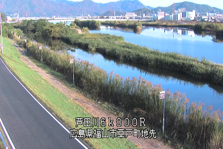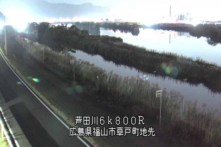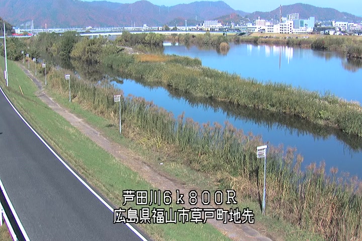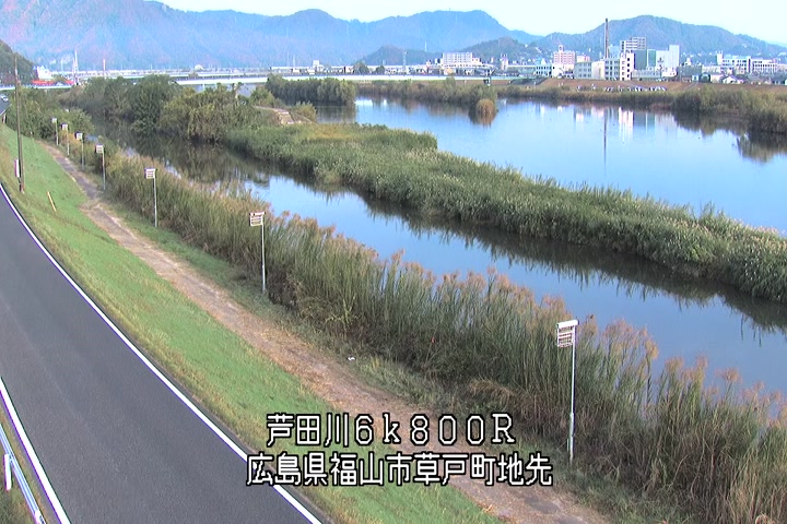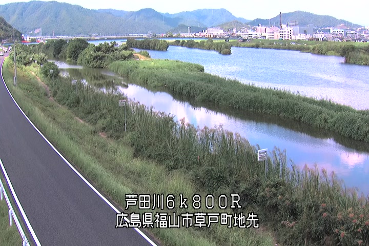 福山市草戸(上流部)の過去6日分(6時間毎)の河川映像を提供しています。