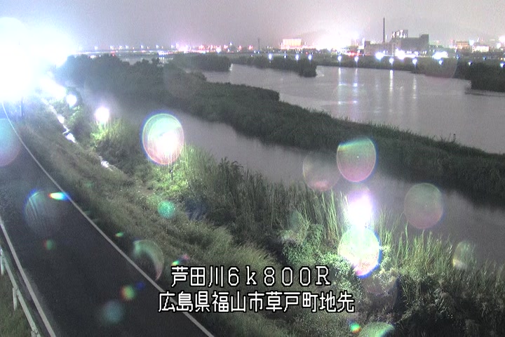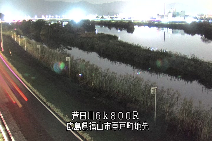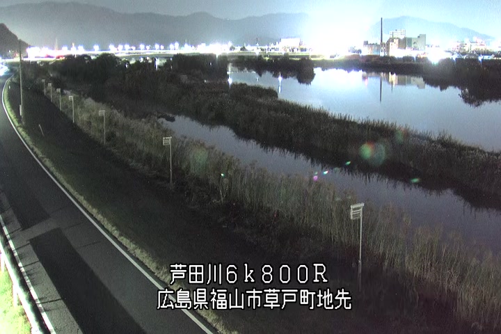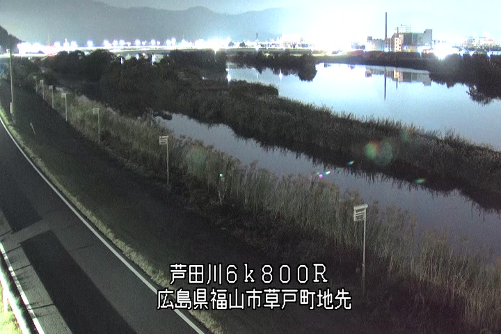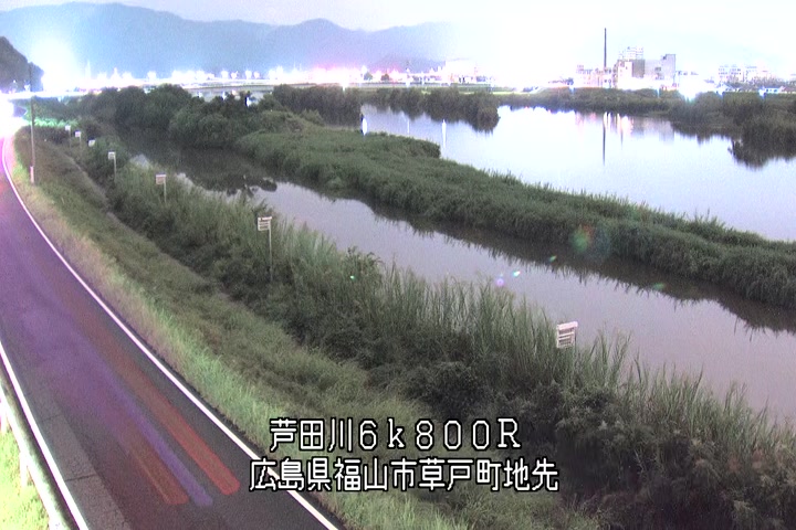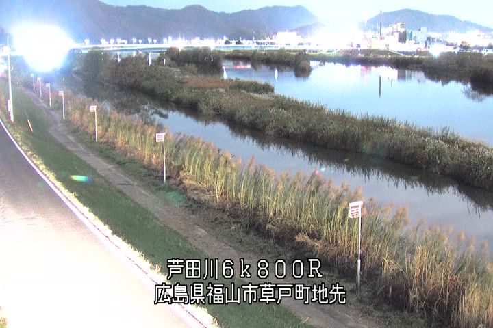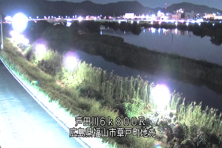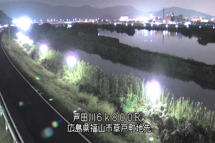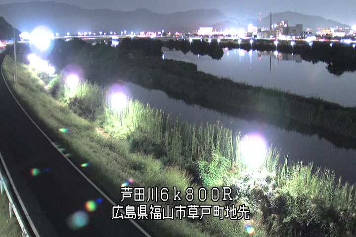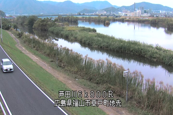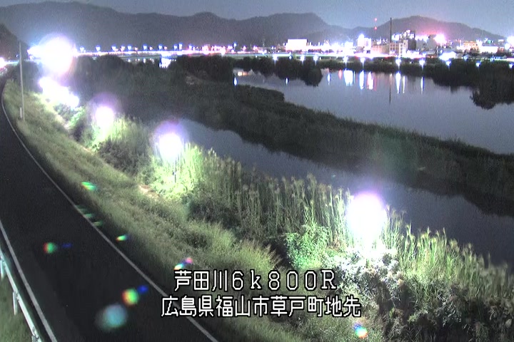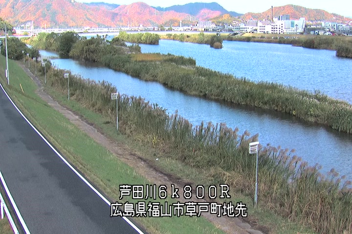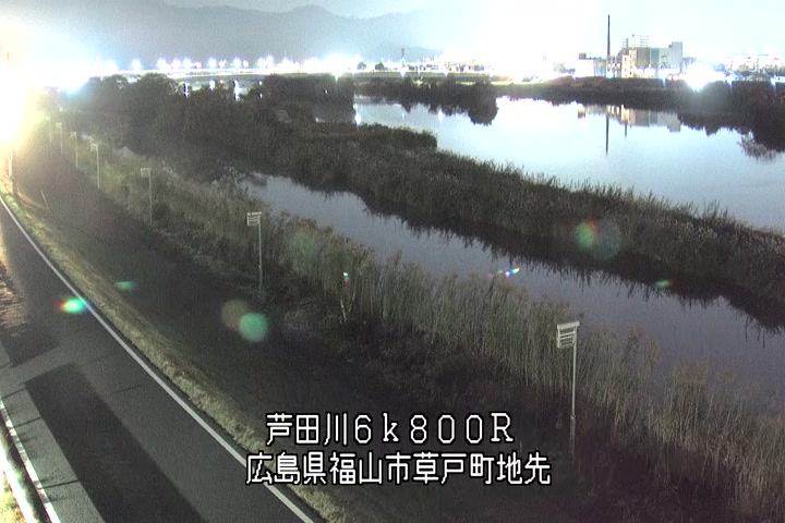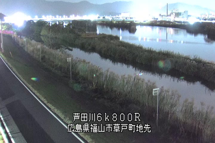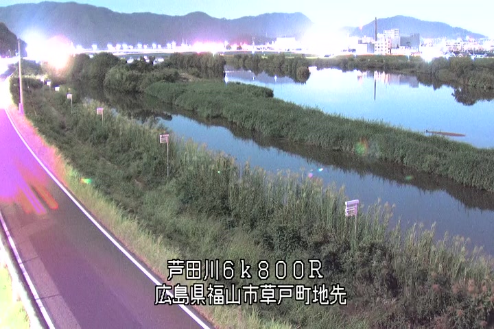 福山市草戸(上流部)の過去6日分(6時間毎)の河川映像を提供しています。