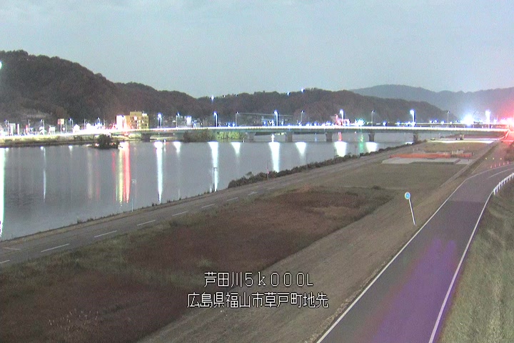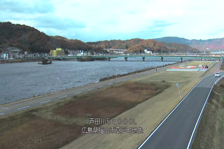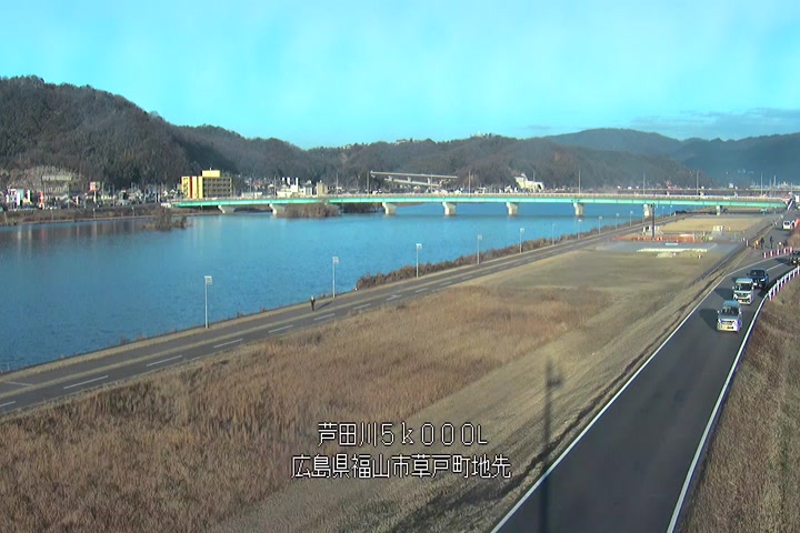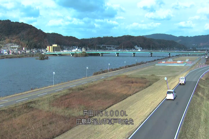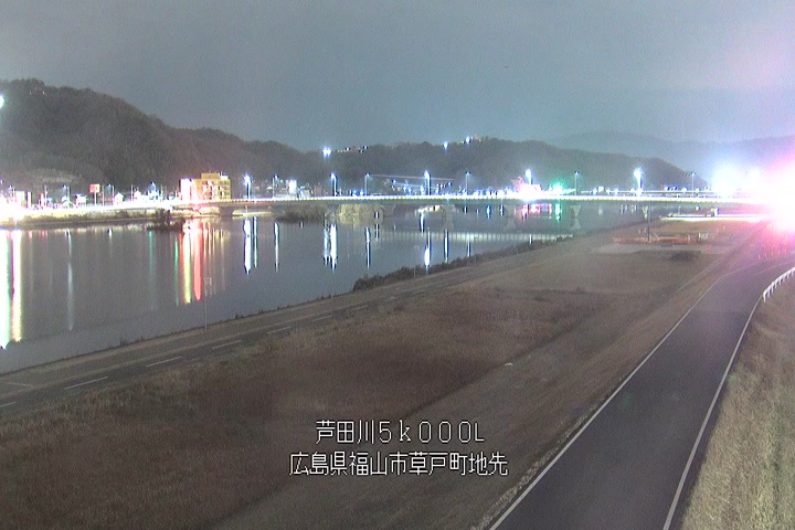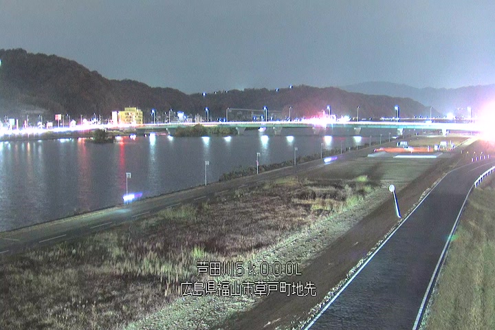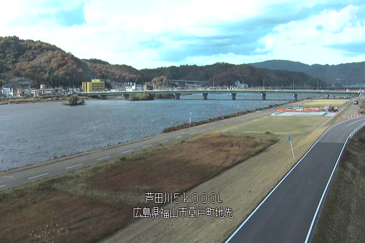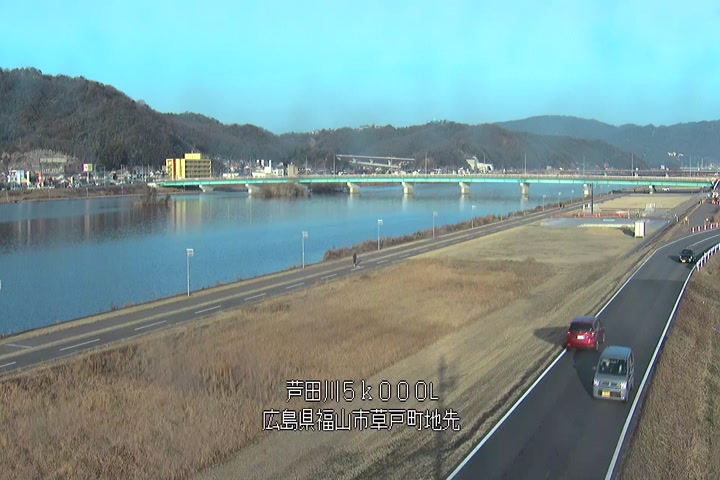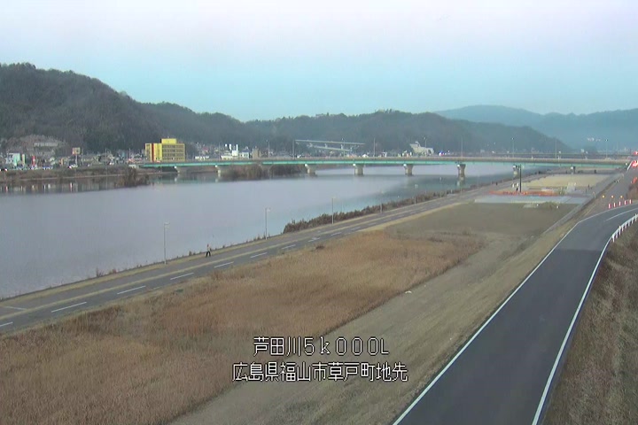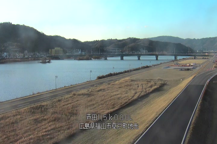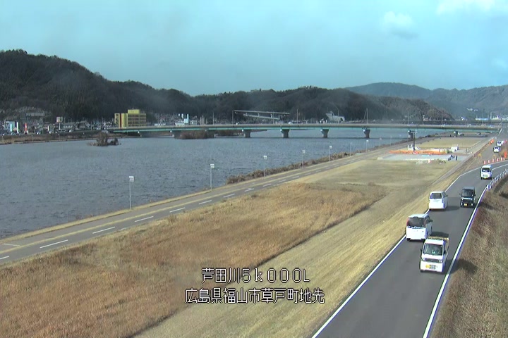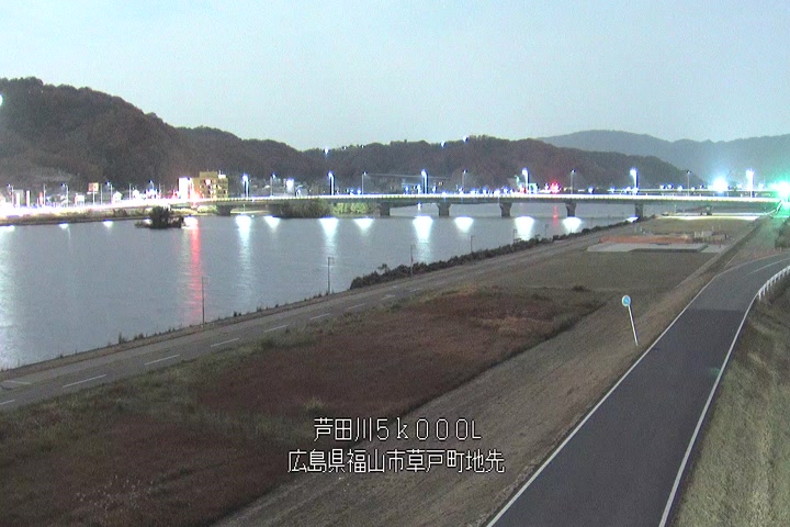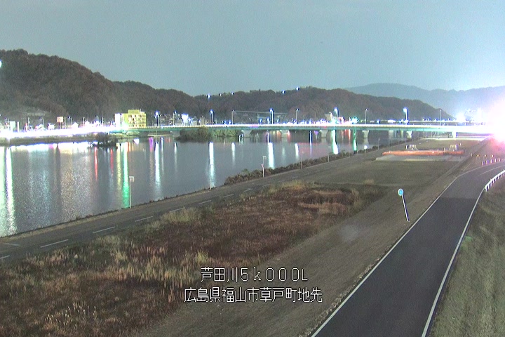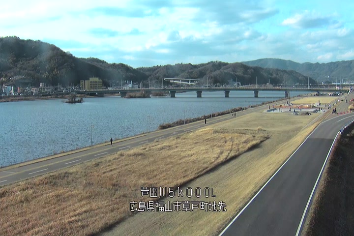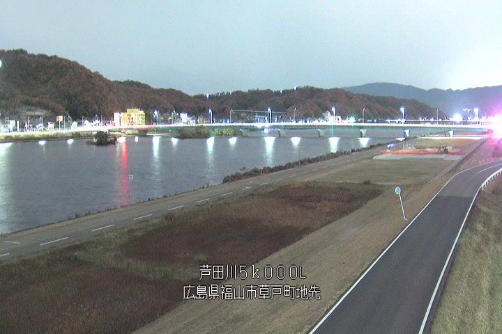 福山市草戸(下流部)の過去24時間(1時間毎)の河川映像を提供しています。