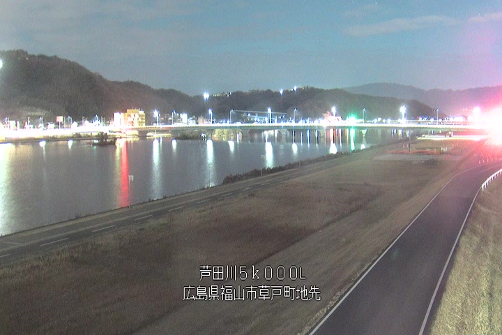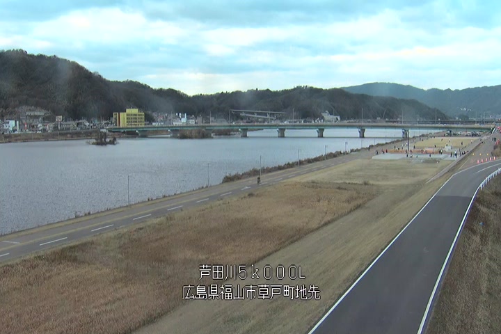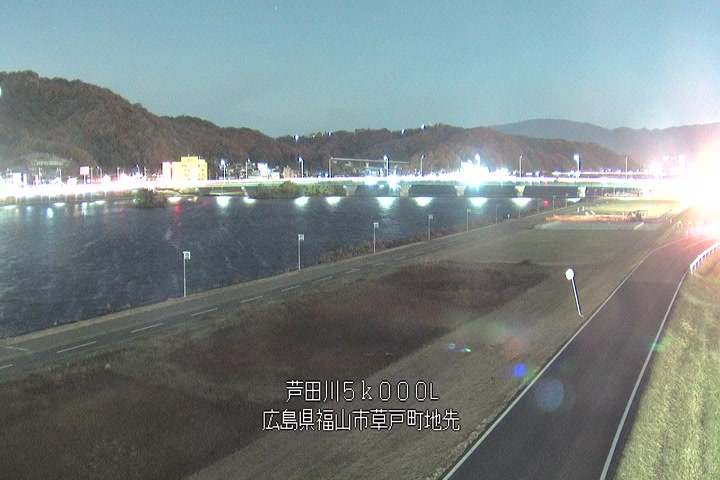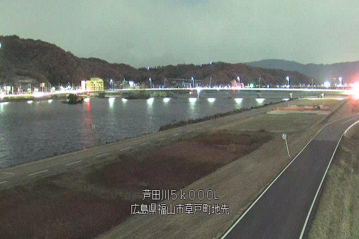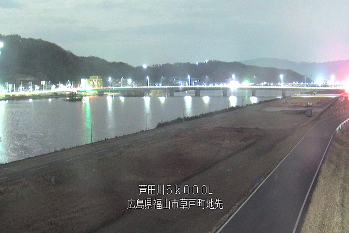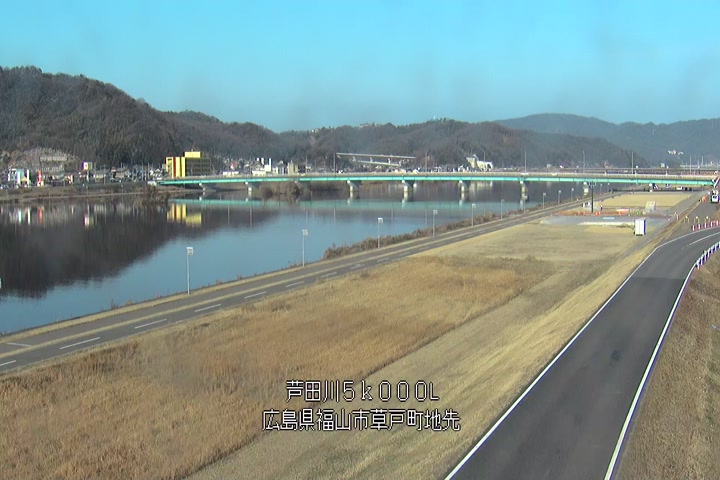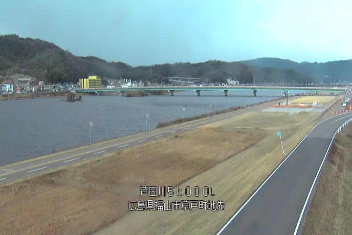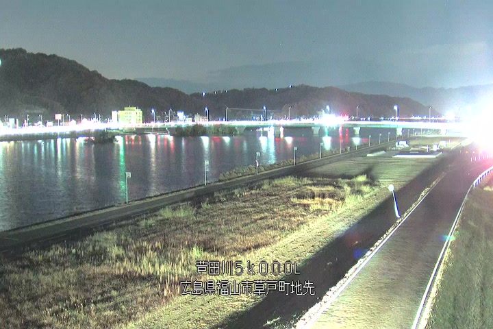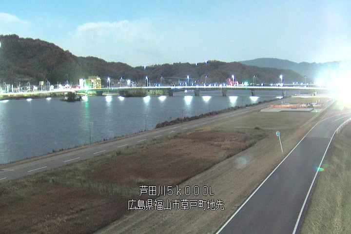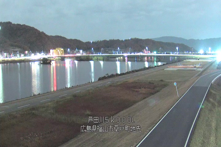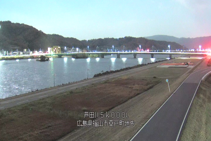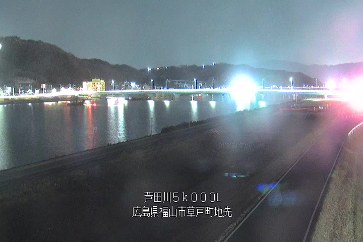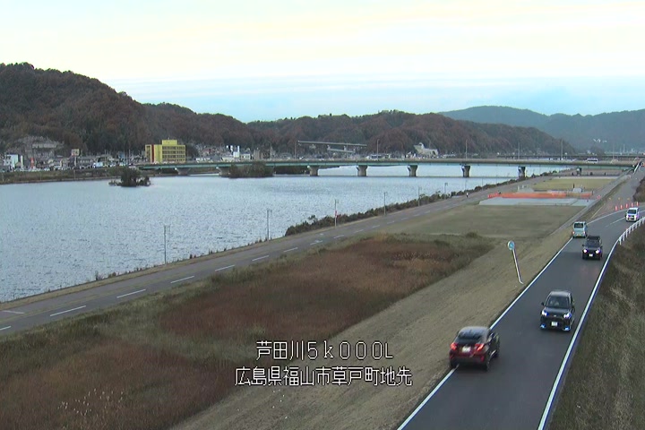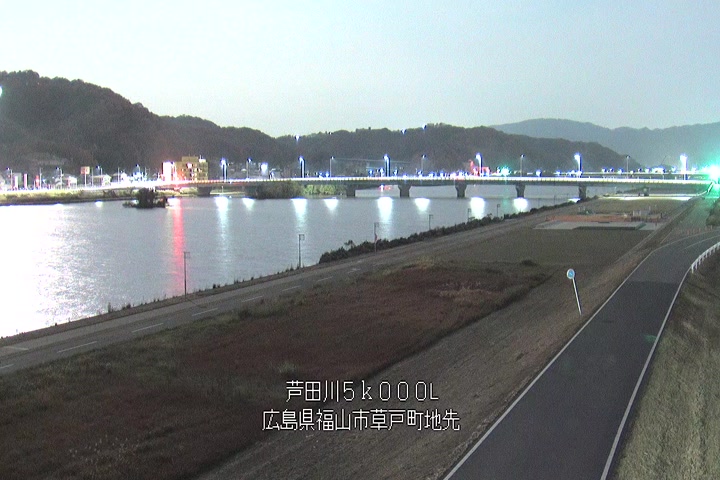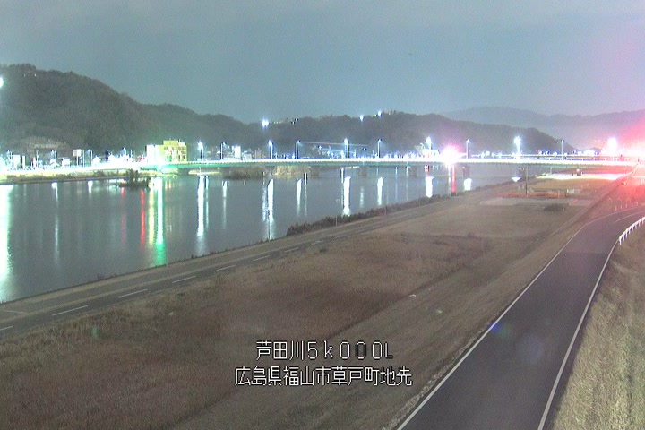 福山市草戸(下流部)の過去24時間(1時間毎)の河川映像を提供しています。