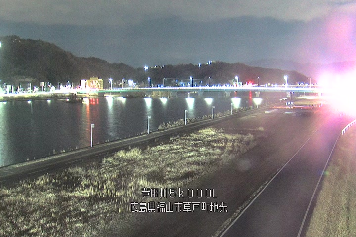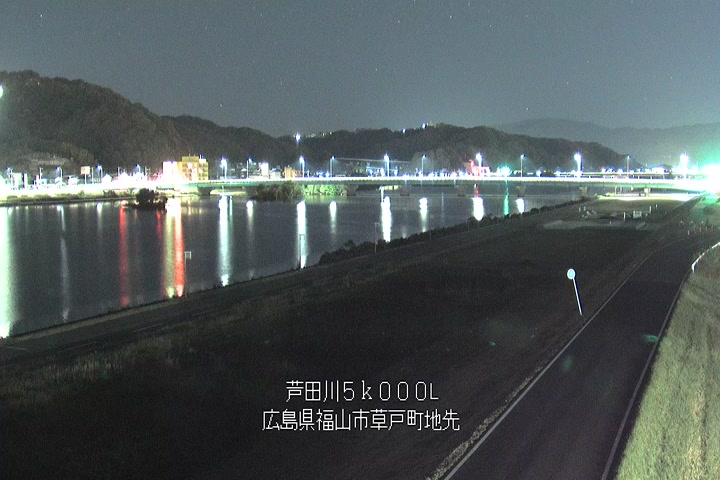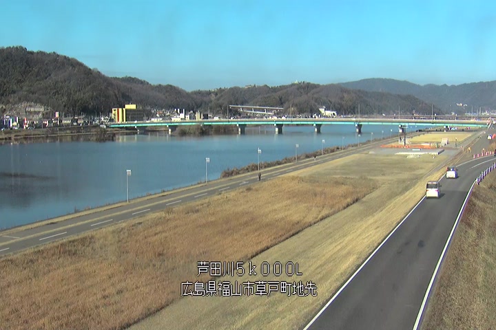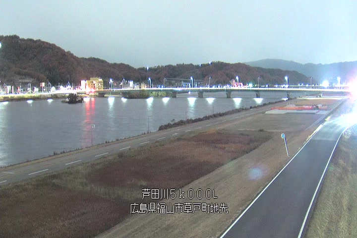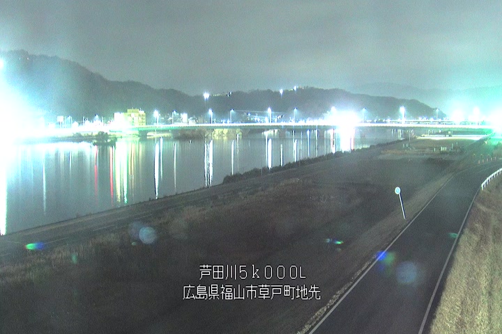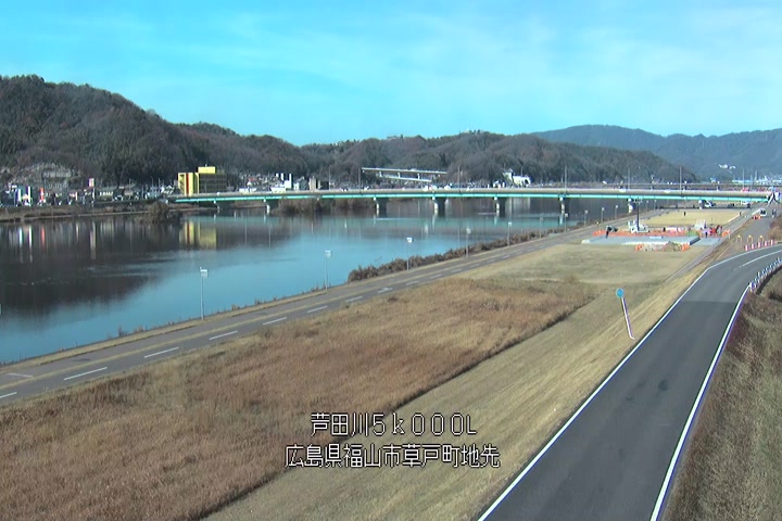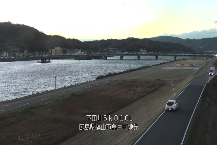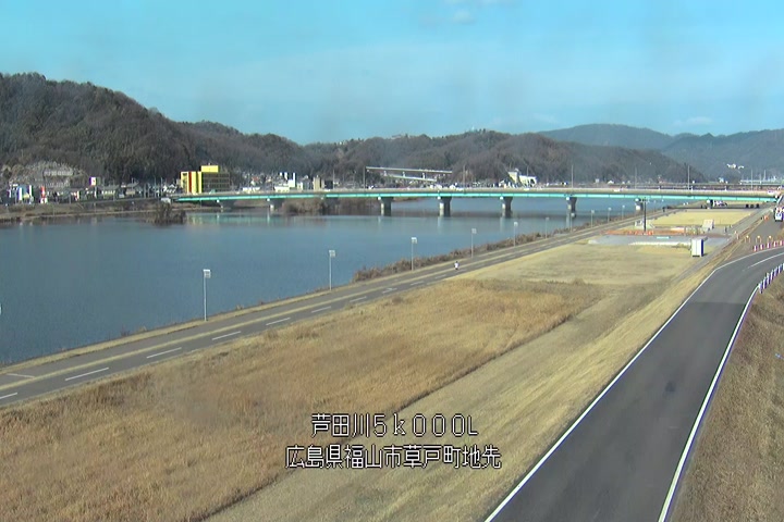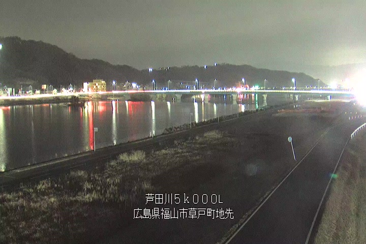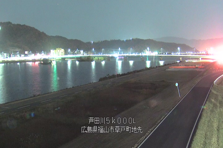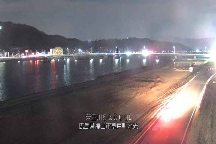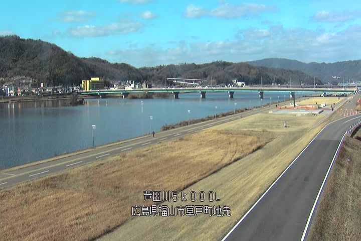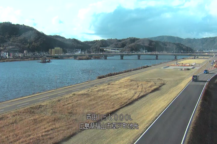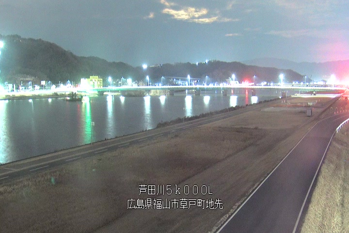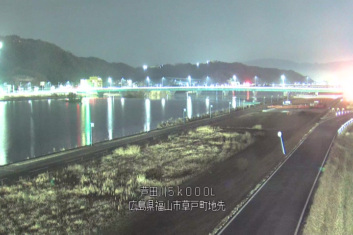 福山市草戸(下流部)の過去24時間(1時間毎)の河川映像を提供しています。