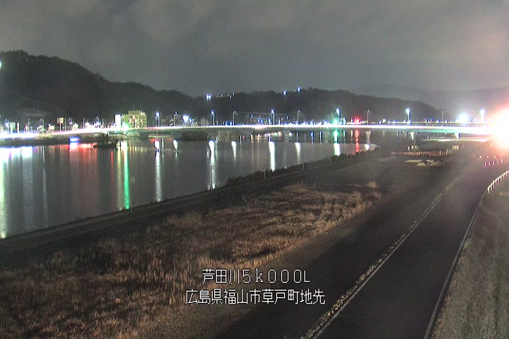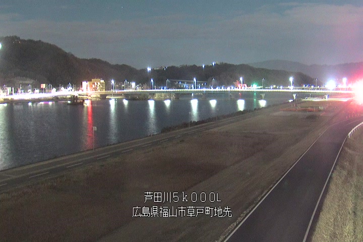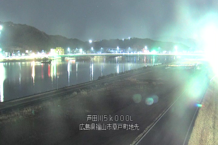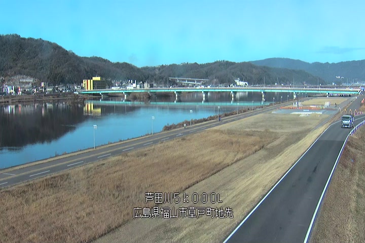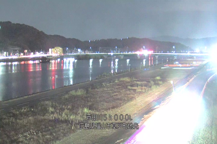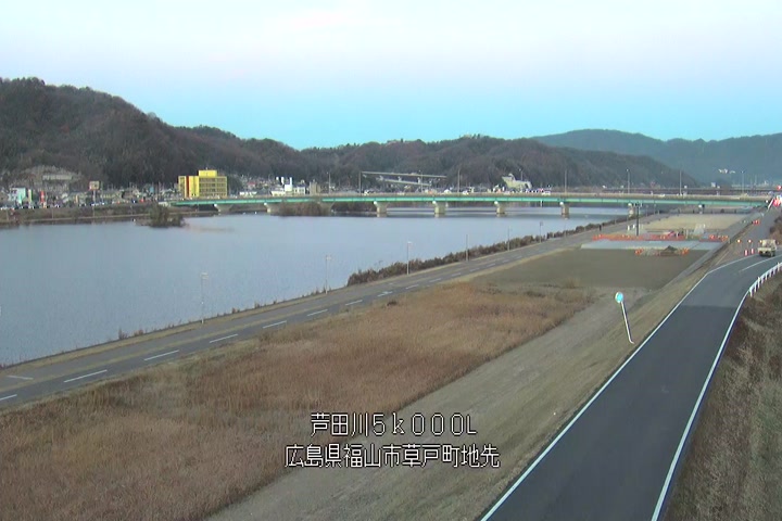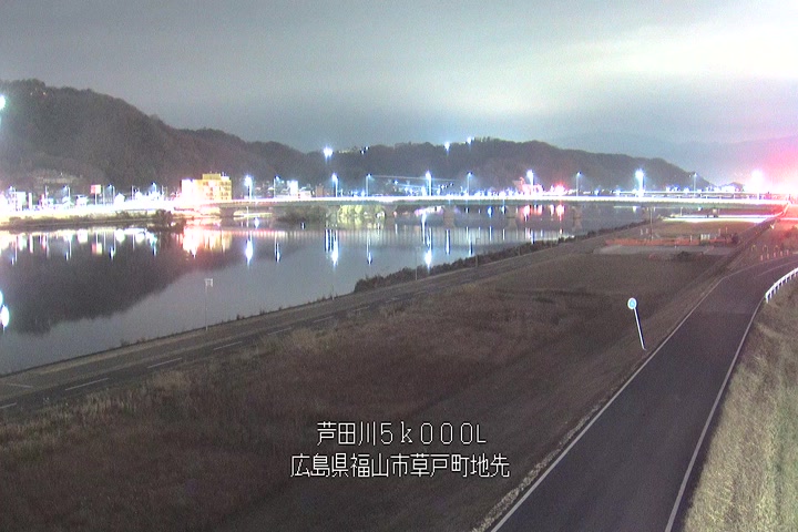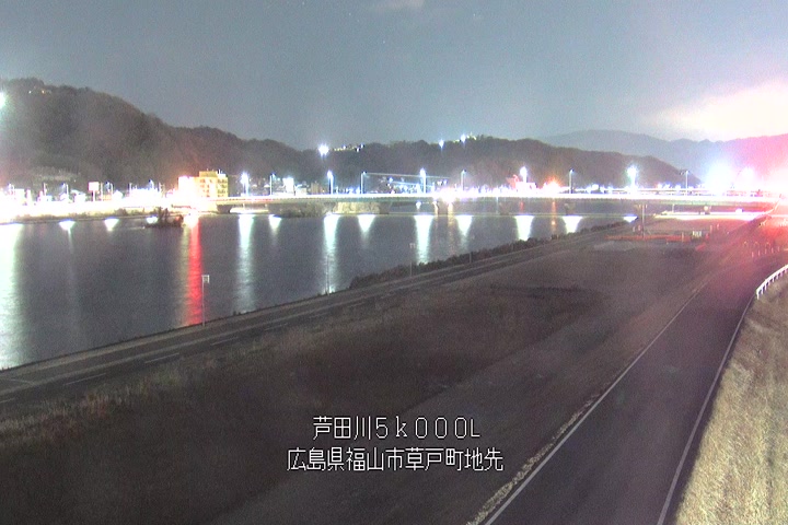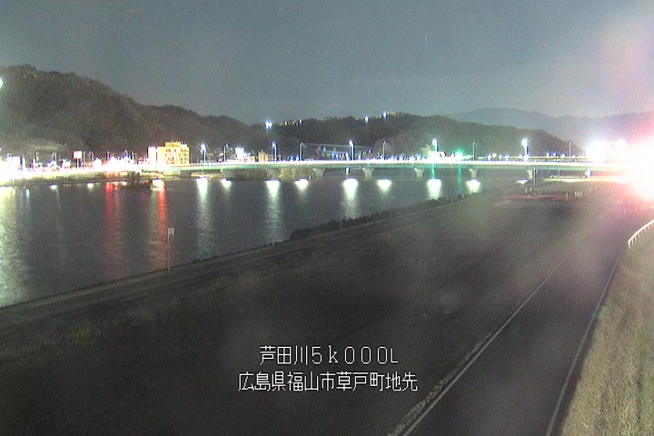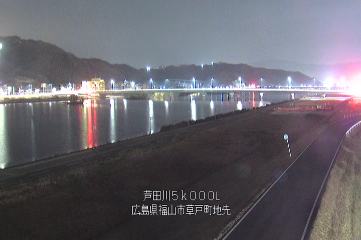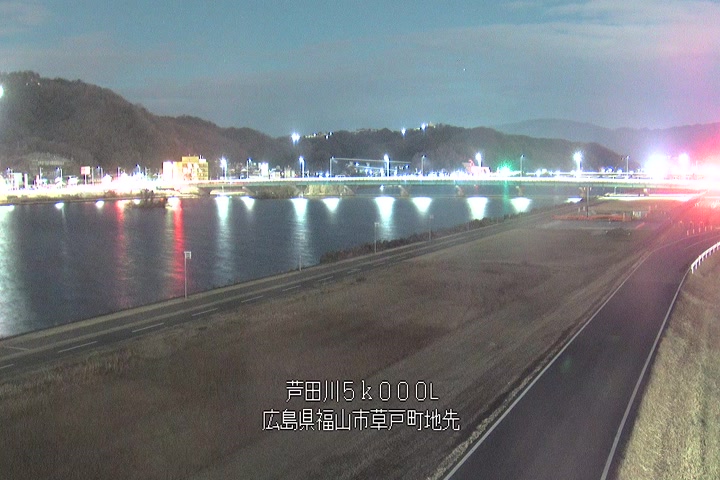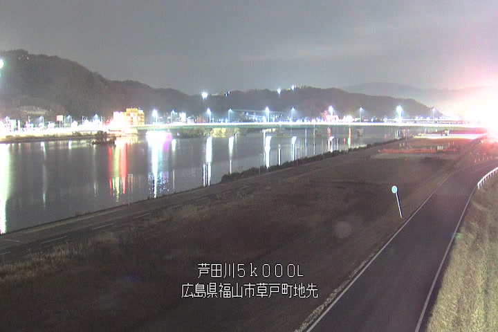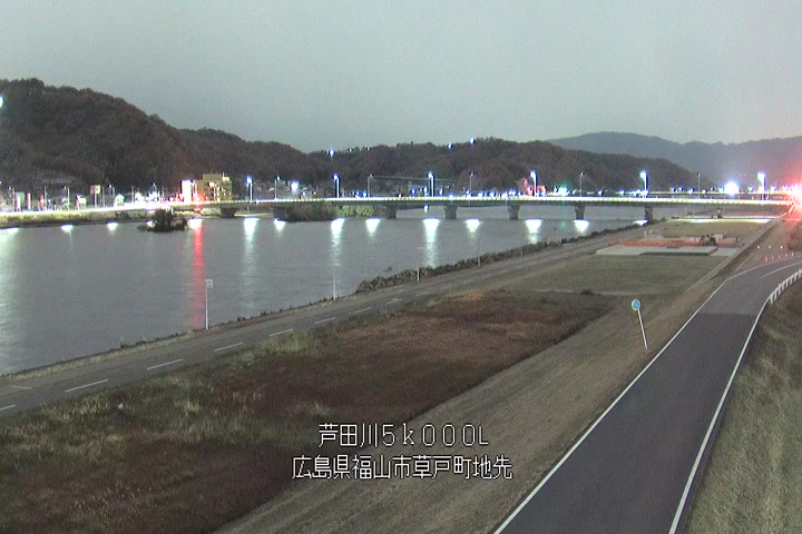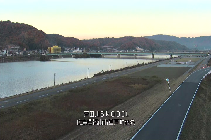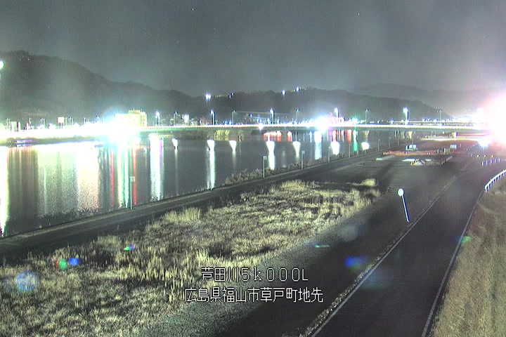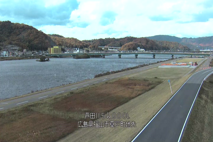 福山市草戸(下流部)の過去24時間(1時間毎)の河川映像を提供しています。