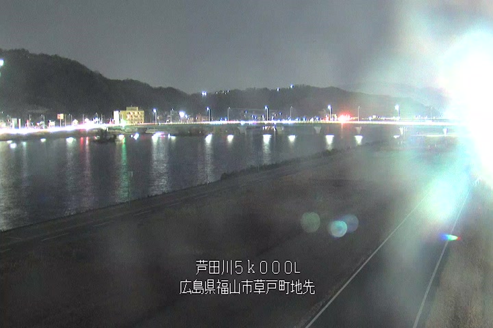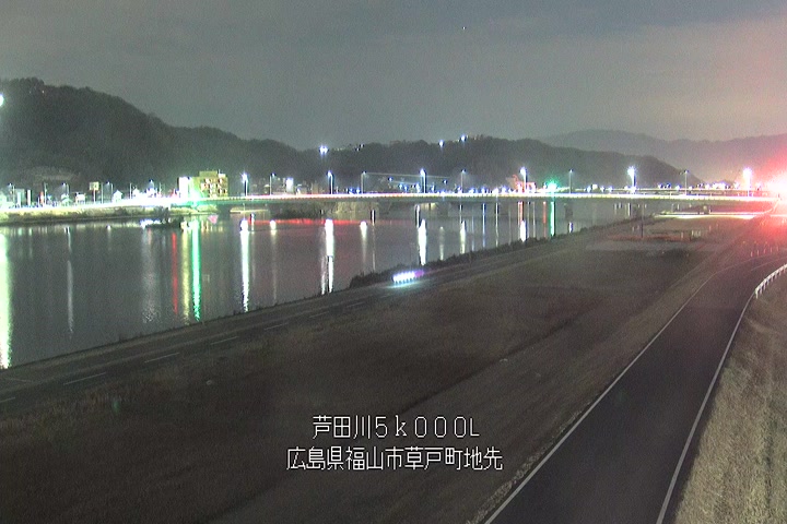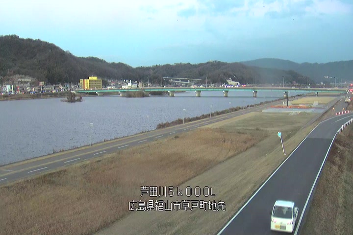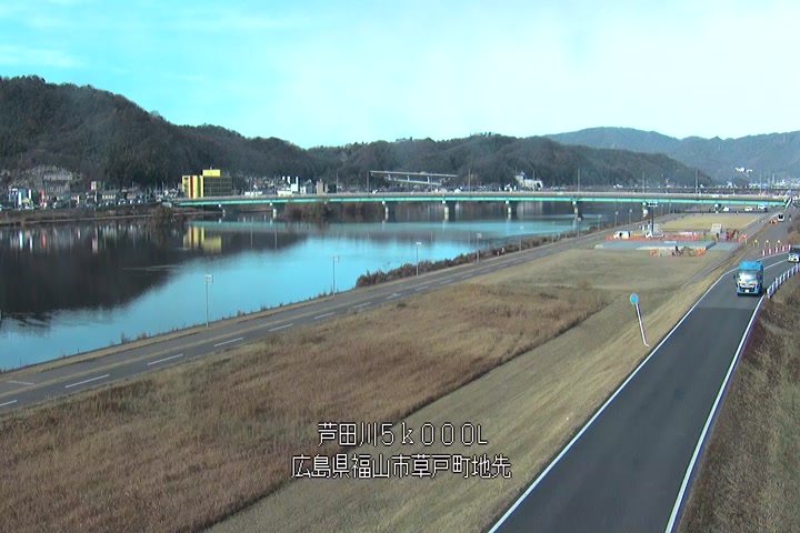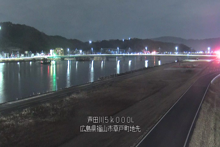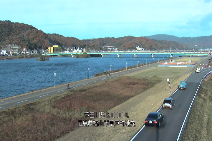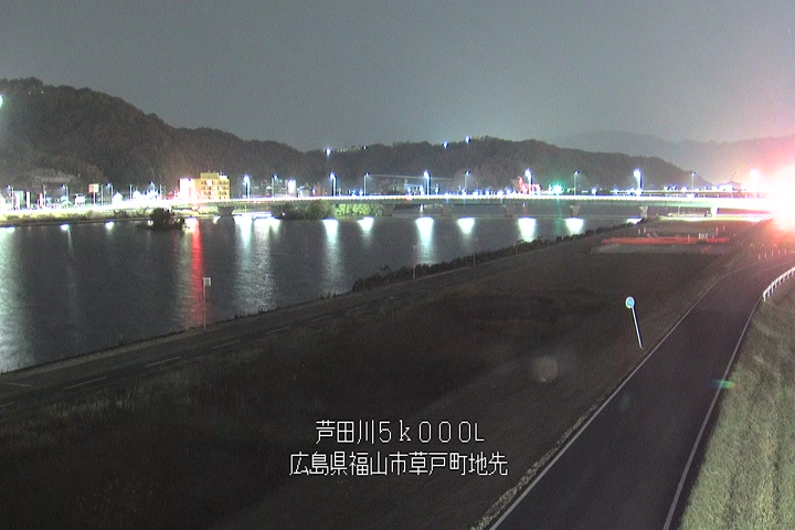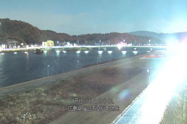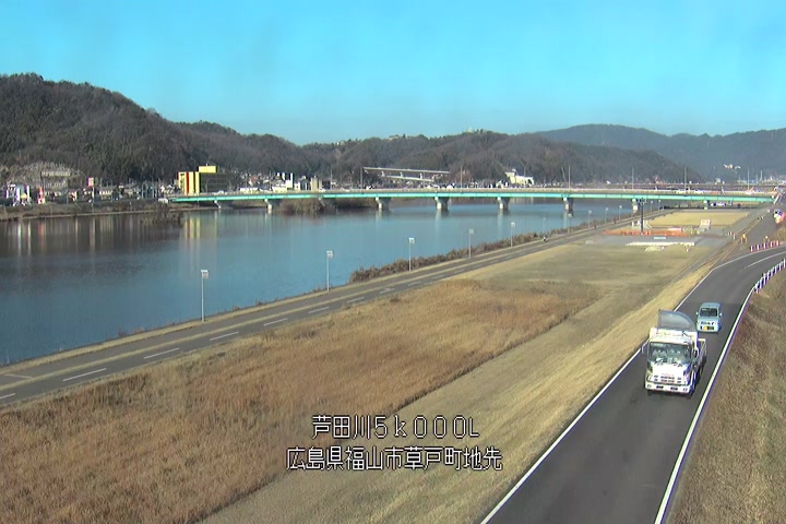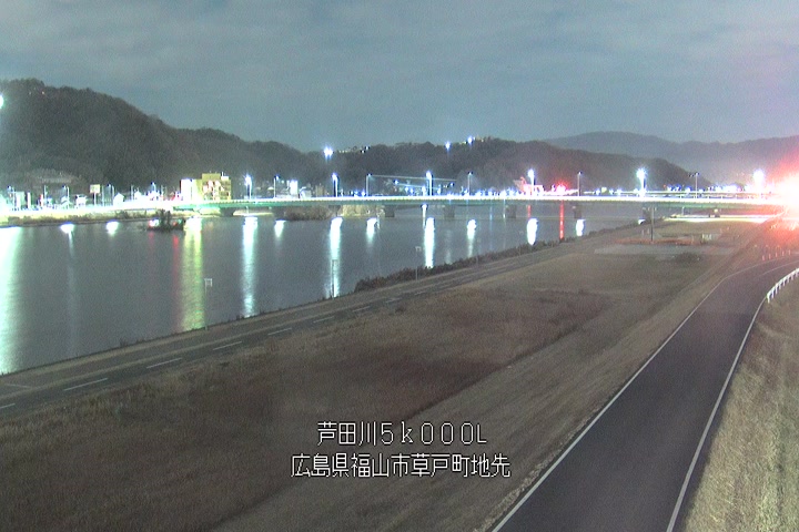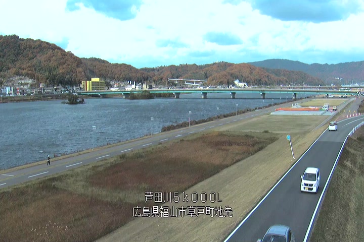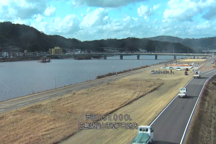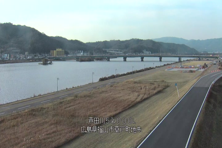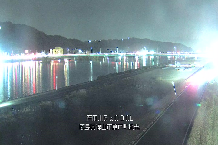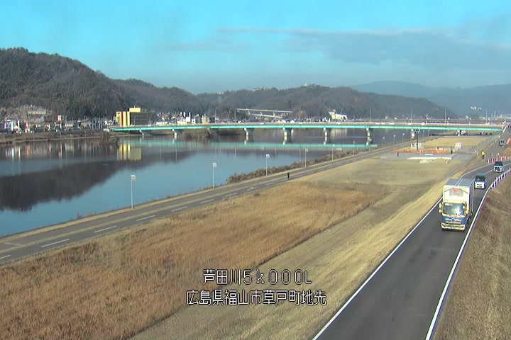 福山市草戸(下流部)の過去24時間(1時間毎)の河川映像を提供しています。