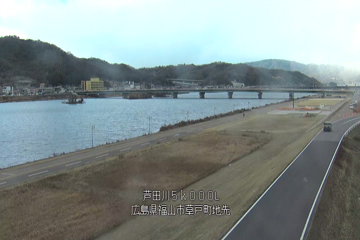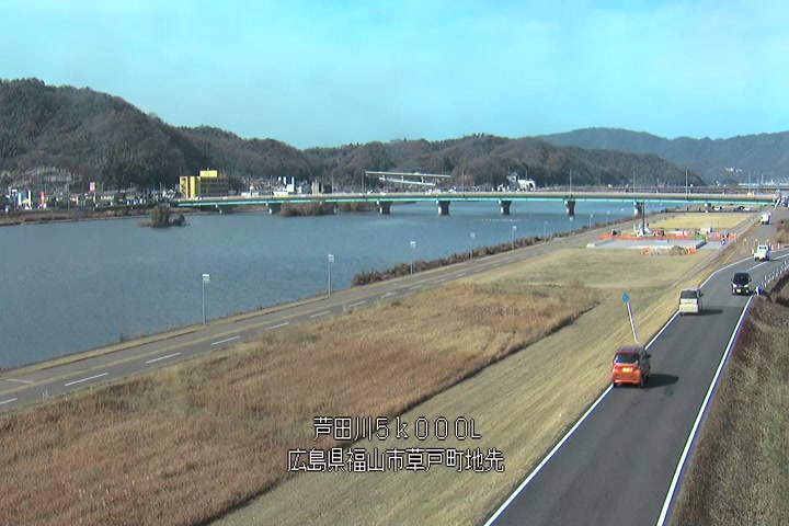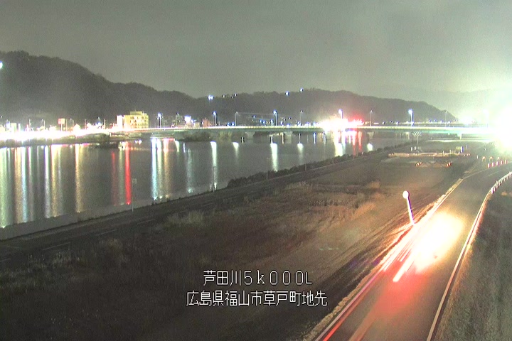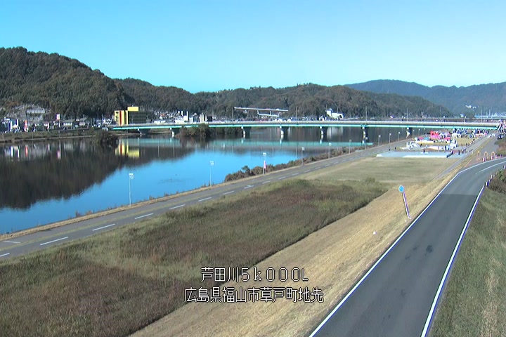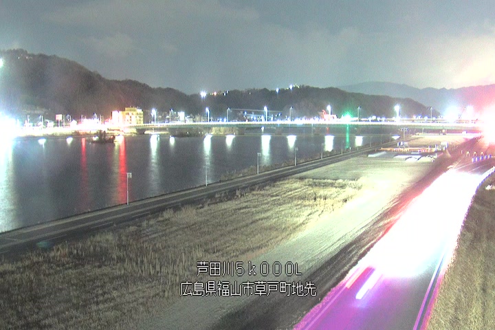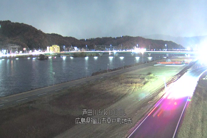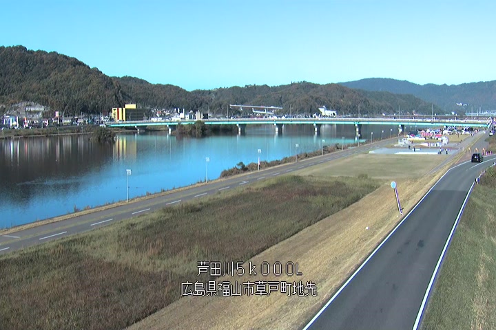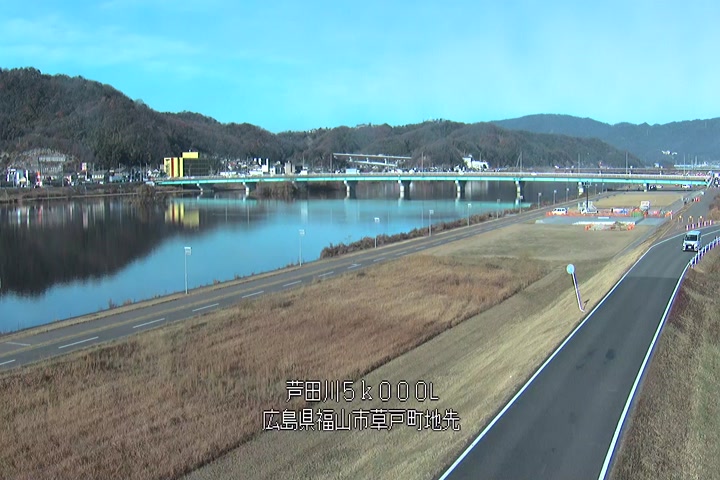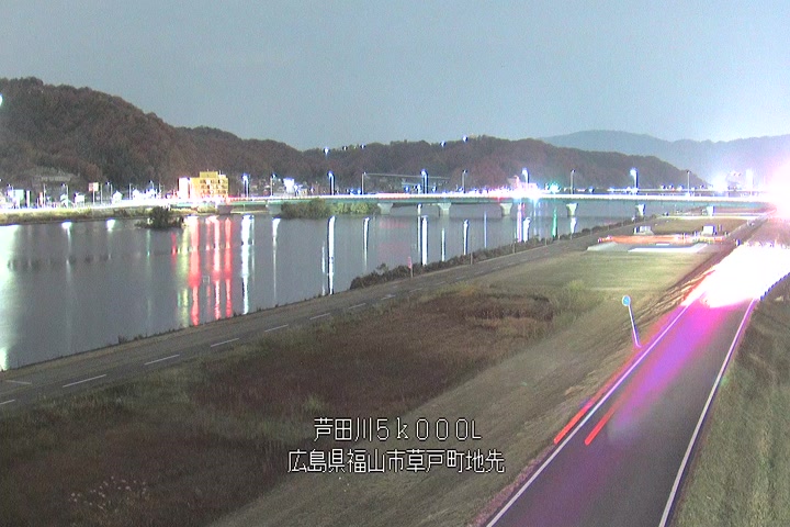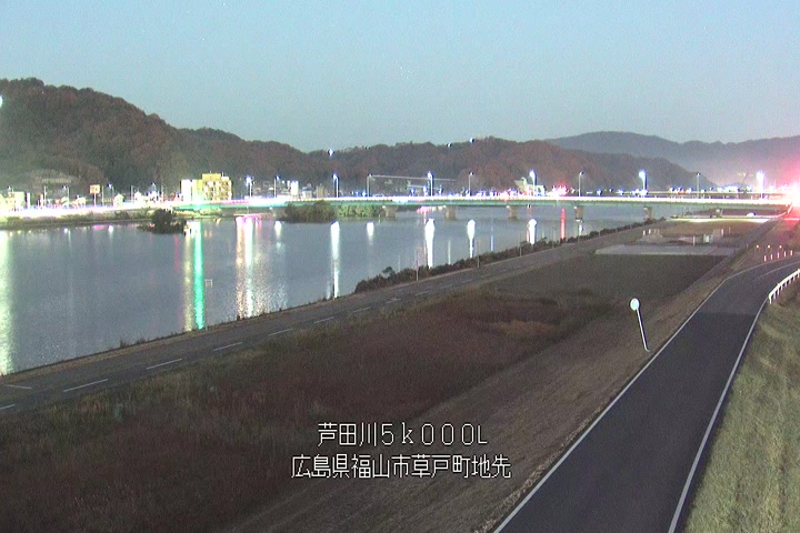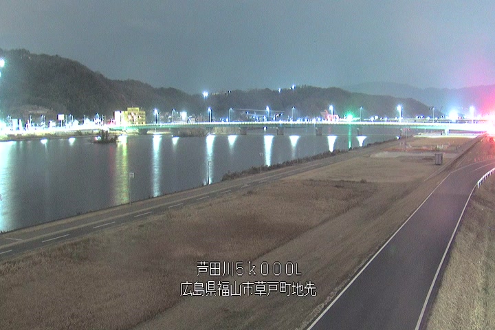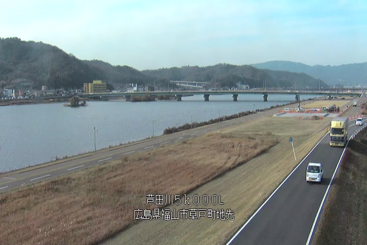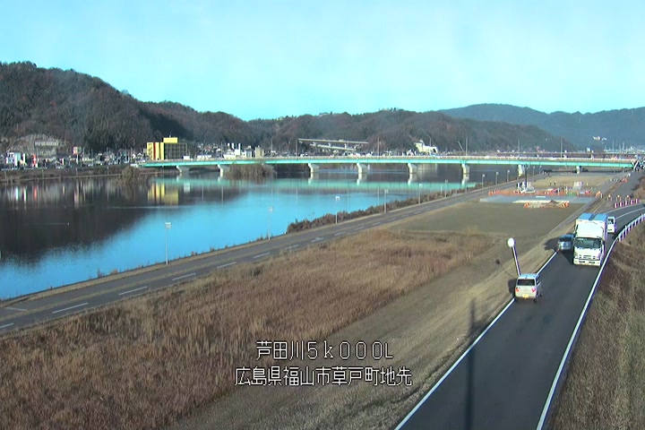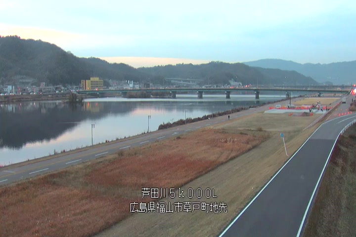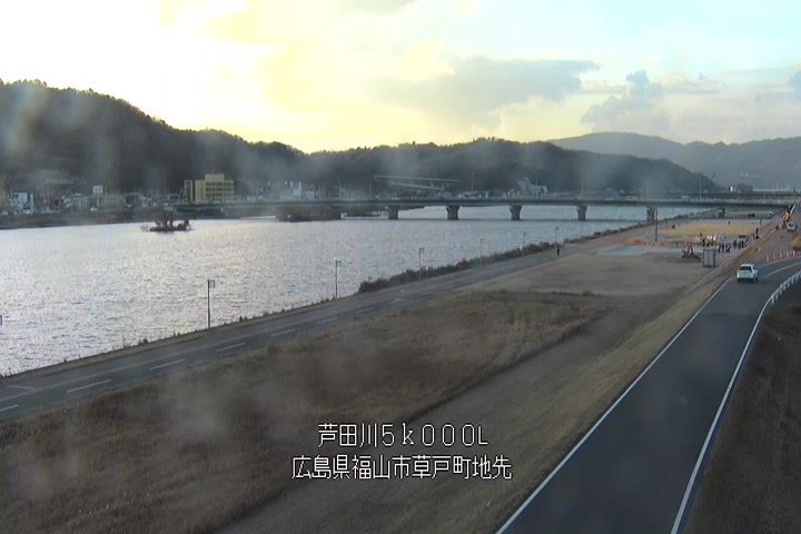 福山市草戸(下流部)の過去24時間(1時間毎)の河川映像を提供しています。