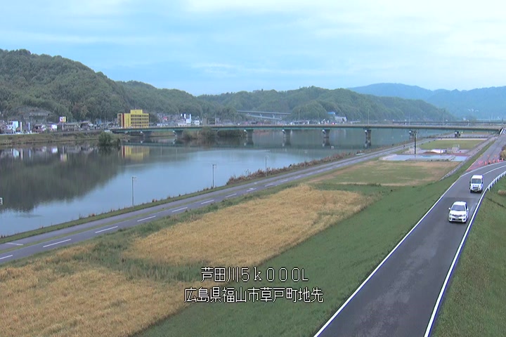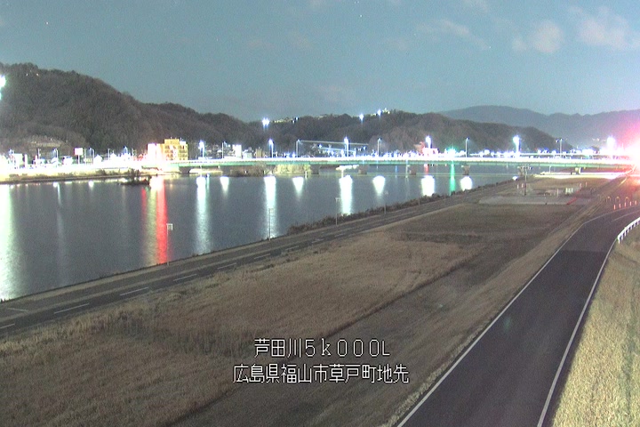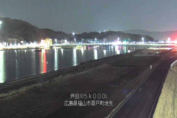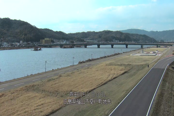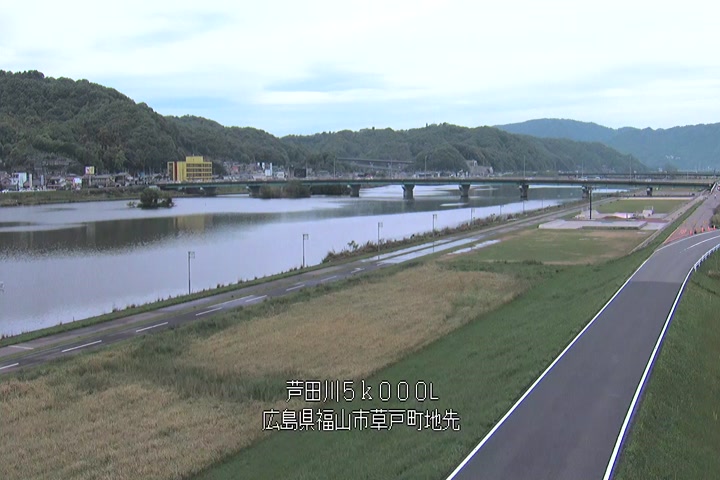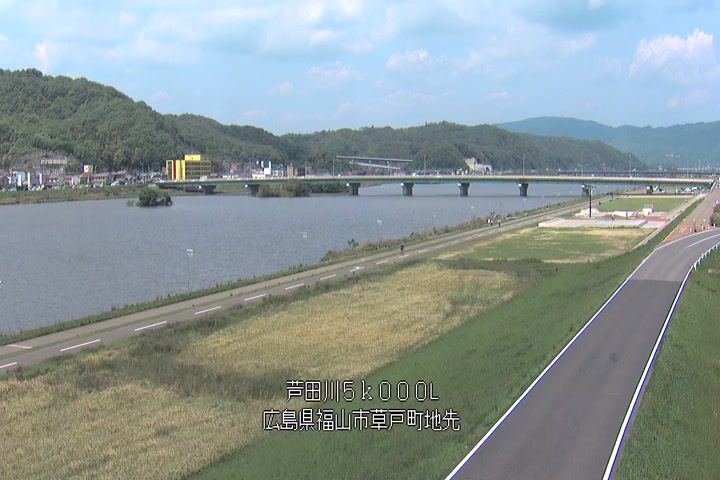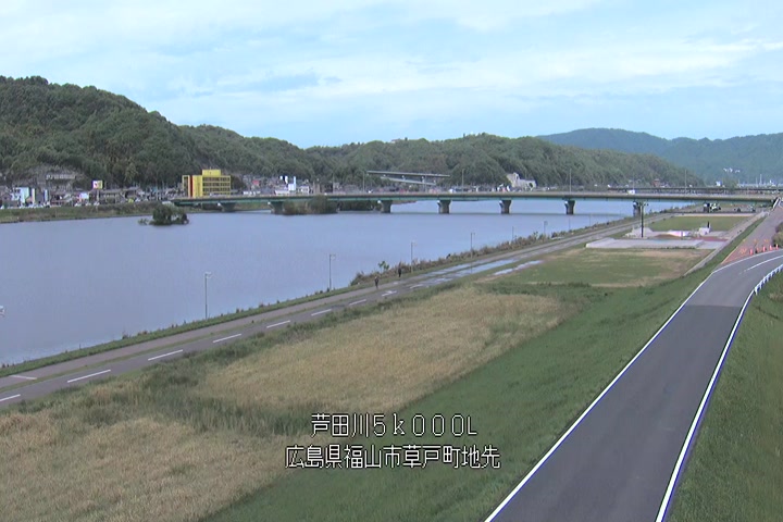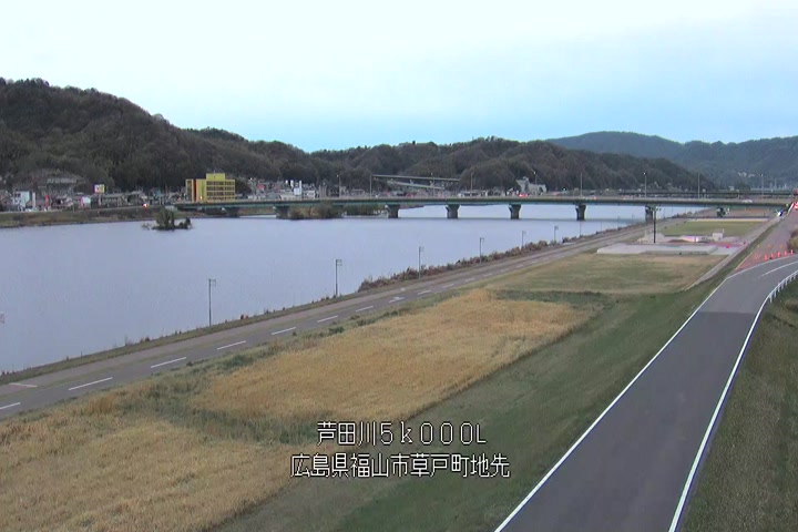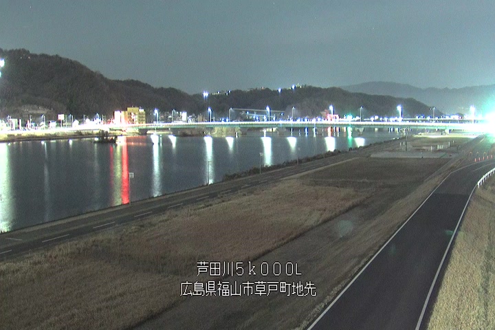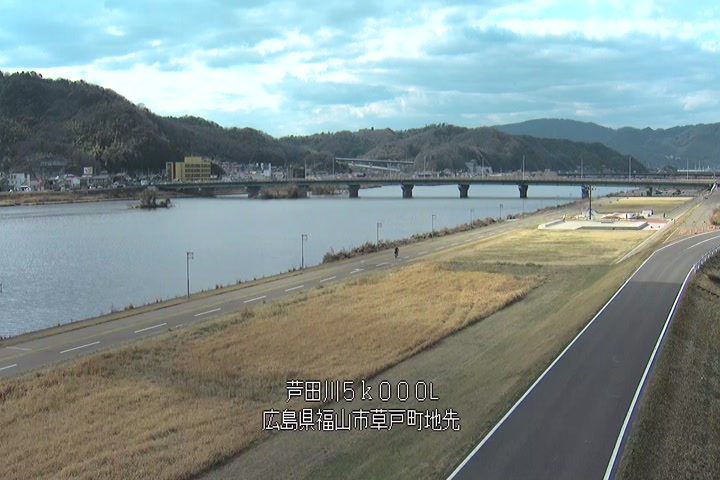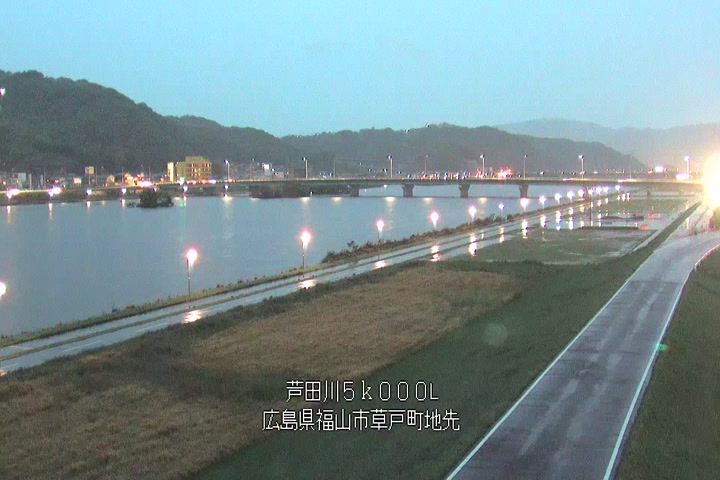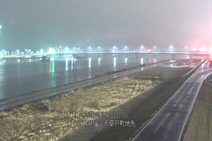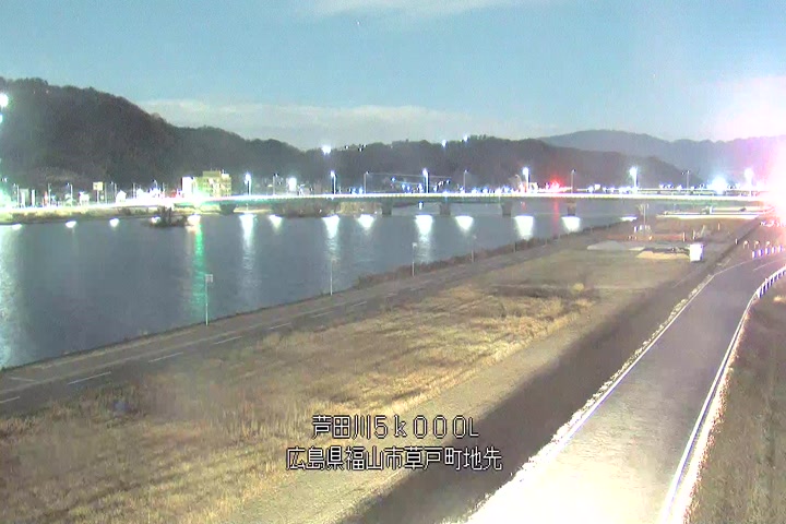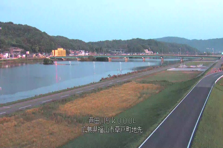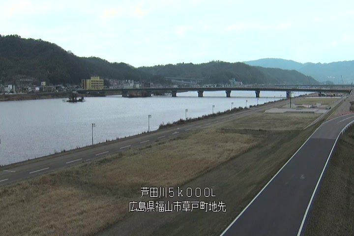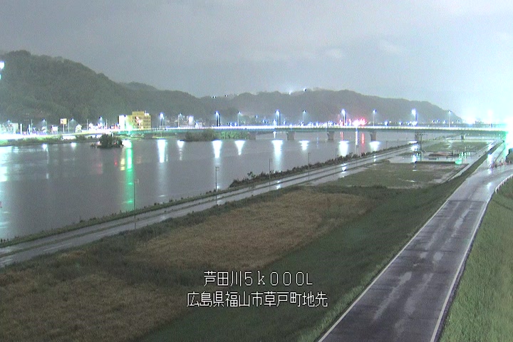 福山市草戸(下流部)の過去6日分(6時間毎)の河川映像を提供しています。