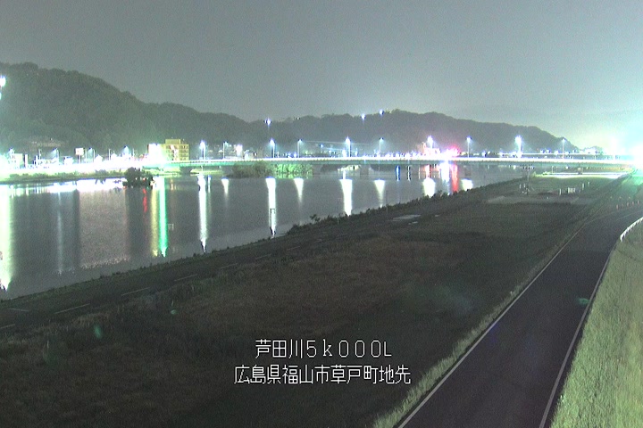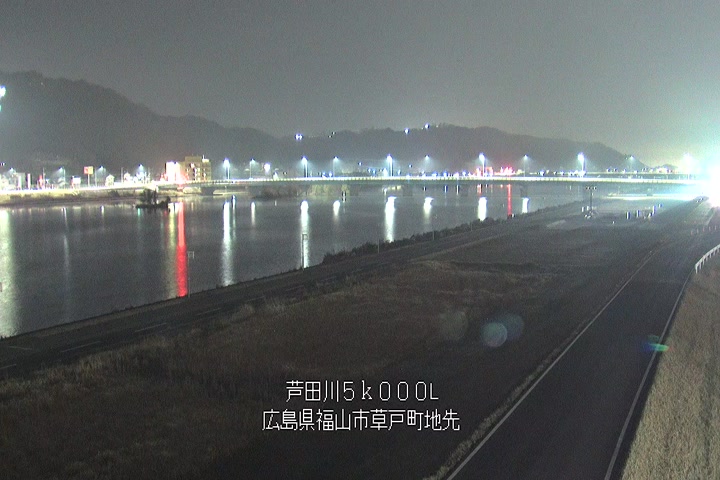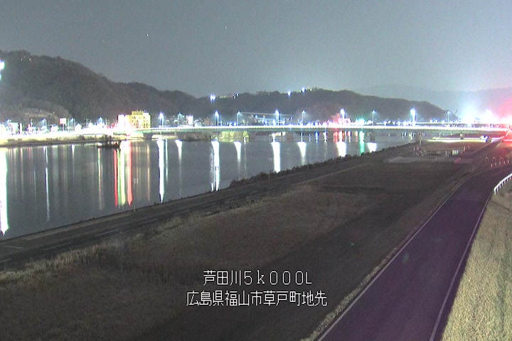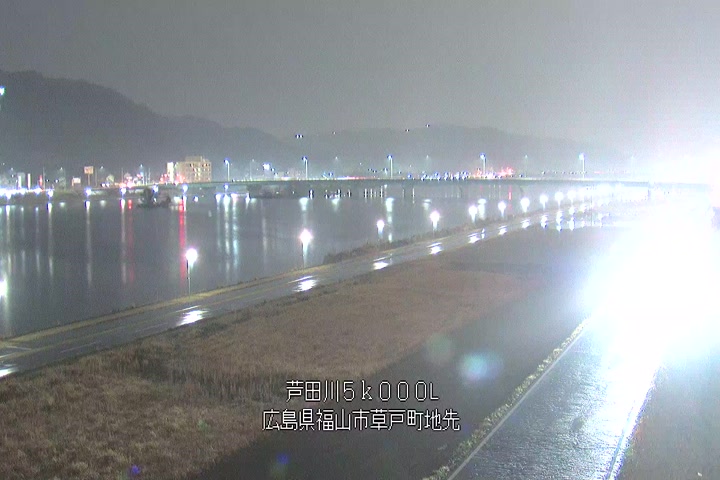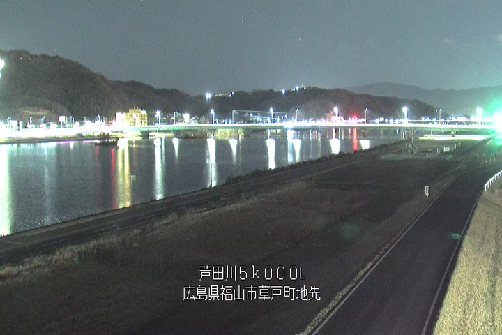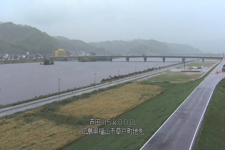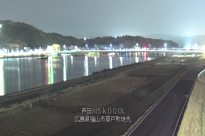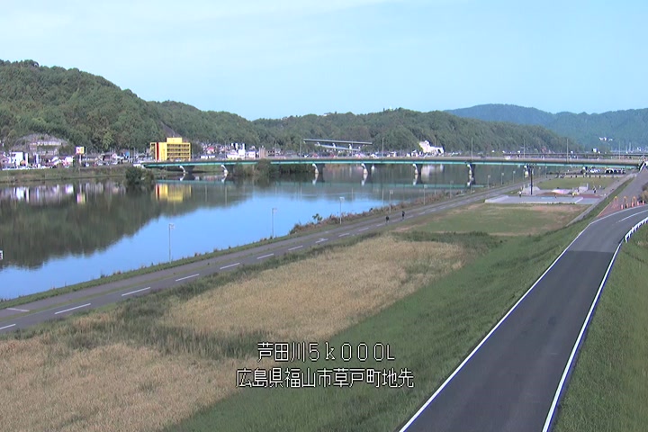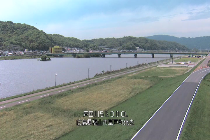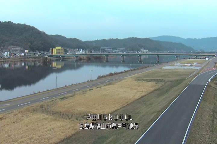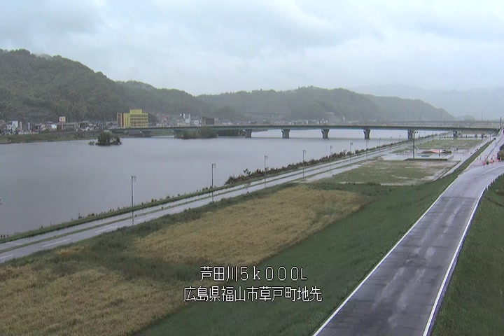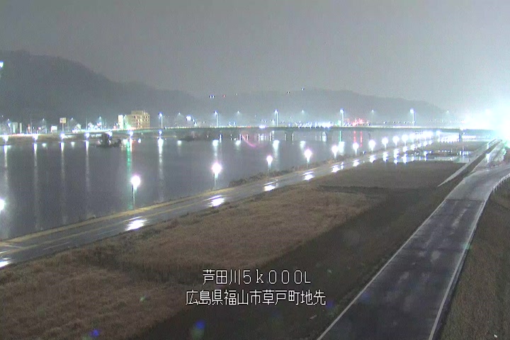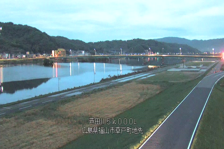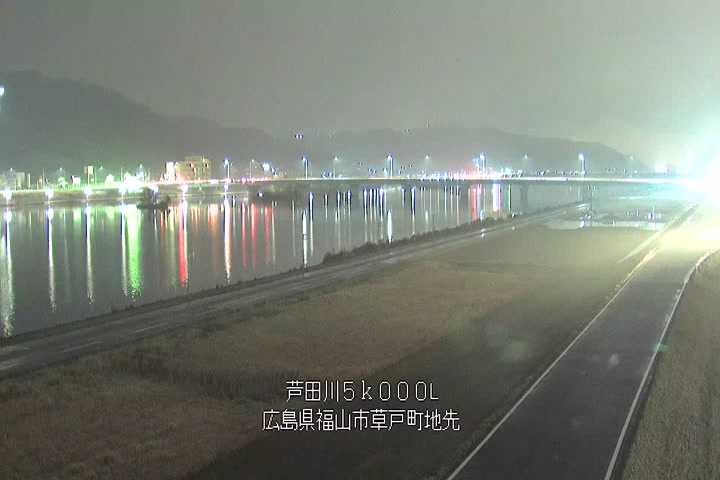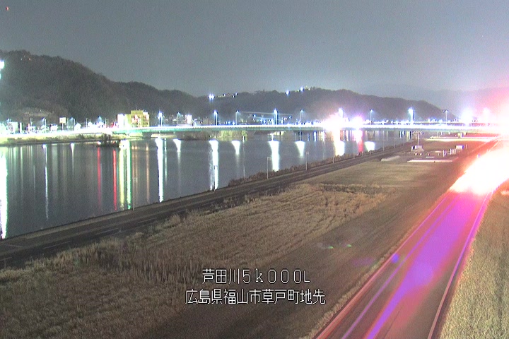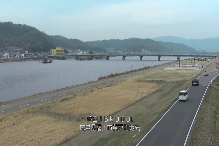 福山市草戸(下流部)の過去6日分(6時間毎)の河川映像を提供しています。