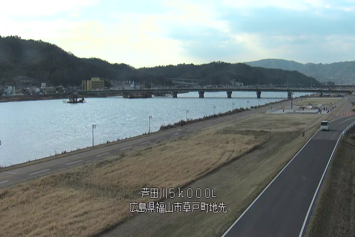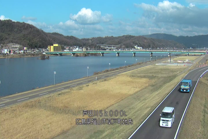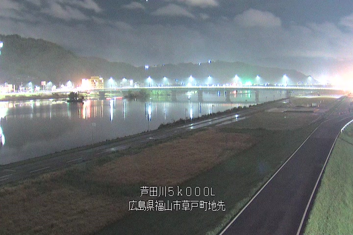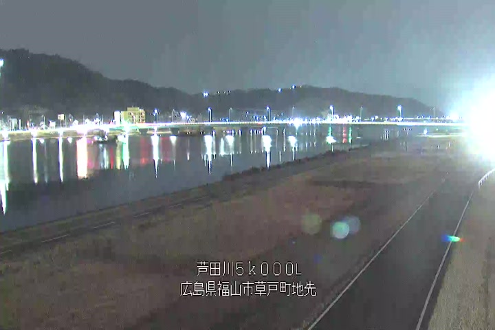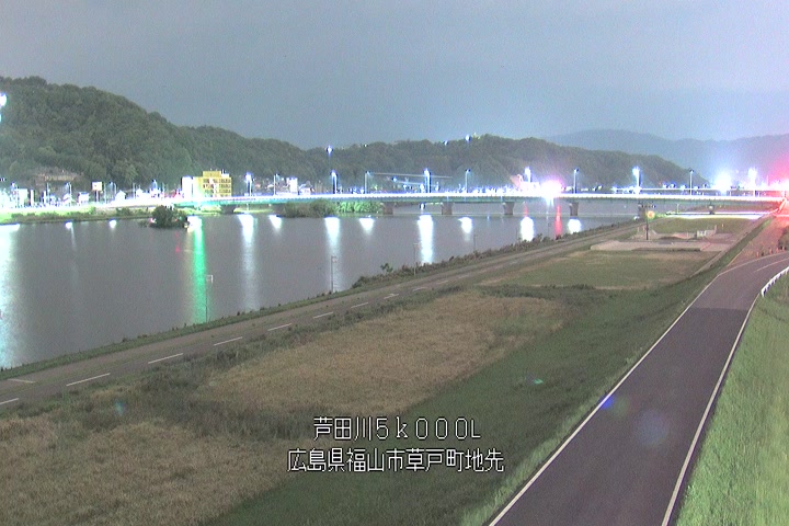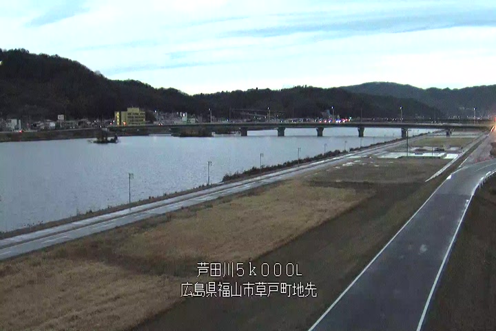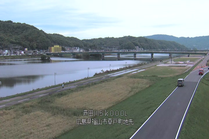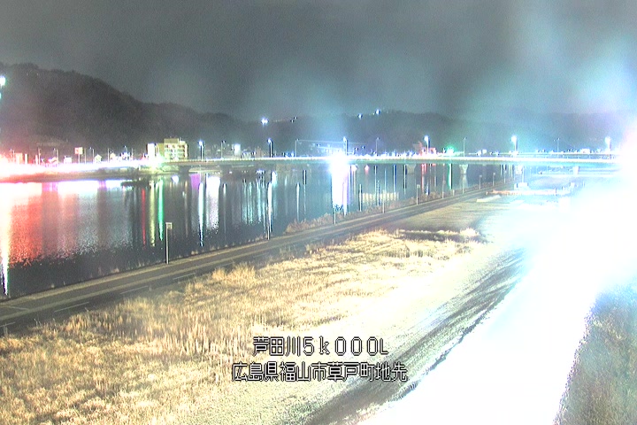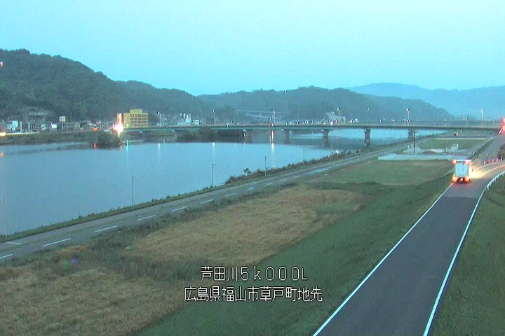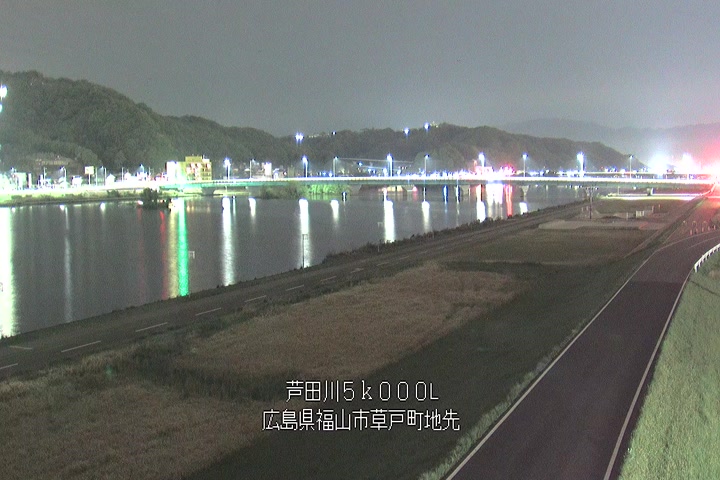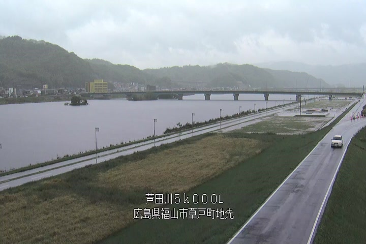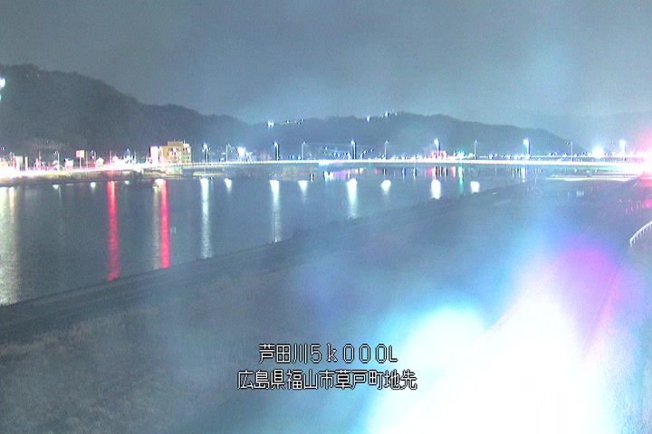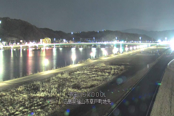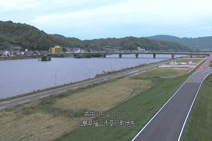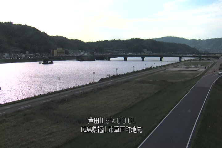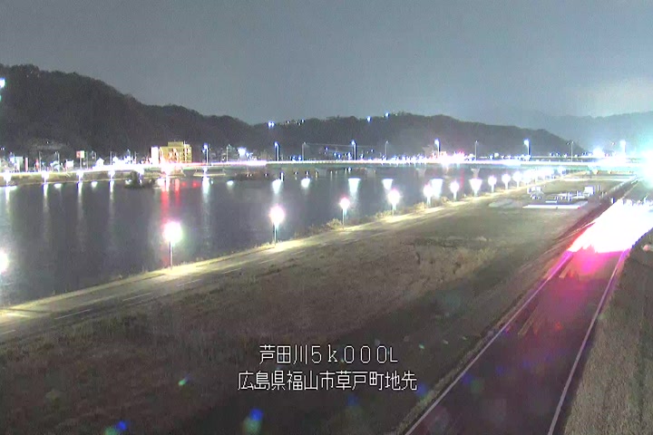 福山市草戸(下流部)の過去6日分(6時間毎)の河川映像を提供しています。