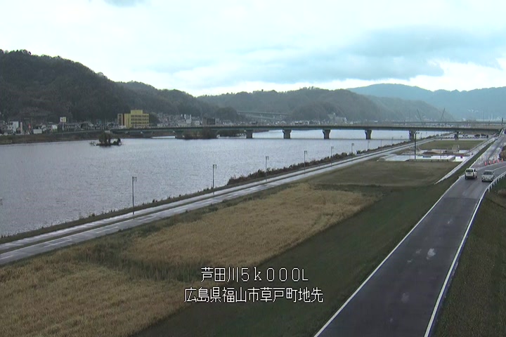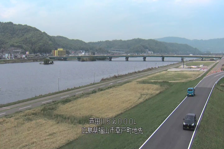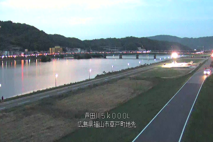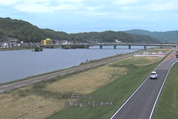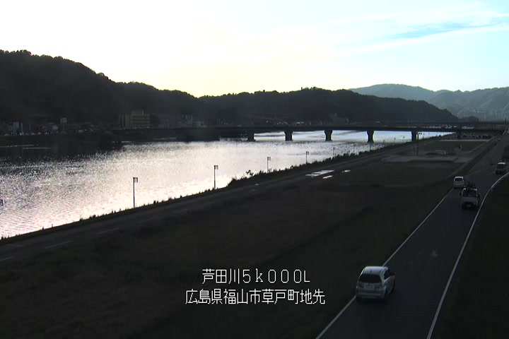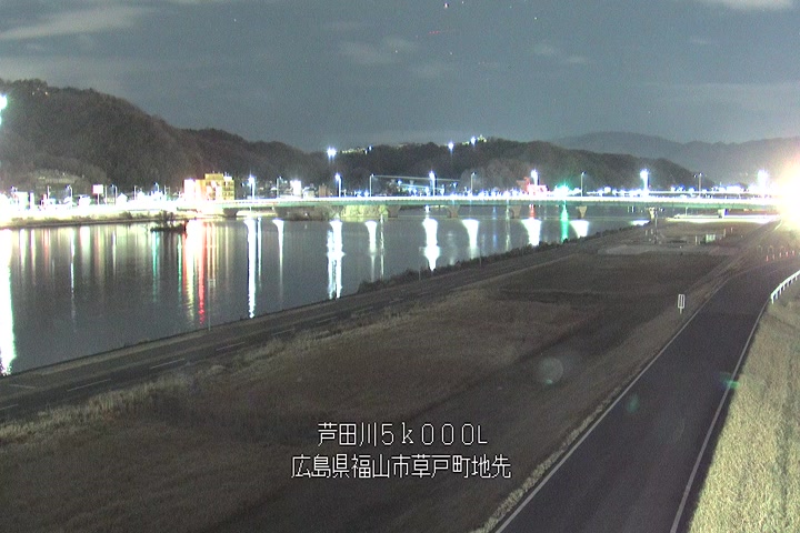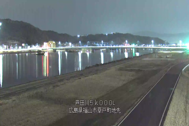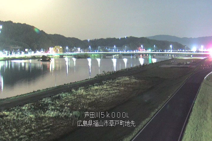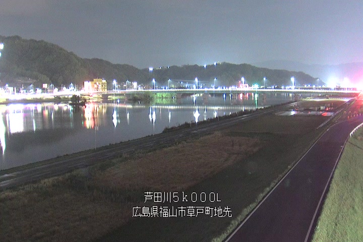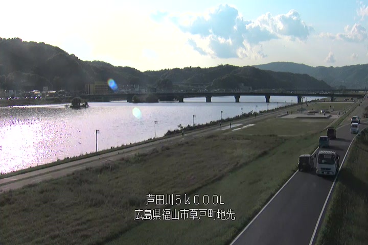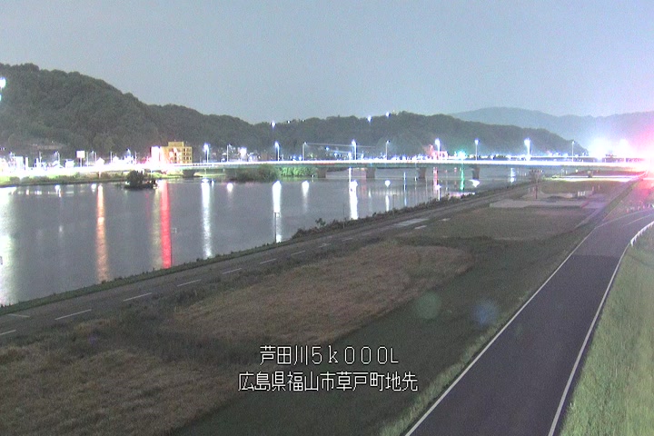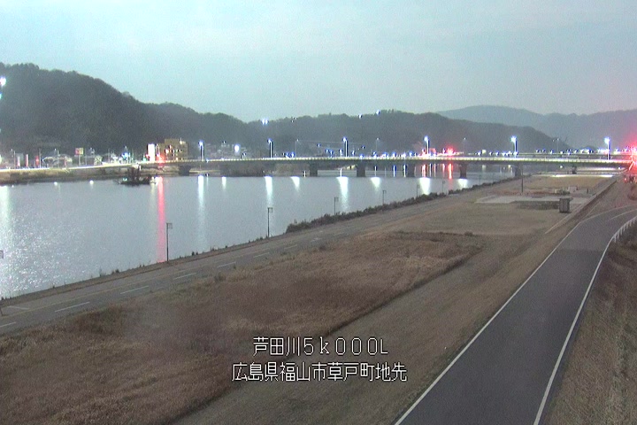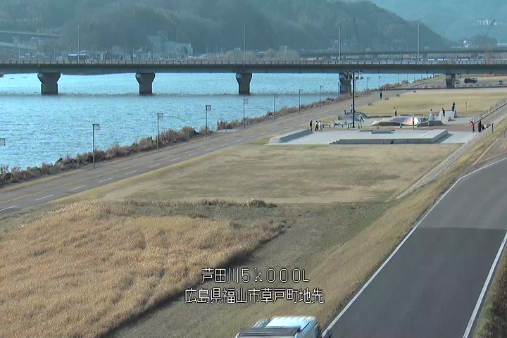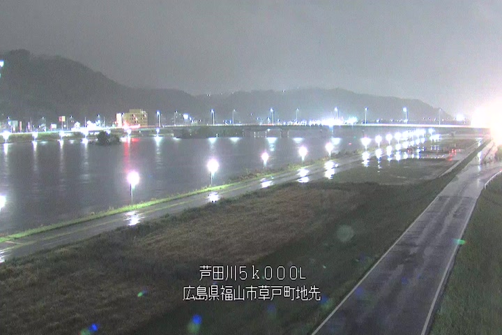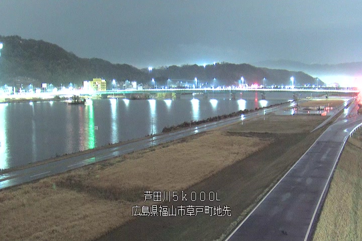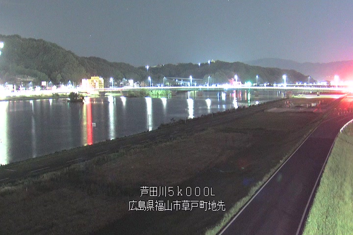 福山市草戸(下流部)の過去6日分(6時間毎)の河川映像を提供しています。