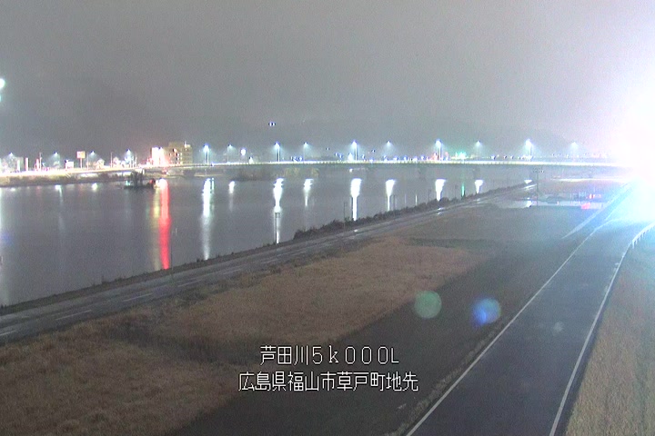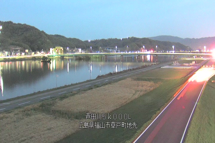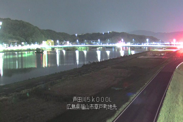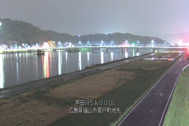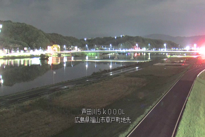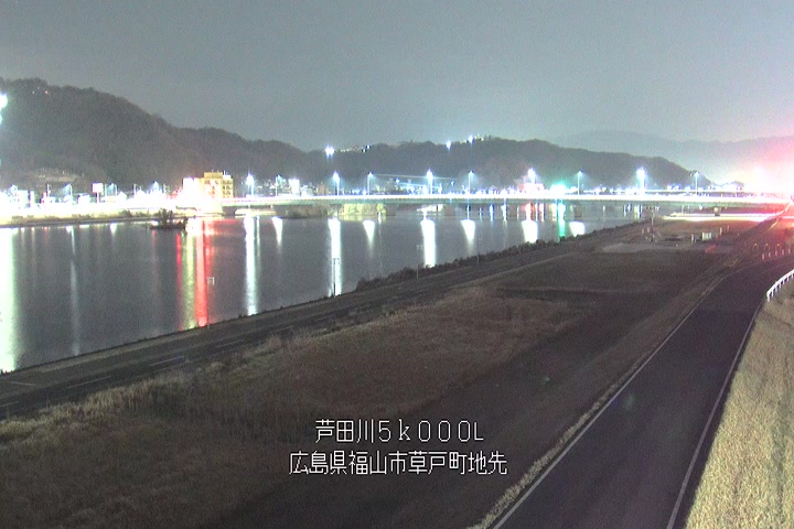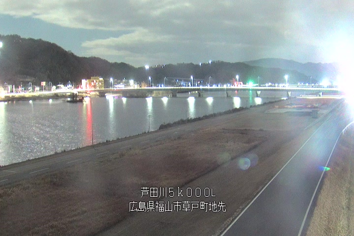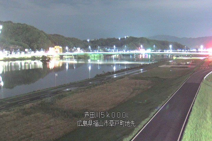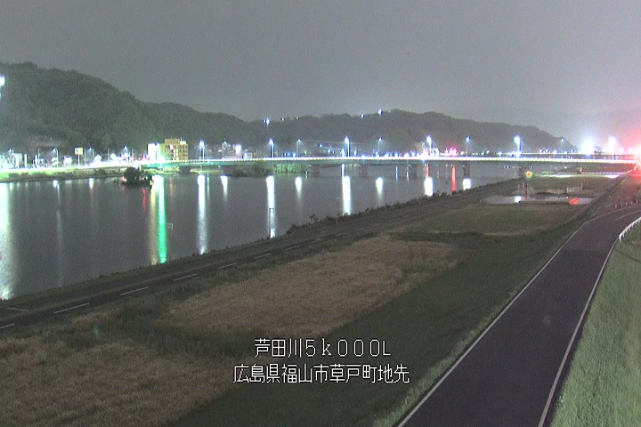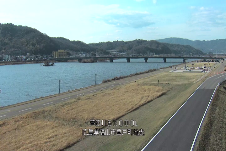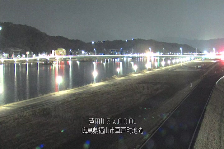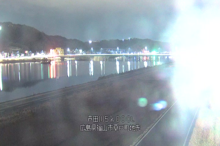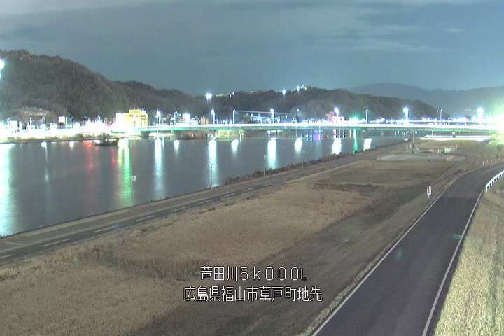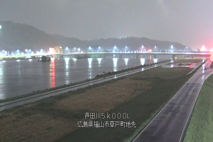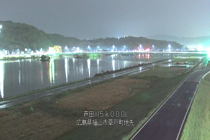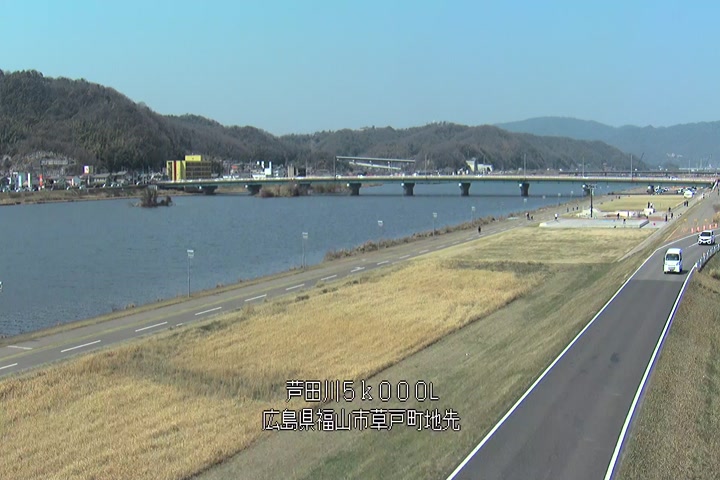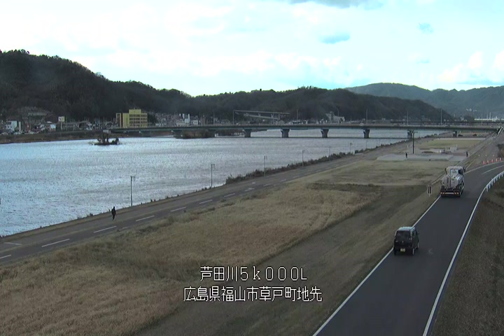 福山市草戸(下流部)の過去6日分(6時間毎)の河川映像を提供しています。