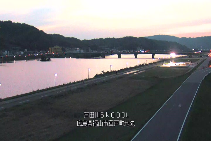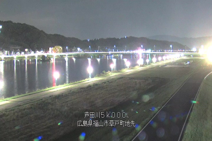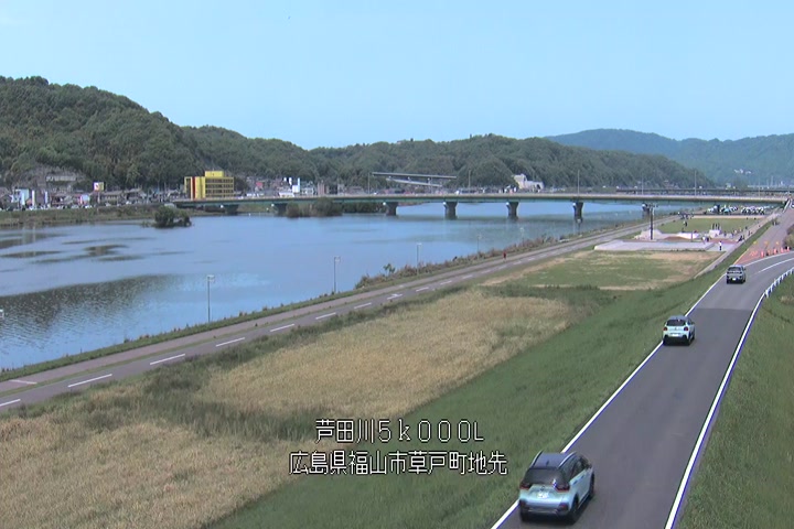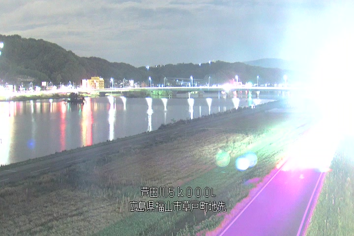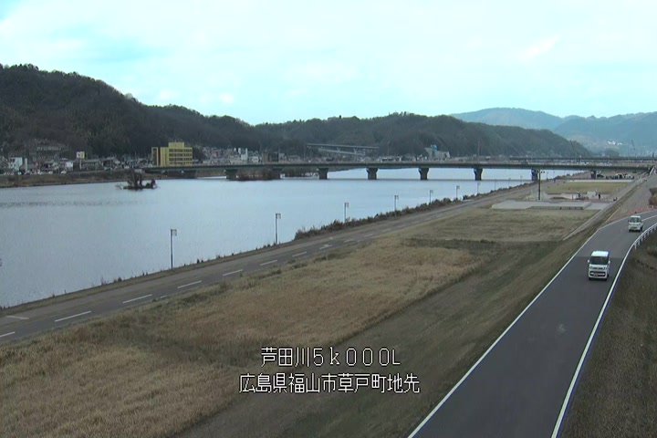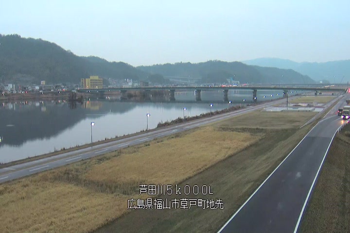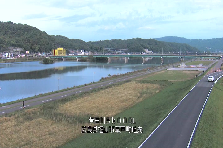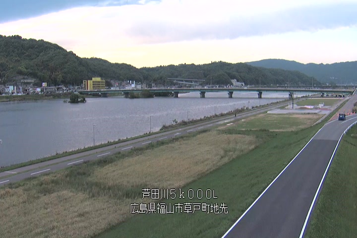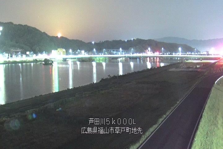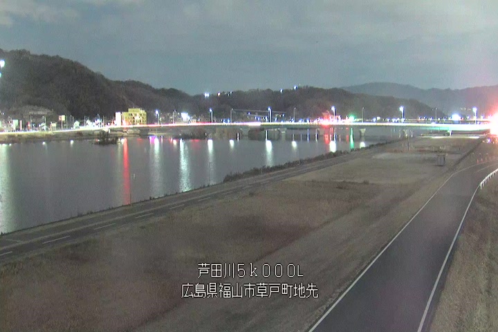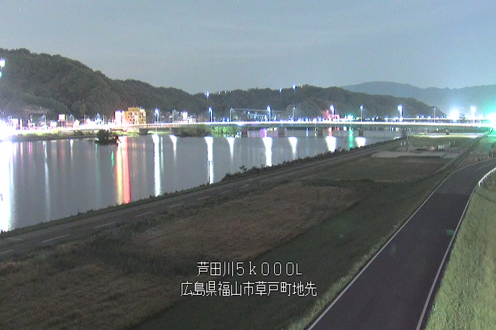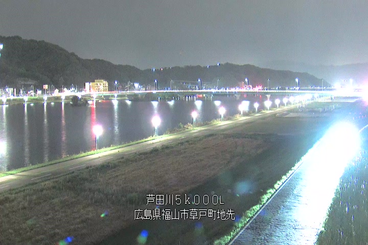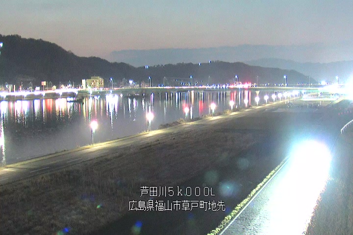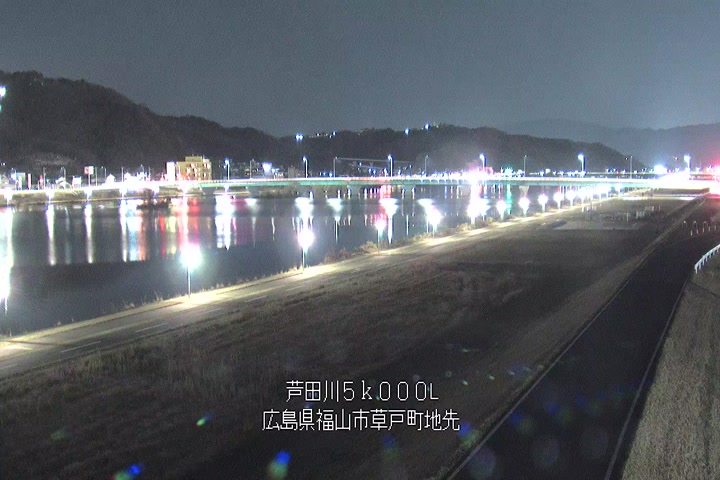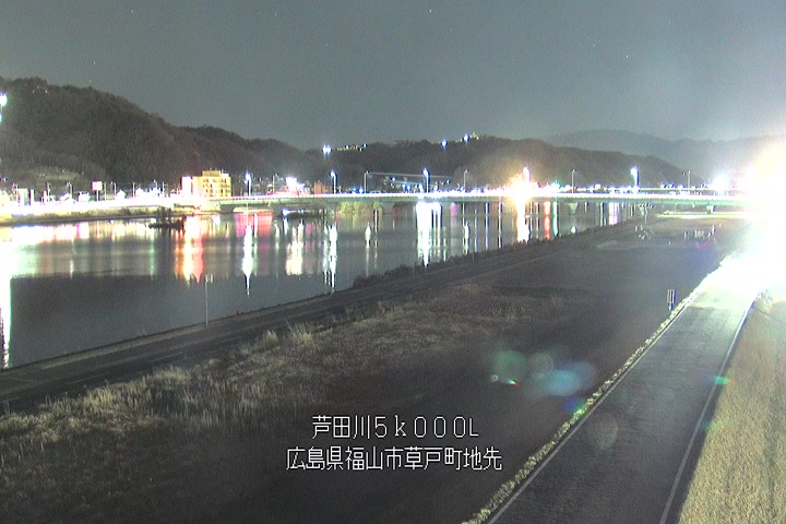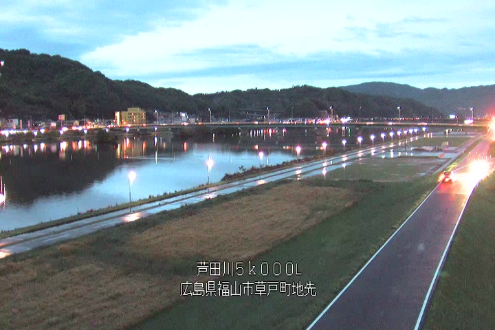 福山市草戸(下流部)の過去6日分(6時間毎)の河川映像を提供しています。