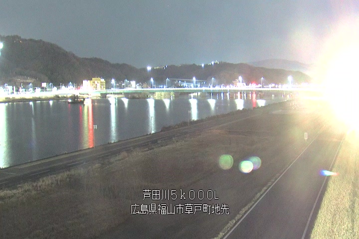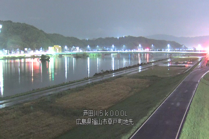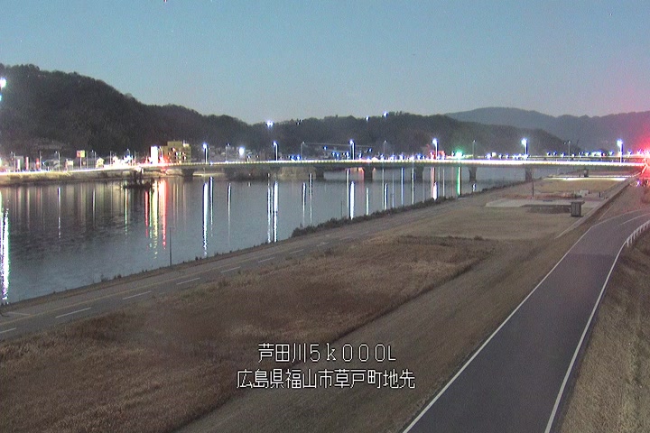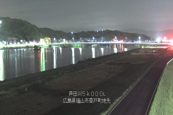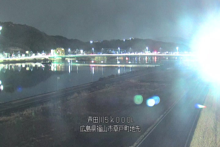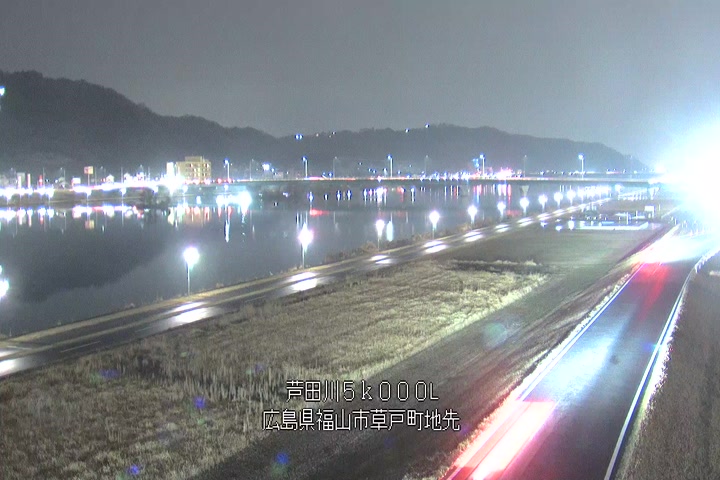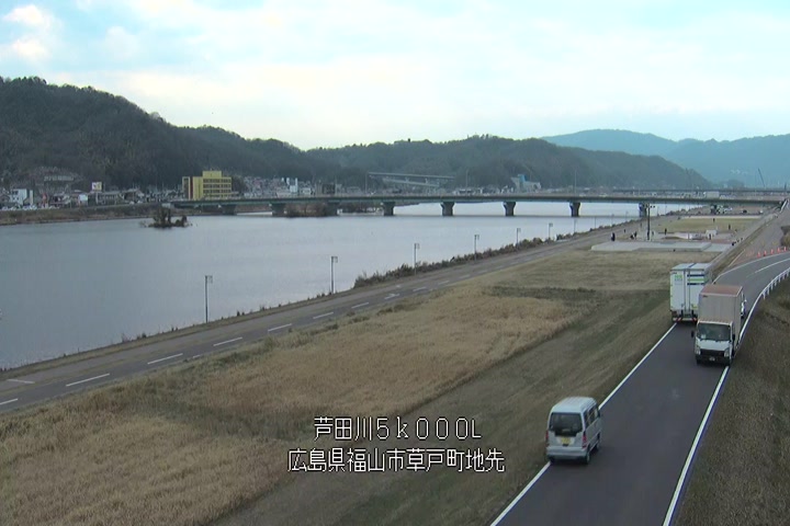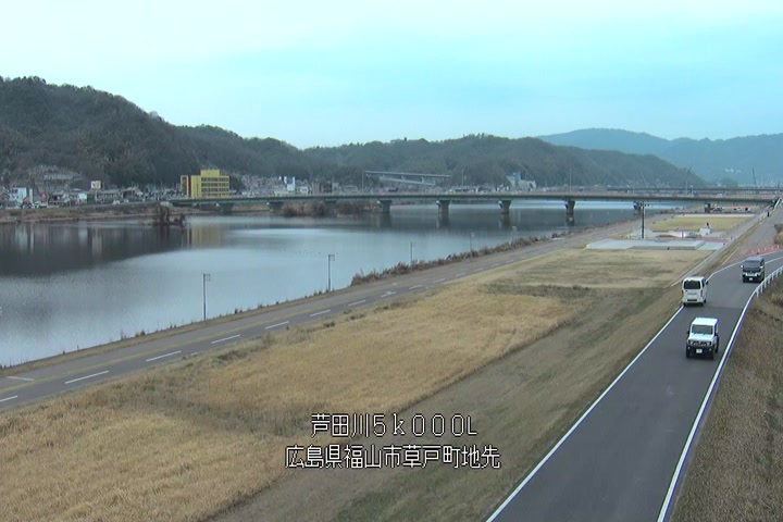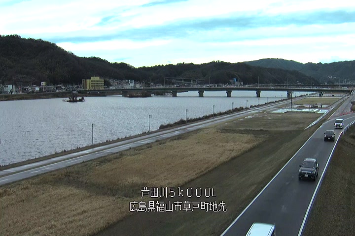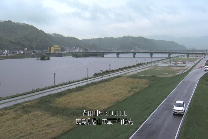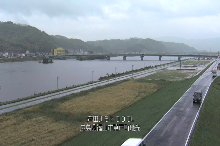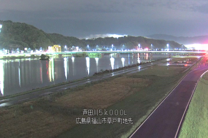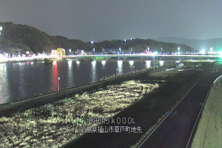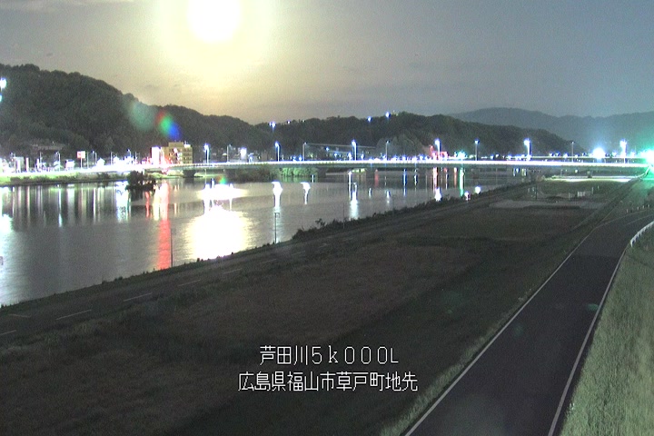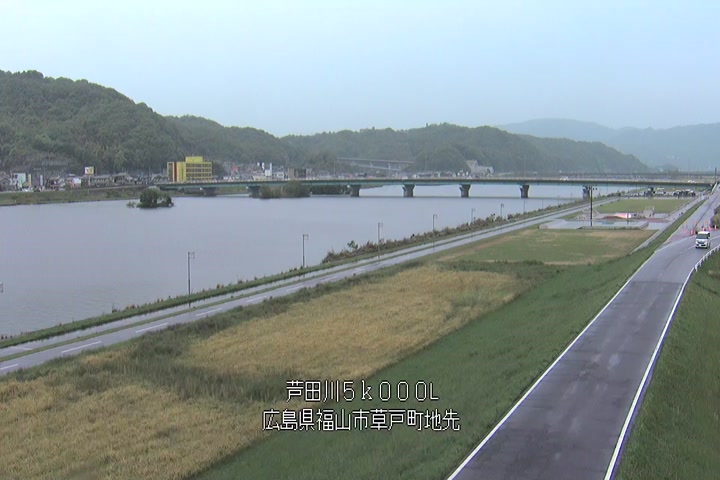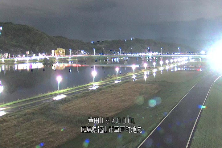 福山市草戸(下流部)の過去6日分(6時間毎)の河川映像を提供しています。
