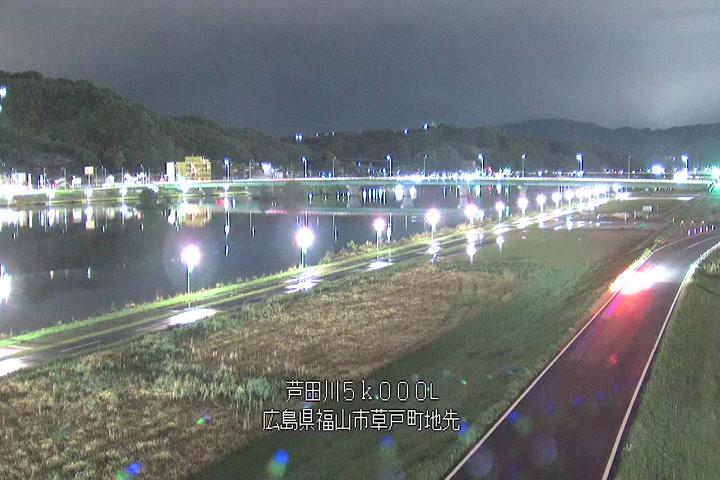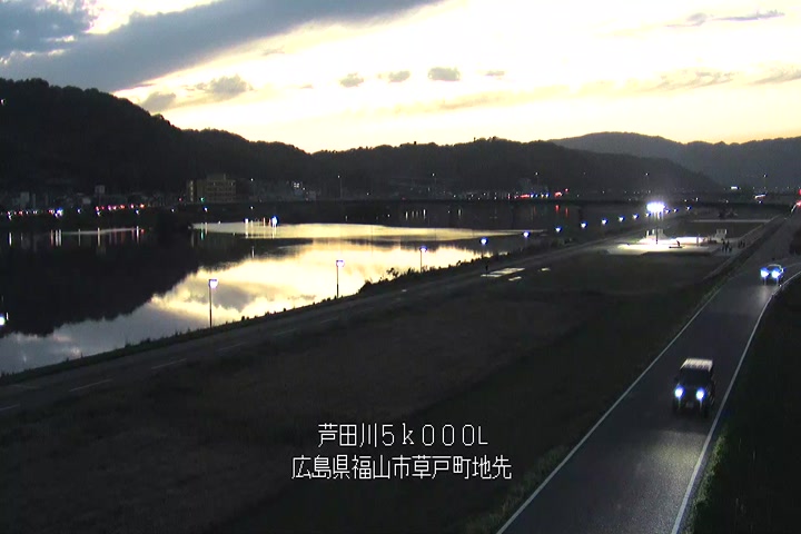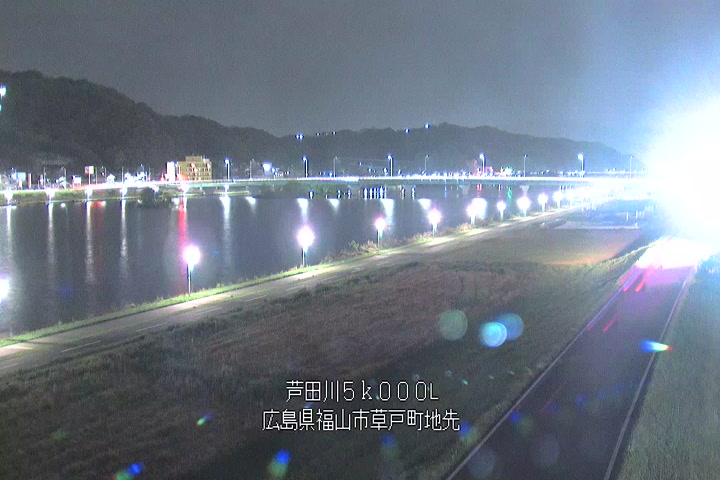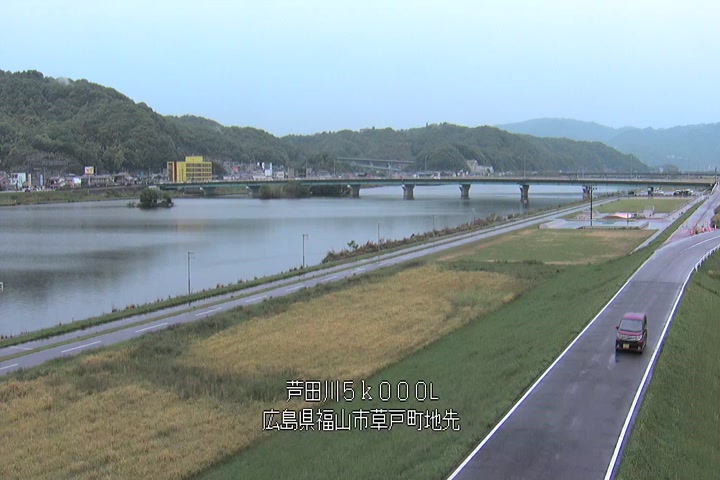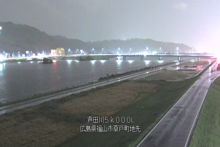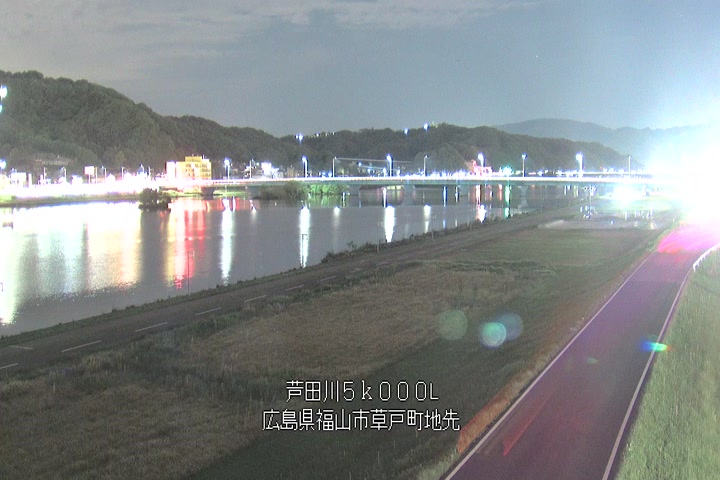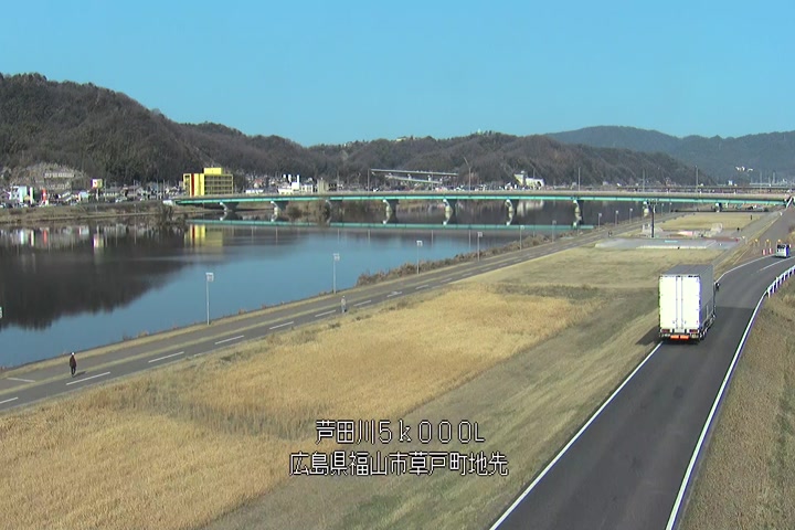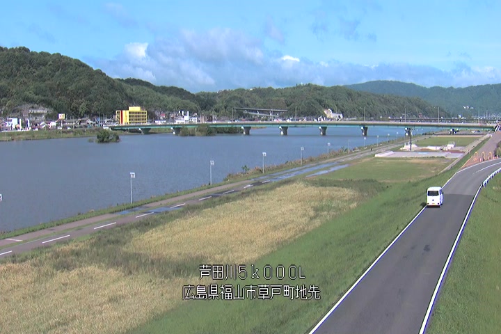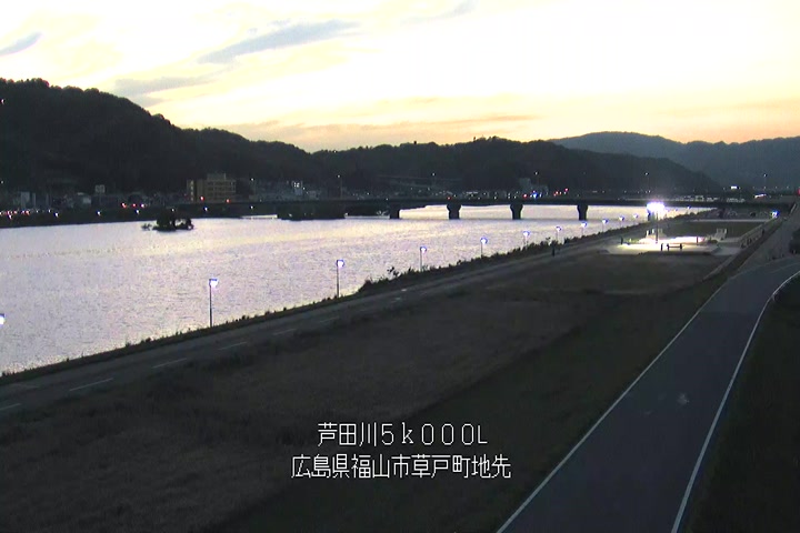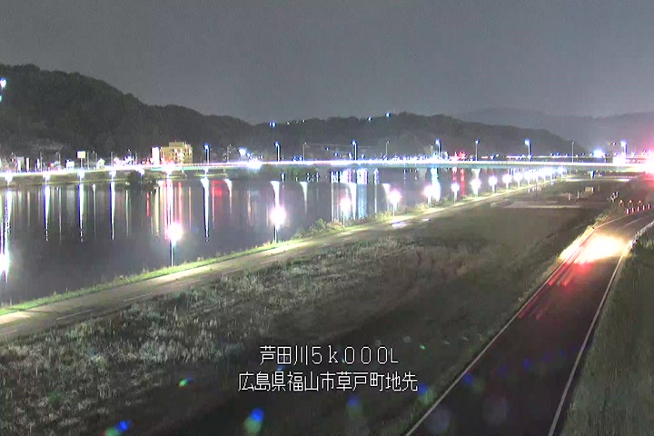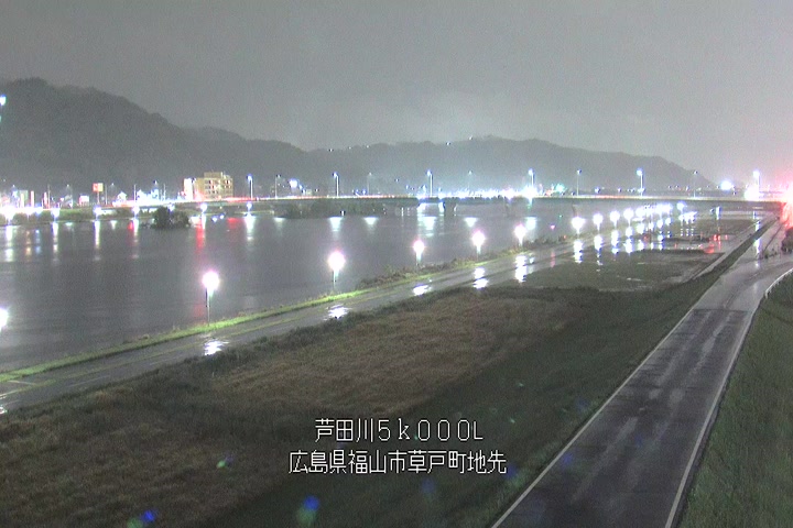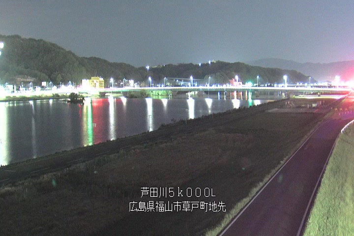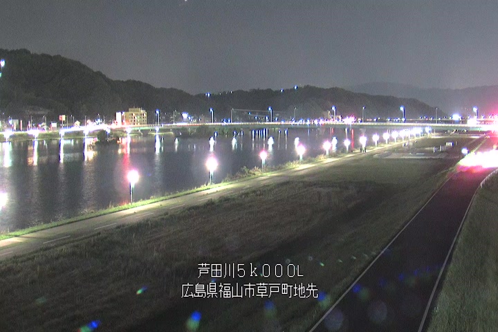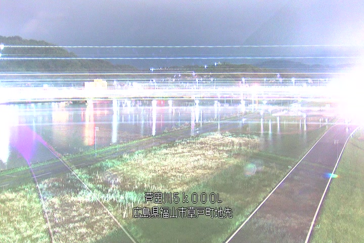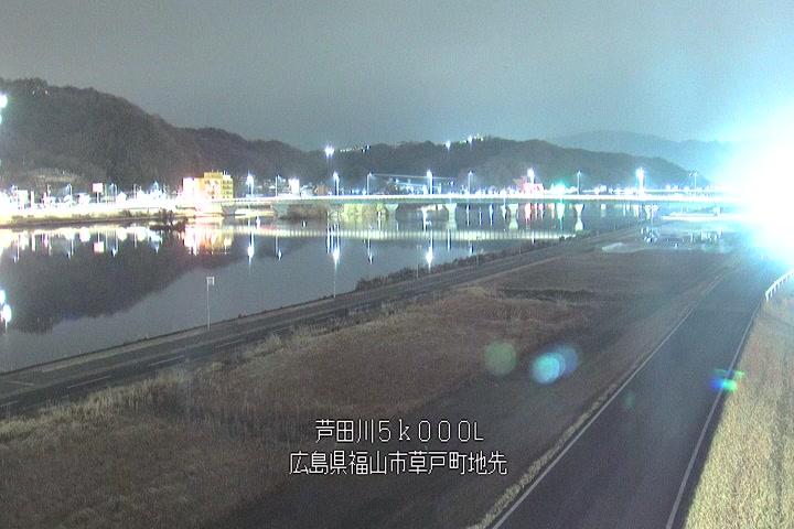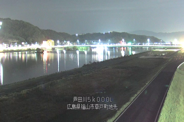 福山市草戸(下流部)の過去6日分(6時間毎)の河川映像を提供しています。