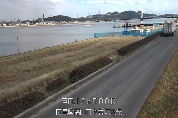福山市水呑の過去6日分(6時間毎)の河川映像を提供しています。