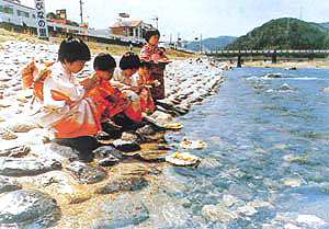 | 用瀬町には、平安時代から伝えられている流しびなの風習がある。 |