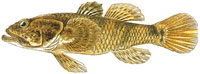 日本海側では新潟県以南の各地に分布し、日本だけに住んでいる魚です。全長が25p程度になり、頭が大きく、下あごは上あごよりも前に出ています。川の中流域の淵を中心に生息しています。昼間は岩陰、石垣内、倒木の陰、テトラポットの下などに隠れ、夜は外に出て活動します。魚類や甲殻類を大きな口で捕まえて食べます。