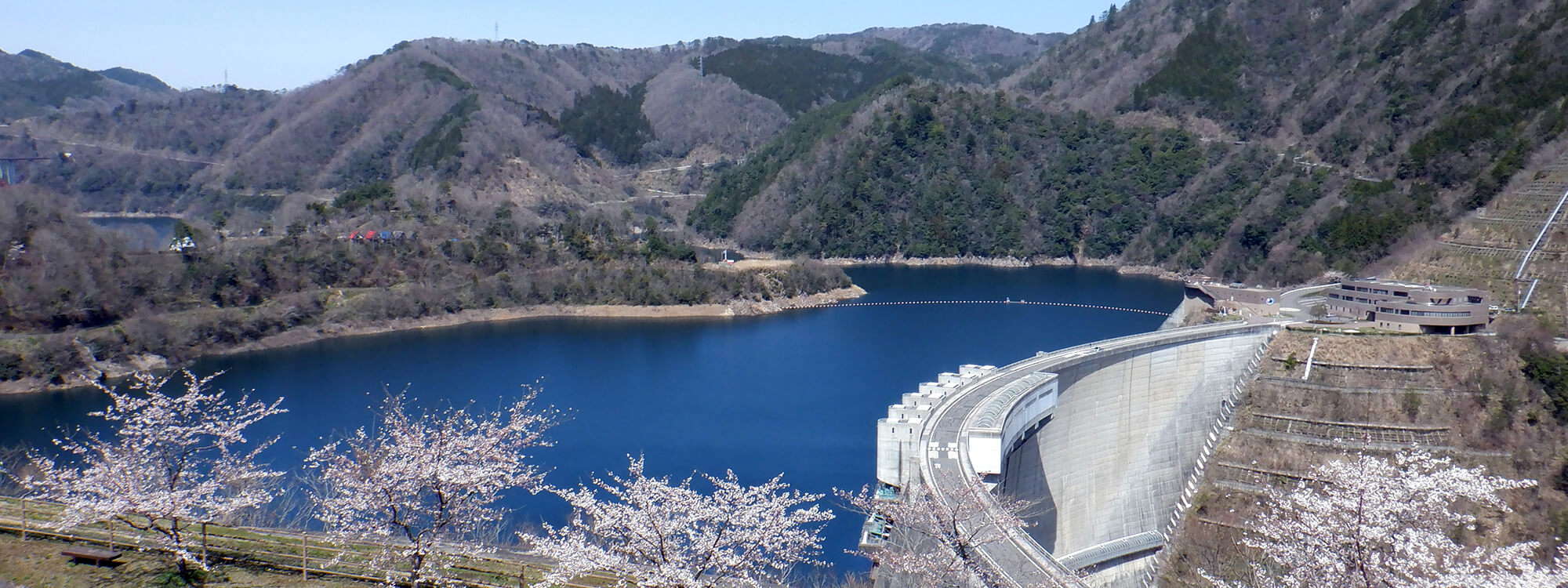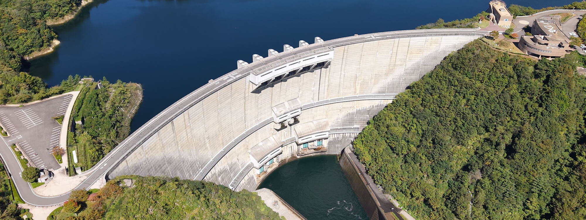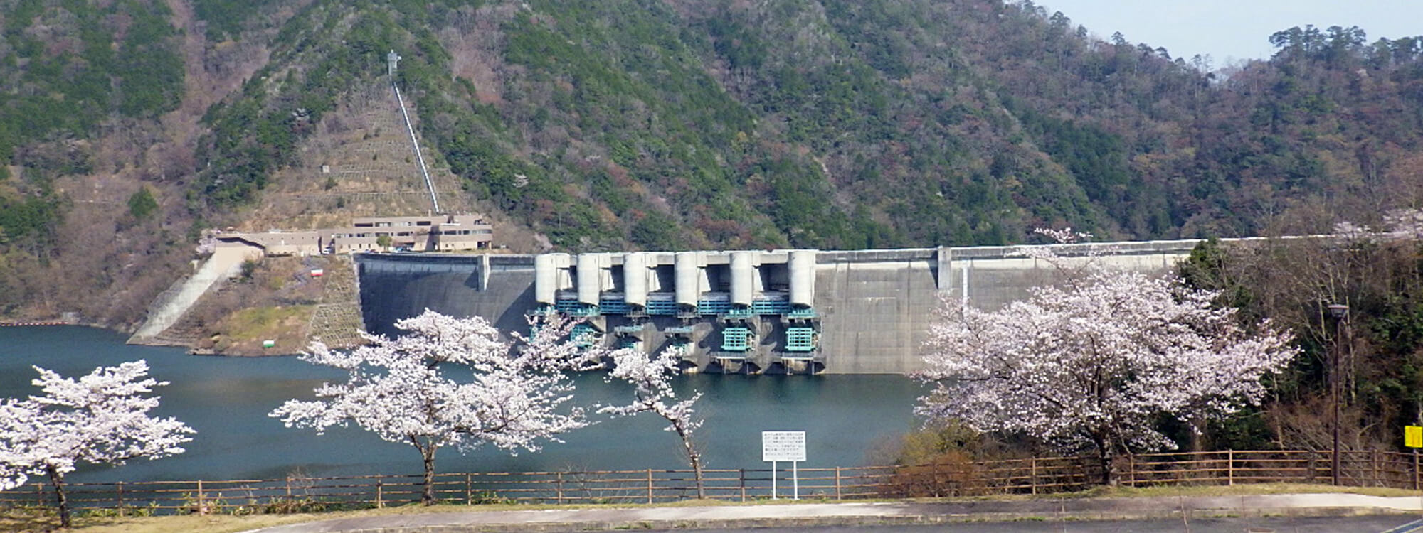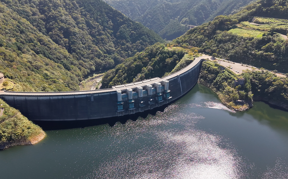 温井ダムは、広島県西部を貫流する太田川の支流・滝山川の中流部に建設されたアーチ式ダムです。太田川水系初の多目的ダムとして建設され、洪水調節、水道用水の供給、 水力発電、環境保全など多目的に利用されています。また、アーチ式ダムとしては黒部ダムに次ぎ、全国で2番目となる高さ156メートルを誇り、自然豊かな環境とその圧倒的な構造美で 「ダム湖百選」にも選ばれました。