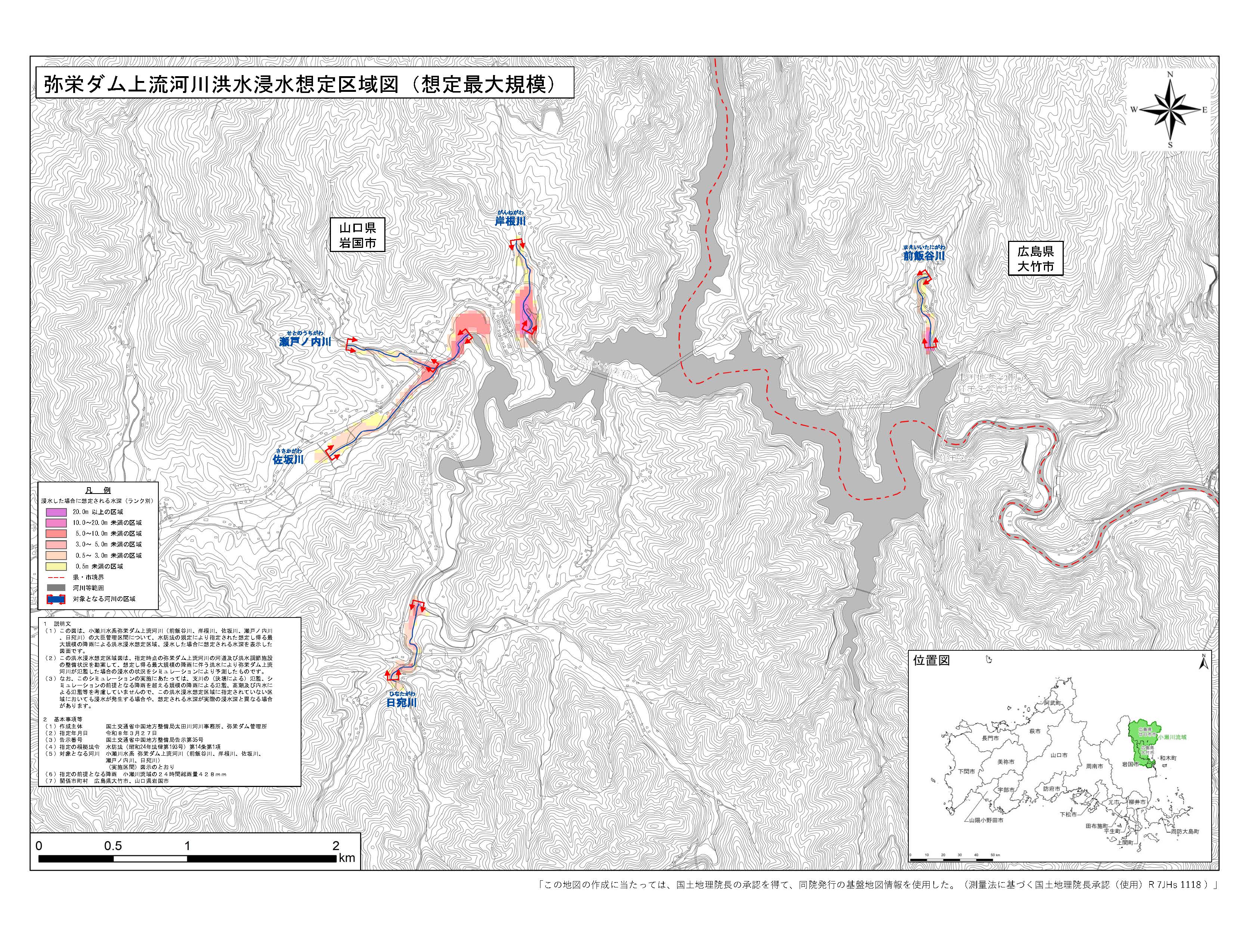 | (1) この図は、小瀬川水系弥栄ダム上流河川(前飯谷川、岸根川、佐坂川、瀬戸ノ内川、 日宛川) |
