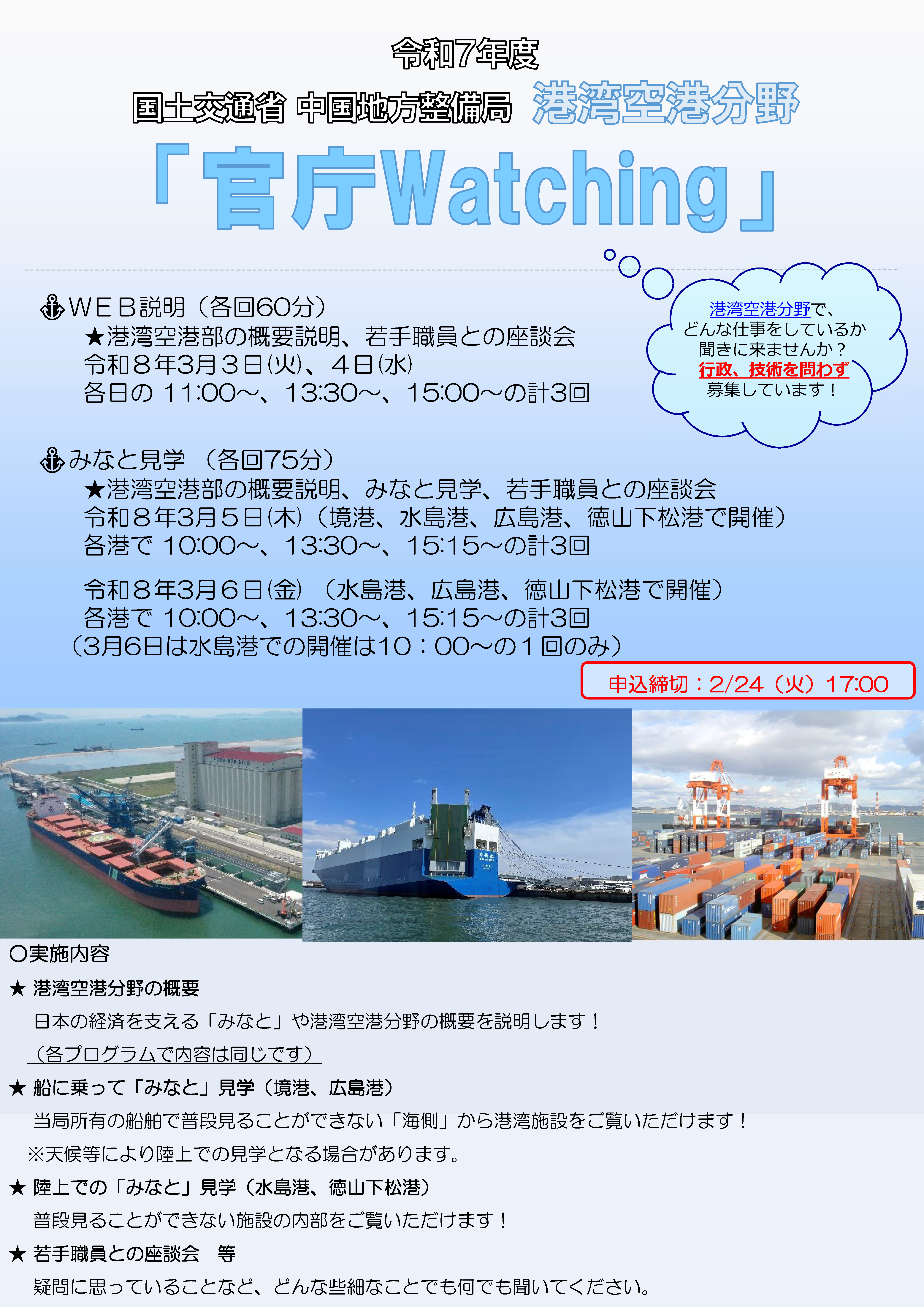 【港湾空港】令和7年度中国地区『官庁Watching』事前予約のご案内