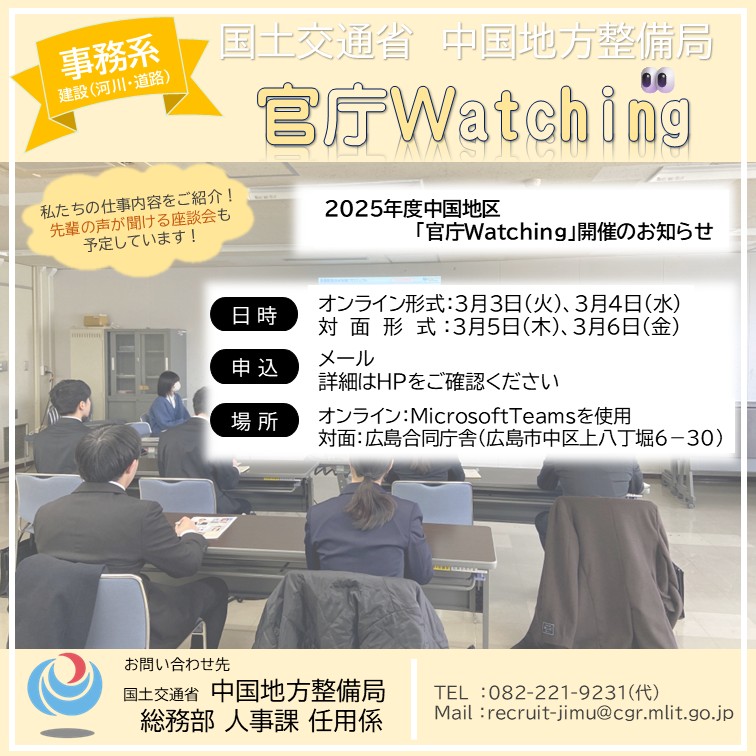 【建設・事務系】2025年度中国地区官庁Watching事前予約のご案内について
