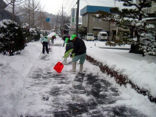 平成18年12月、『ボランティアロードなかいち』の第1回目の活動が行われました。活動場所は国道29号若桜町地内の歩道内で、除雪作業を行いました。
