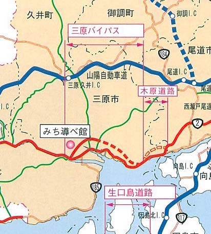 | 一般国道2号は山陽地方の各地域を結ぶ広域的な幹線道路であるとともに、三原市内の都市形成の基軸として地域社会・経済・市民生活の発展に重要な役割を果たしてきましたが、近年の交通需要の増大に伴い、三原市内の一般国道2号は朝夕のラッシュ時において慢性的な交通渋滞が発生しています。 この様な状況を解消するために、三原バイパスは滞留している交通を適切に分散誘導処理し、交通渋滞の解消、良好な都市環境の形成を図るとともに周辺各都市との連結を強化し、均衡のとれた地域の発展に寄与するものです。 |