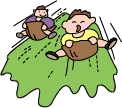 草のしゃめんでソリ遊び。